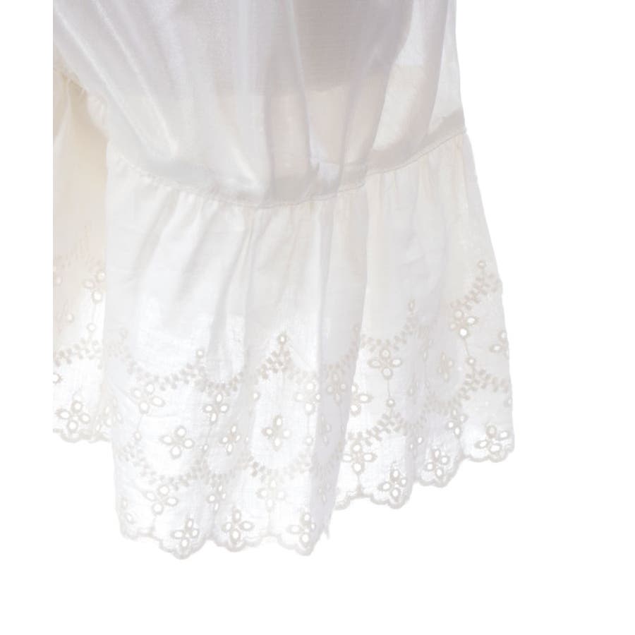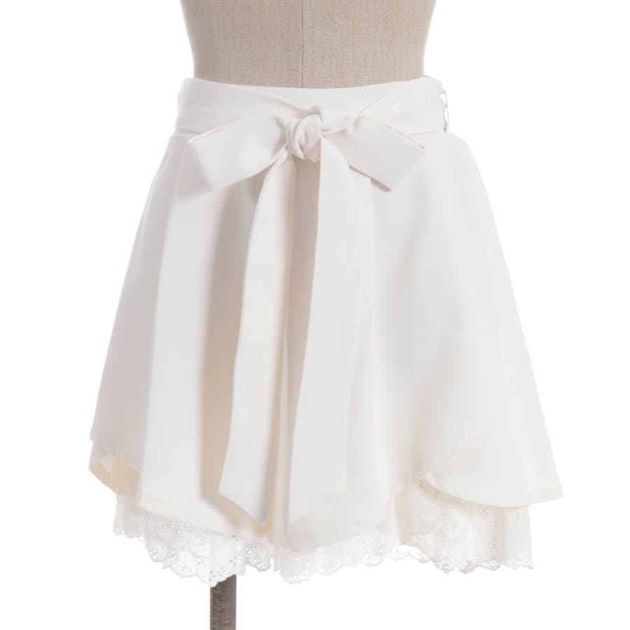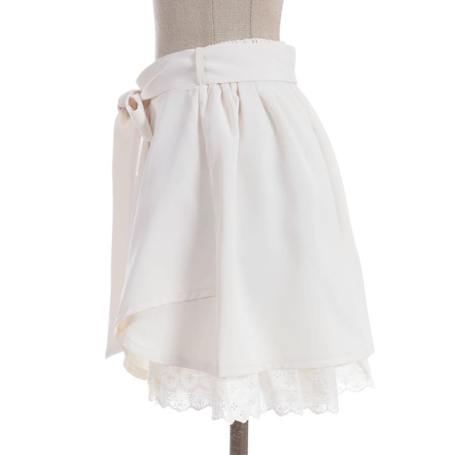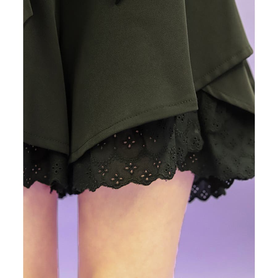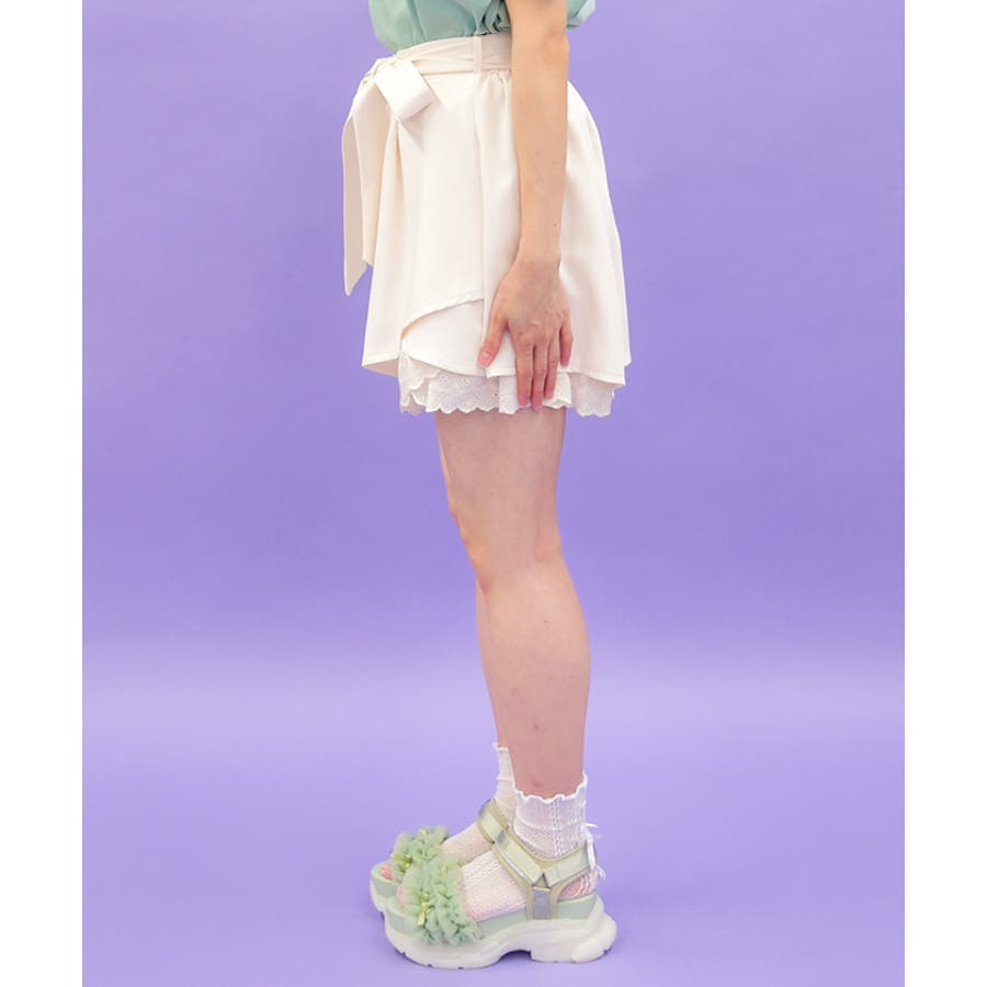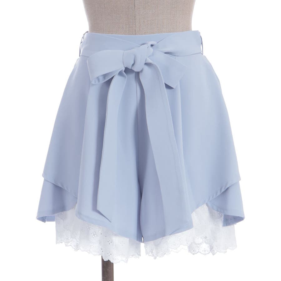 裾にアイレットレースをあしらったキュロットパンツです。