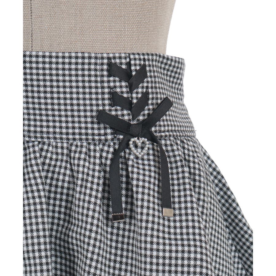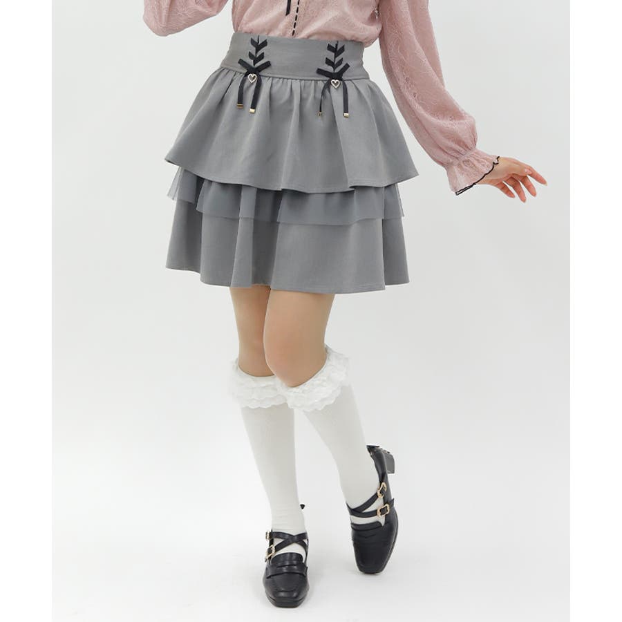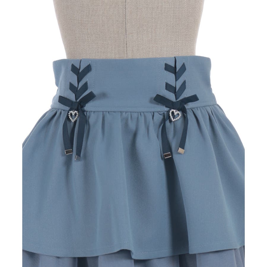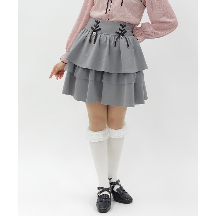 レースアップ+ハートのモチーフをあしらった、ウエストデザインがガーリーな印象をプラスします。