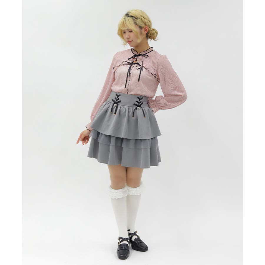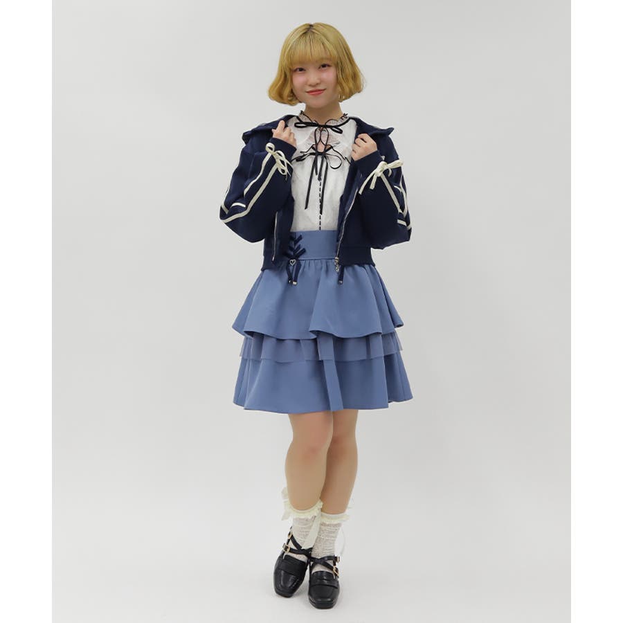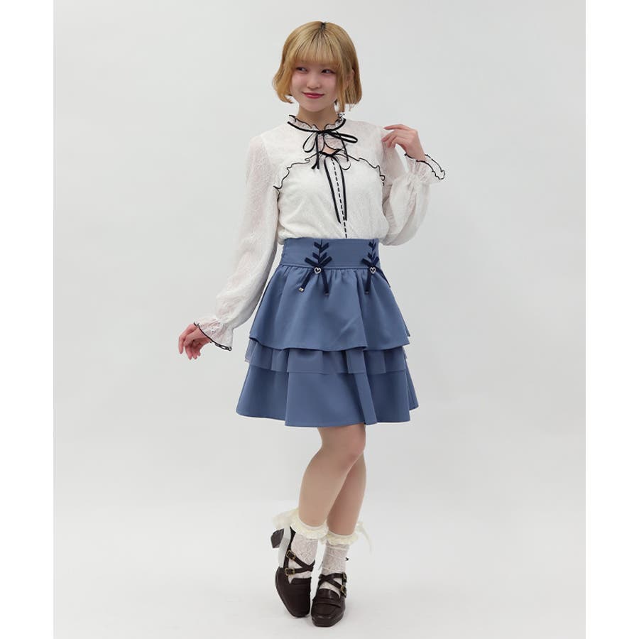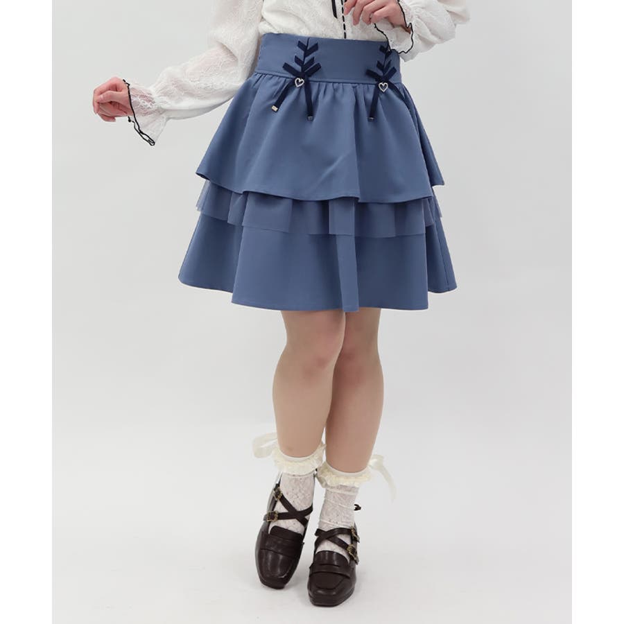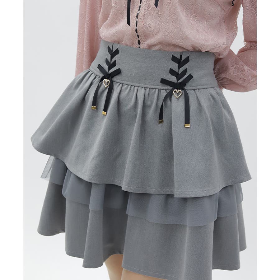 レースアップ+ハートのモチーフをあしらった、ウエストデザインがガーリーな印象をプラスします。