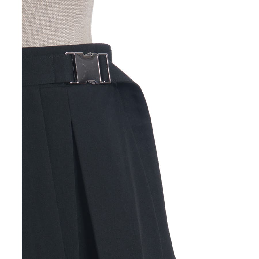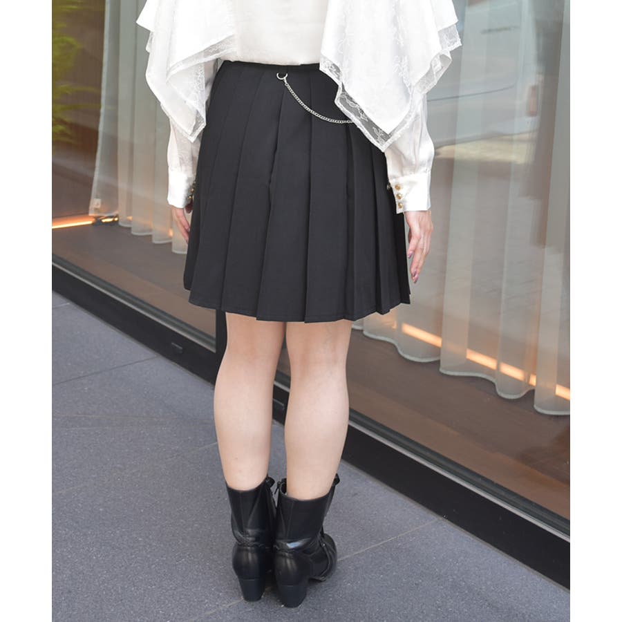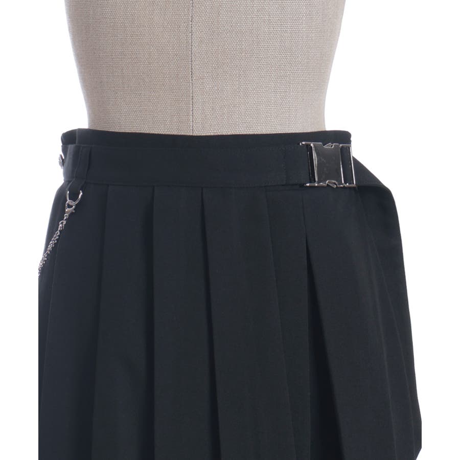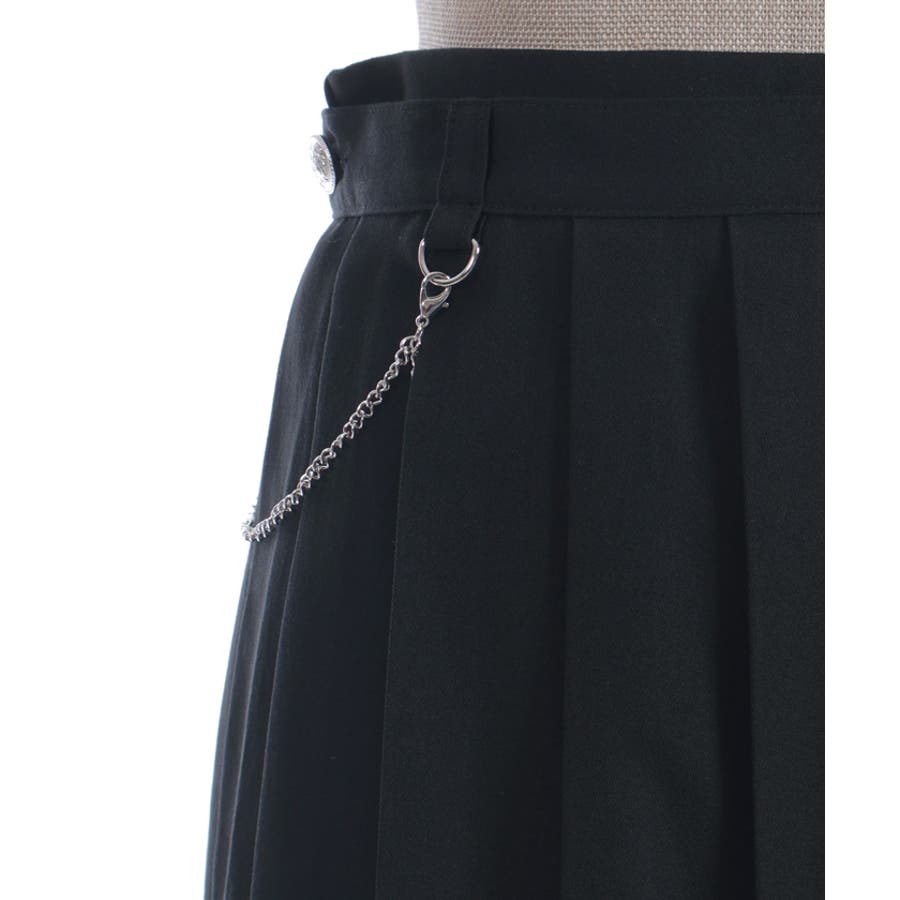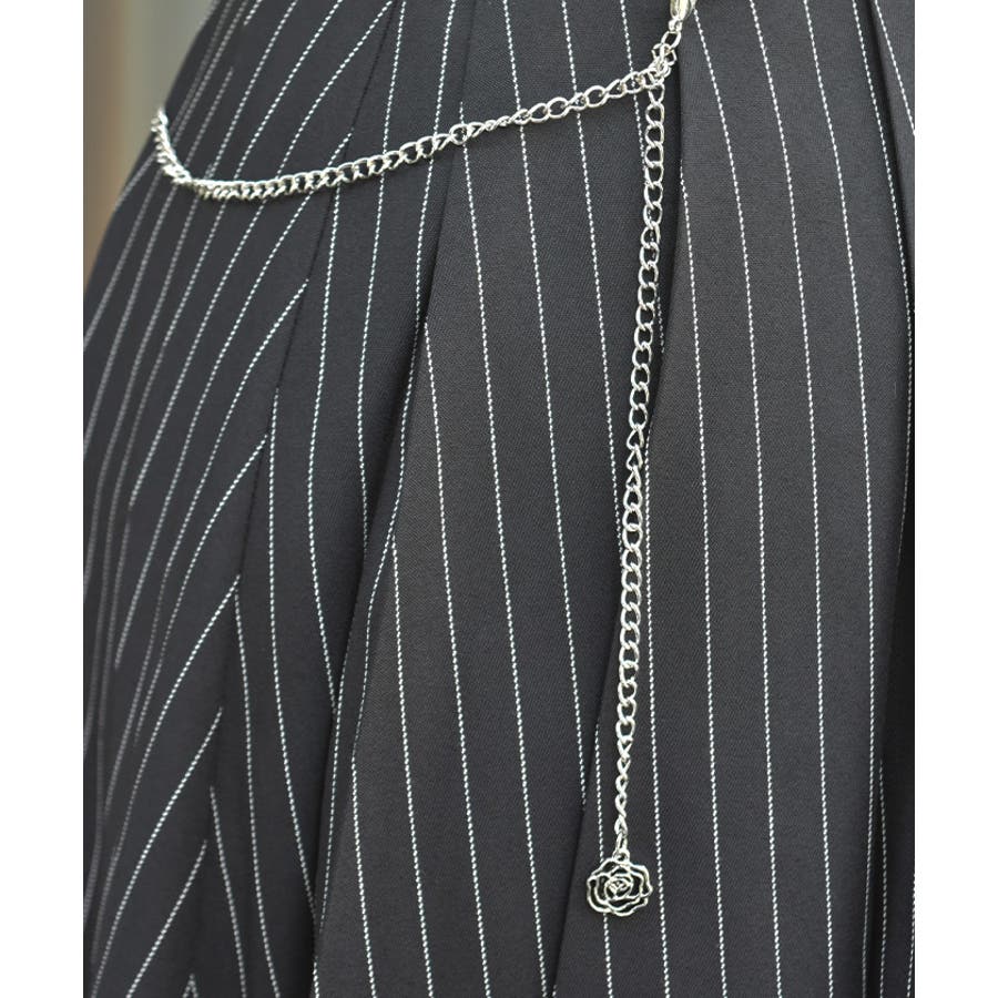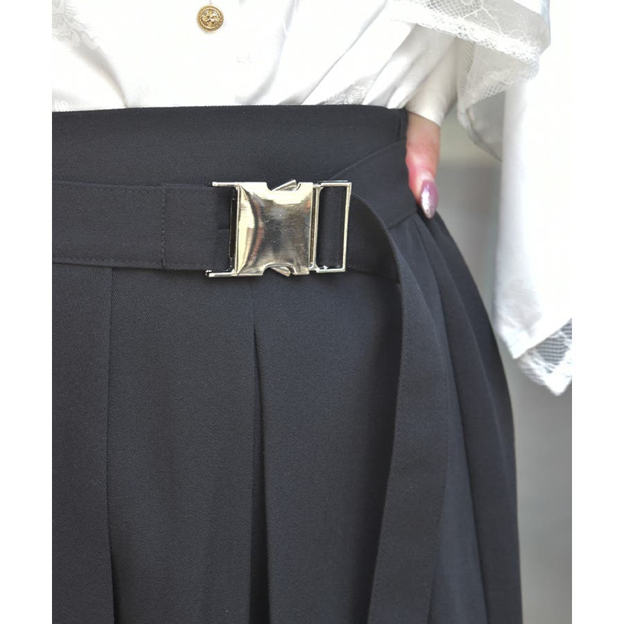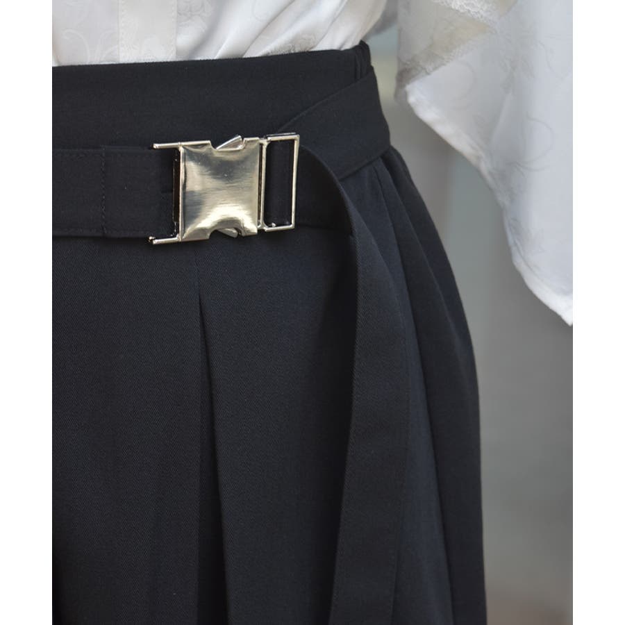 立体感のあるプリーツラインに、取り外し可能なチェーンをプラス。ベルト部分のバックルがアクセントになり、エッジの効いた雰囲気を演出してくれます。程よいボリューム感のあるシルエットが脚のラインをすっきり見せてくれるのも嬉しいポイント。