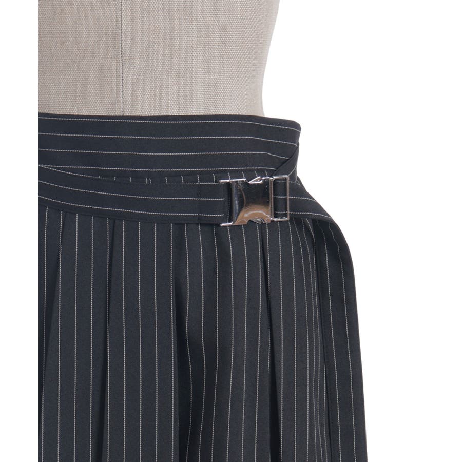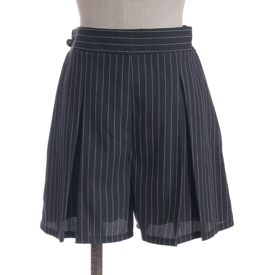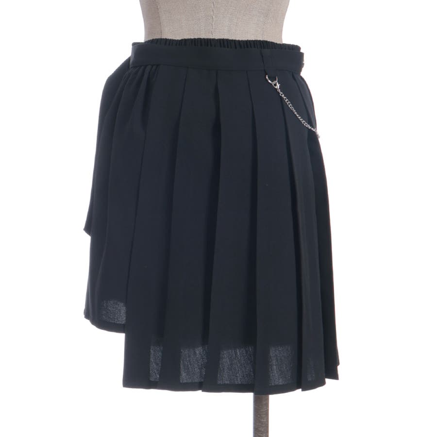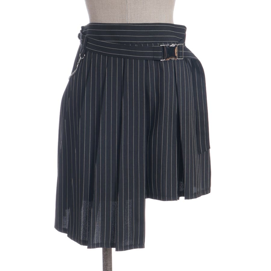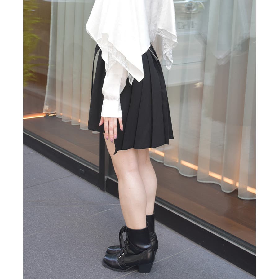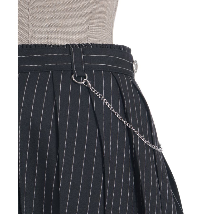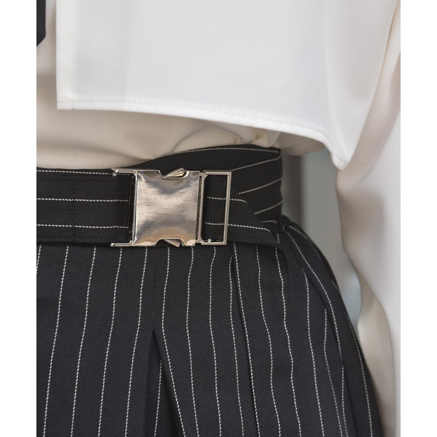 立体感のあるプリーツラインに、取り外し可能なチェーンをプラス。ベルト部分のバックルがアクセントになり、エッジの効いた雰囲気を演出してくれます。程よいボリューム感のあるシルエットが脚のラインをすっきり見せてくれるのも嬉しいポイント。