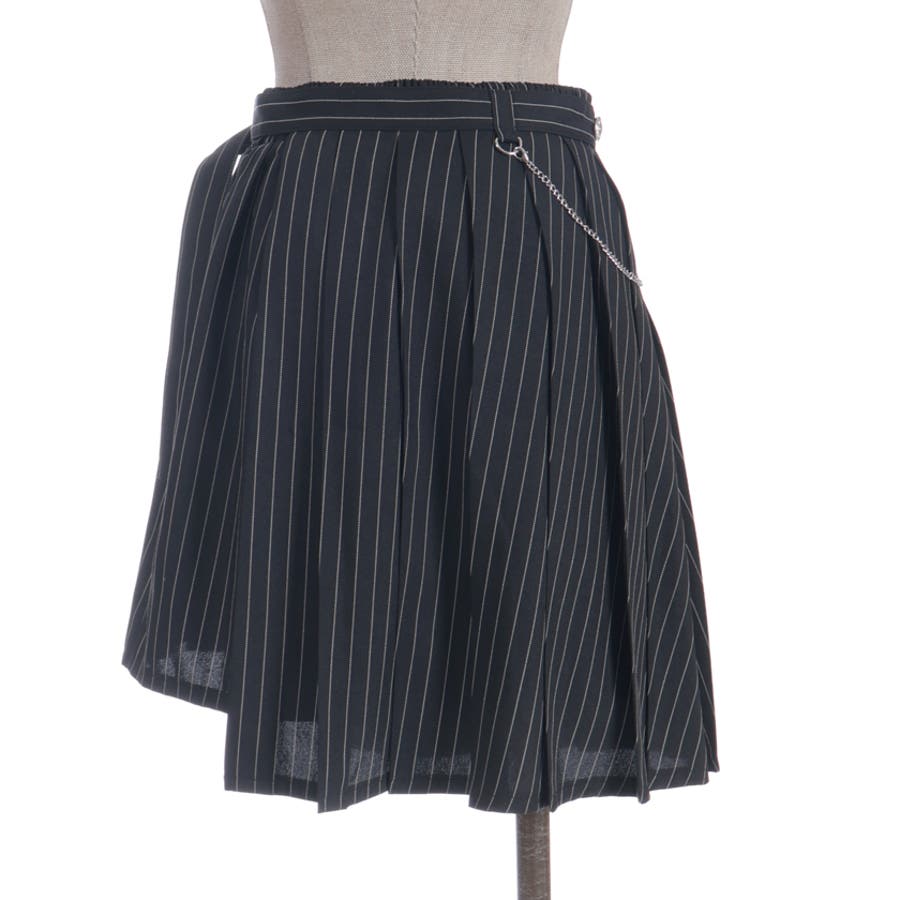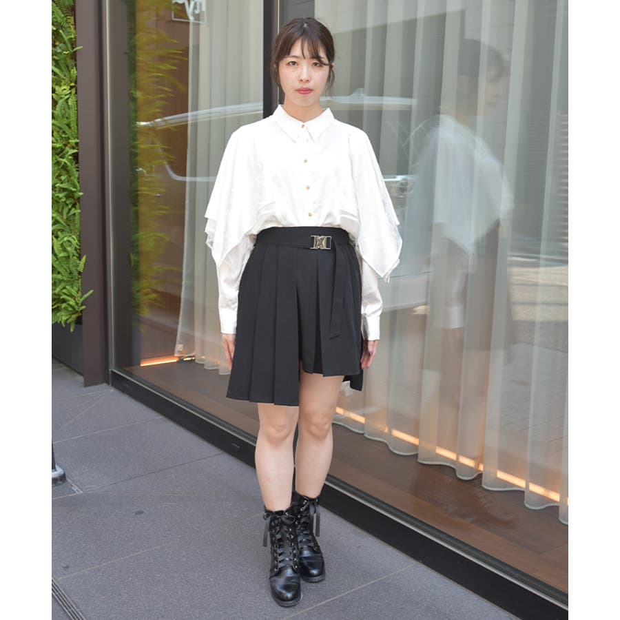 存在感のあるプリーツと、メタルバックル&チェーンディテールが印象的なアイテム。個性的でモード感のあるルックスがコーディネートの主役になる一枚です。