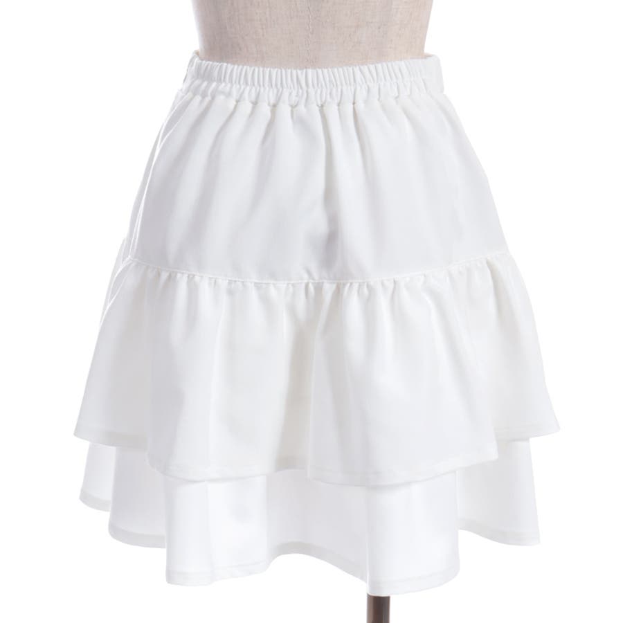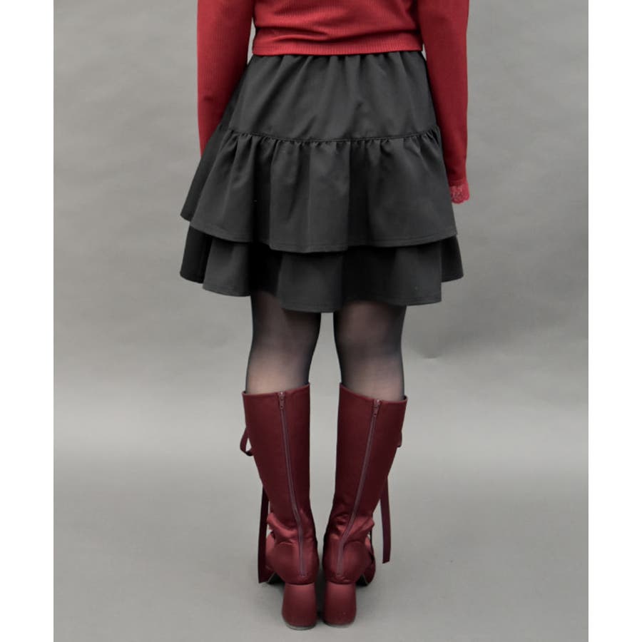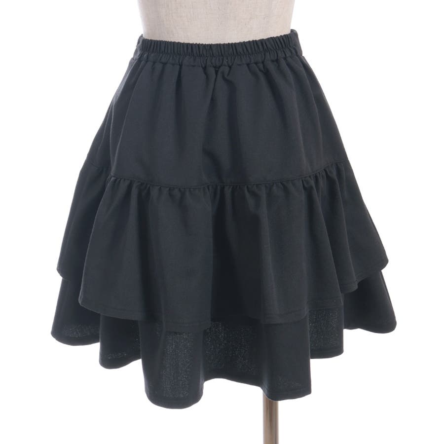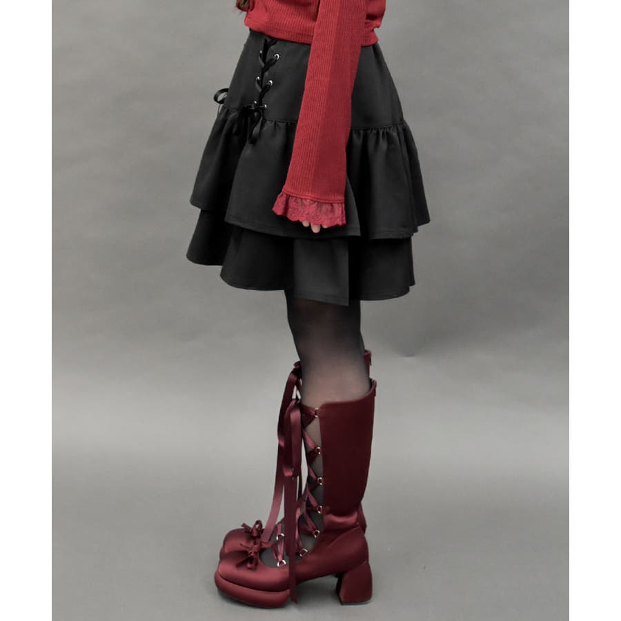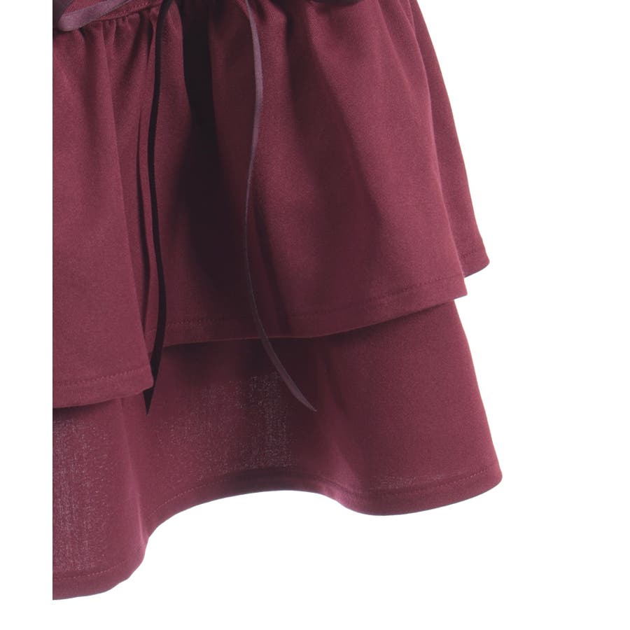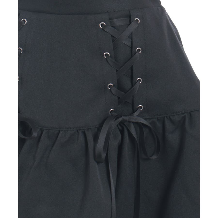 両サイドにレースアップのデザインがついており、2段フリルでボリューミーに広がるシルエットが可愛い1枚です。