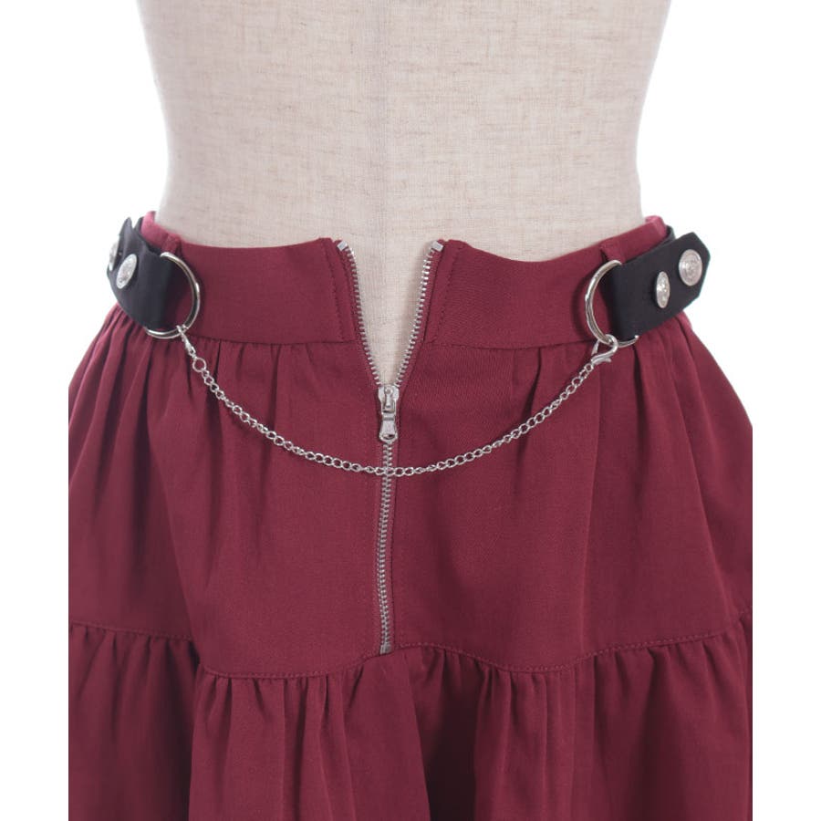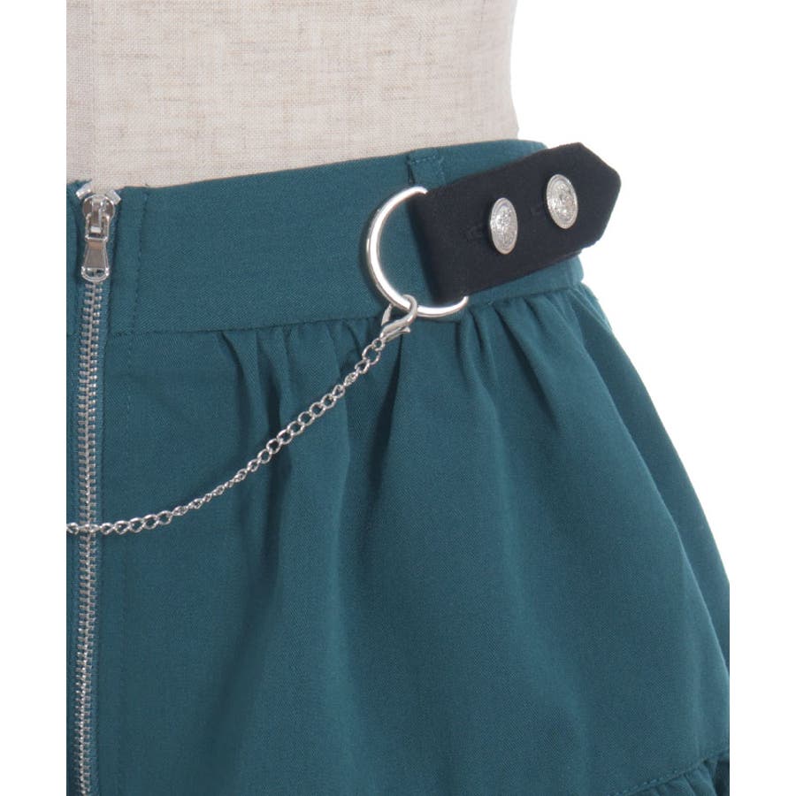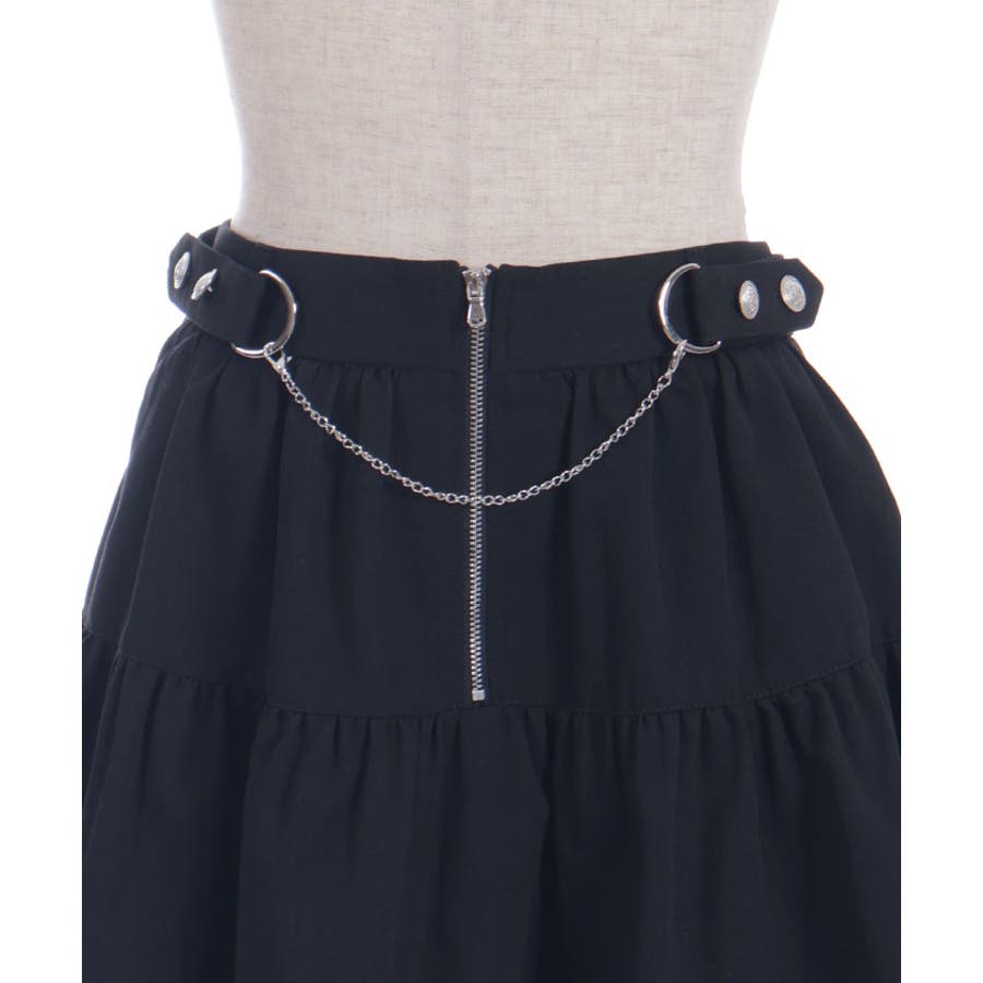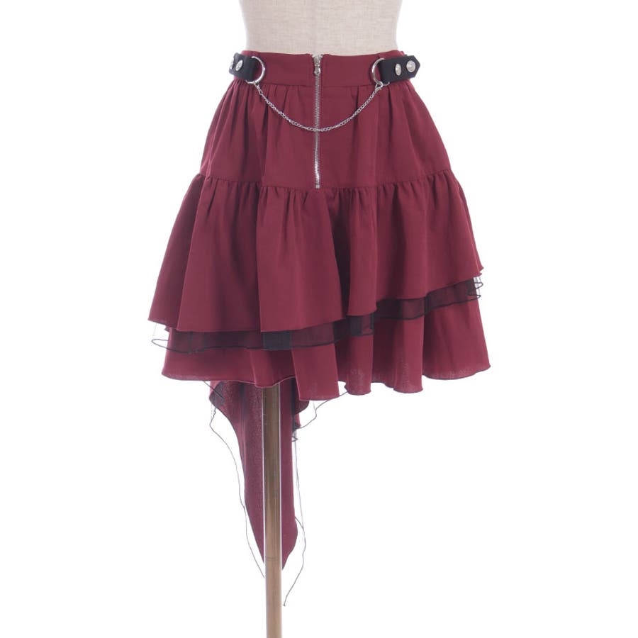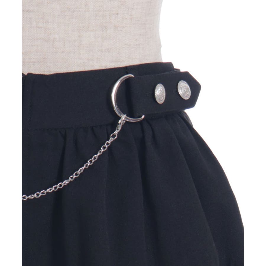 アシンメトリーデザインとウエストにあしらったチェーンで辛口に仕上げました。