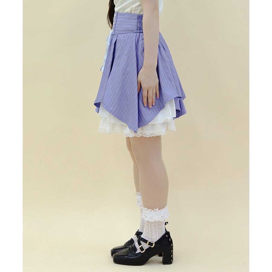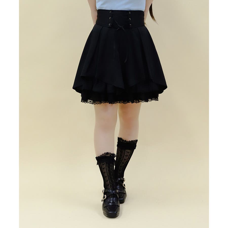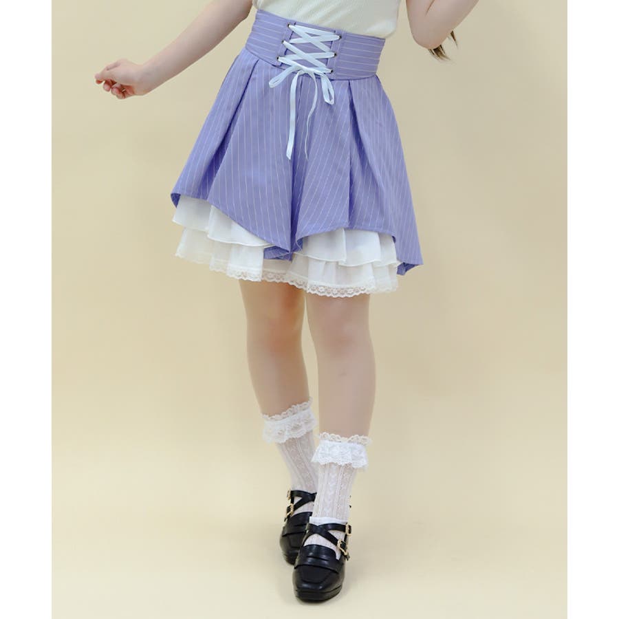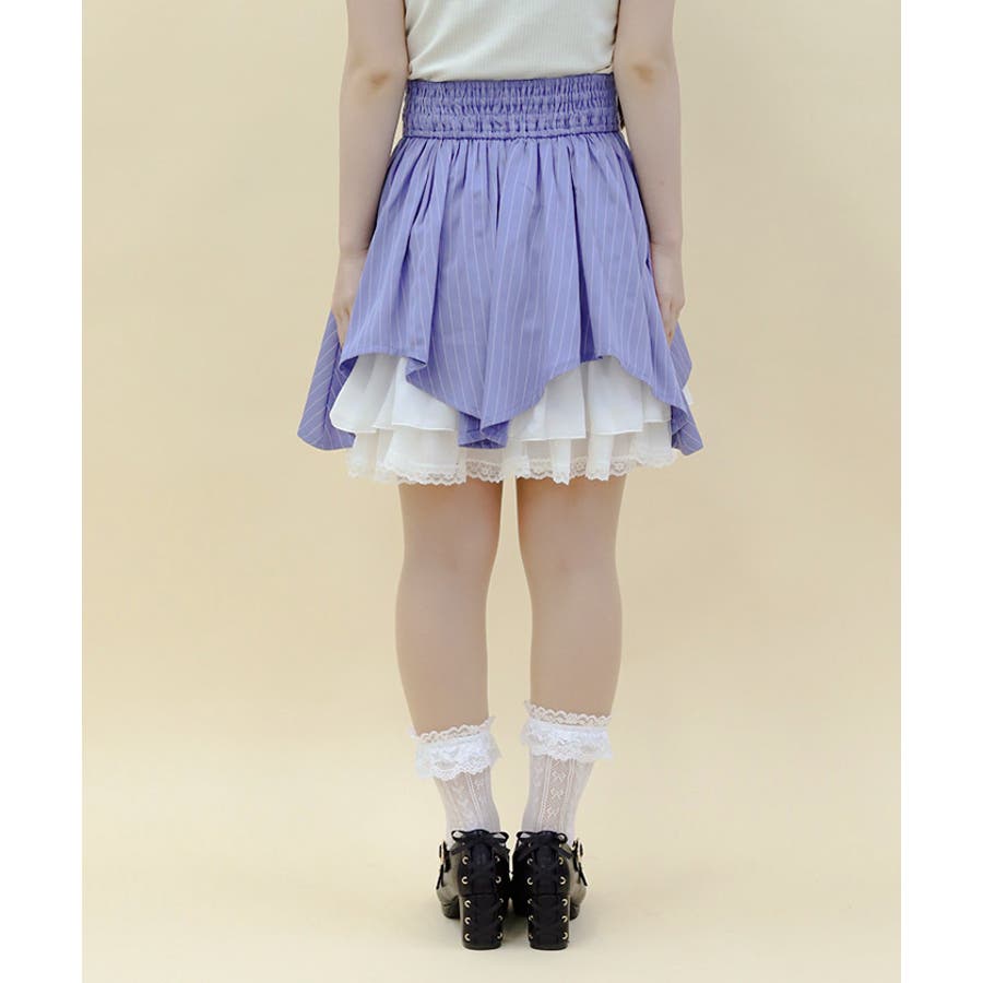 裾の段フリルでガーリーに仕上げたミニスカートです。