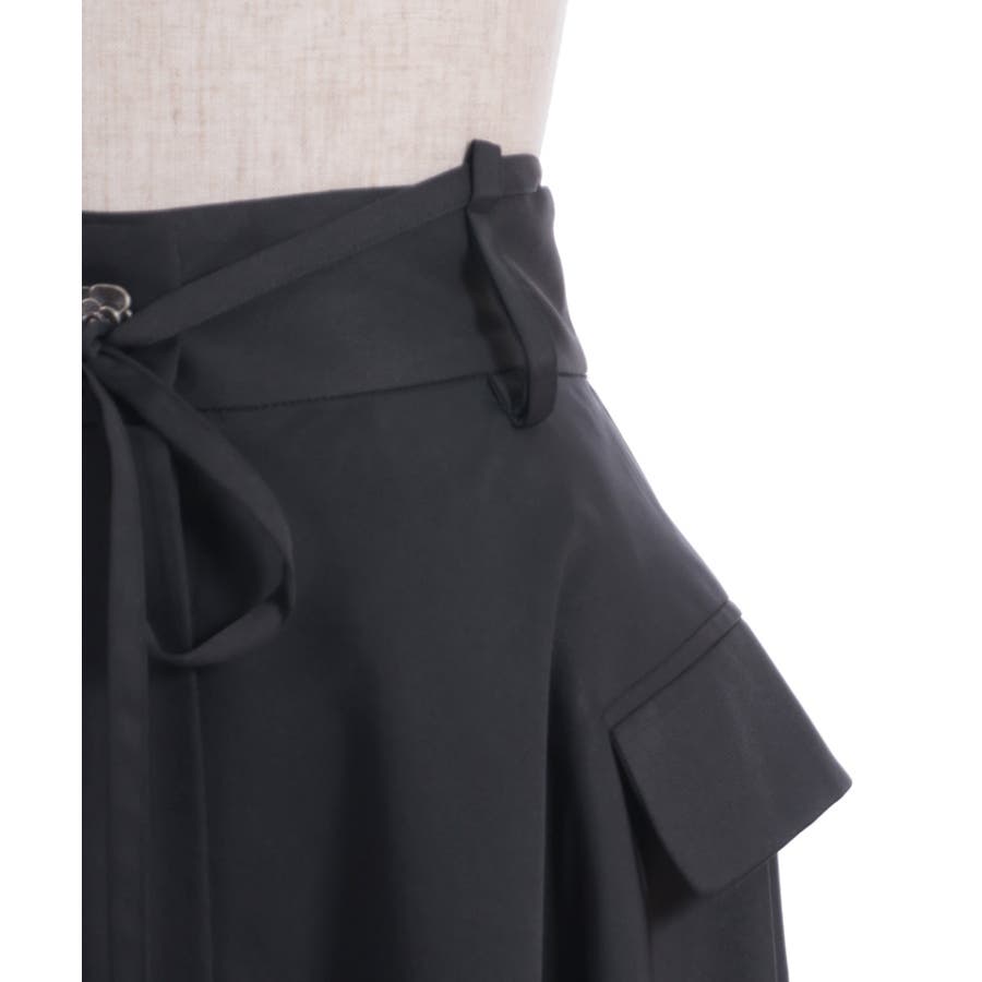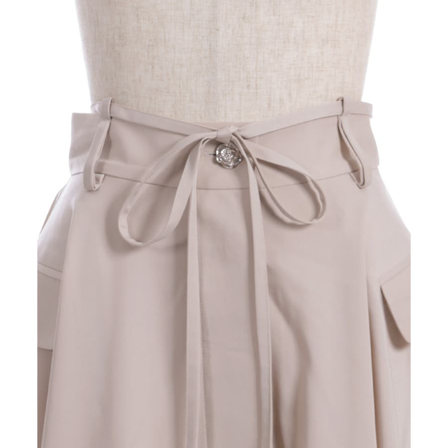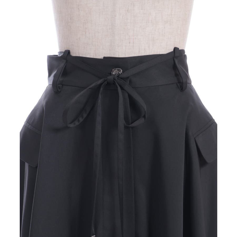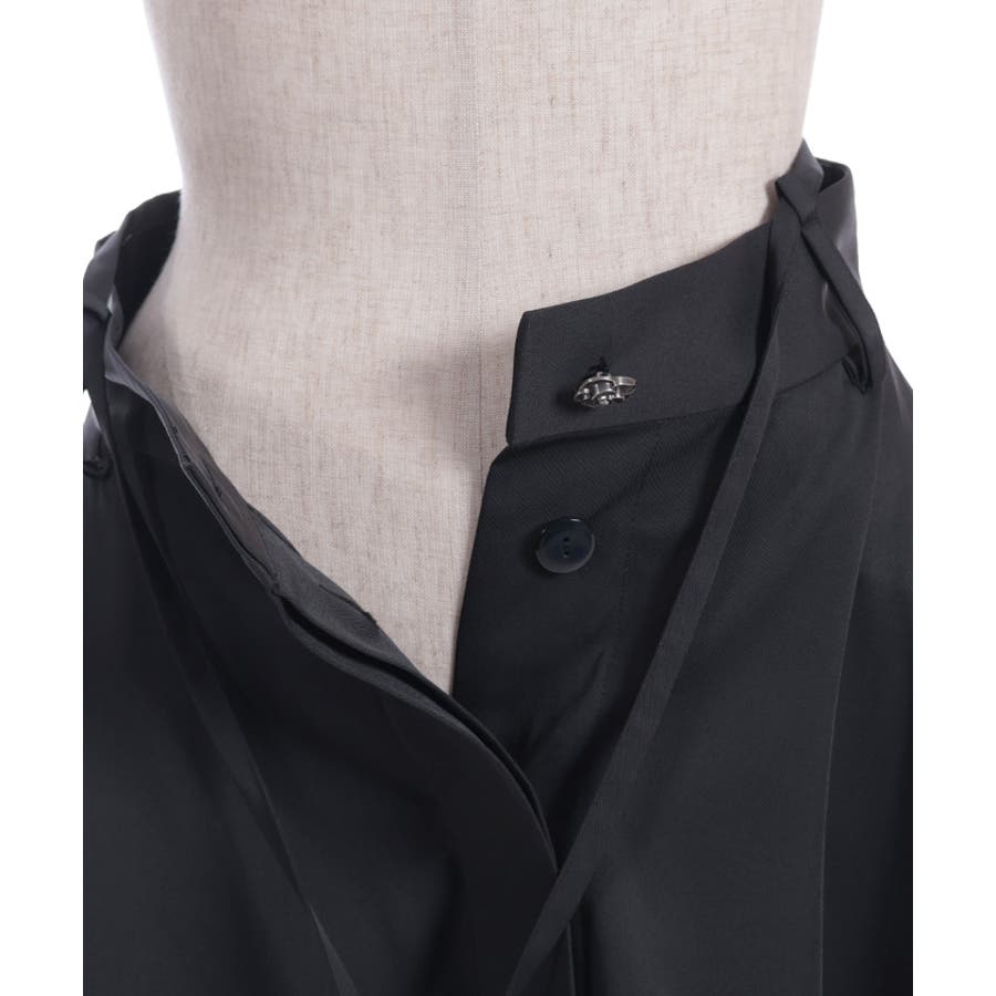 思わずレイヤードしたくなるシルエット。フロントは隠しボタン仕様で開閉可能、巻きスカートやレイヤードアイテムとしてもお使いいただけます。ウエストリボンはベルト上のループに通しさりげなく抜け感のあるディティールを楽しめます。