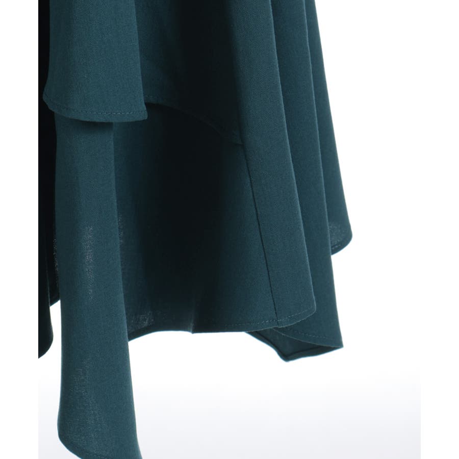 イレギュラーヘムの揺れ感が目を引き、ミドル丈で着こなしにインパクトを添えるイレヘムスカート。
