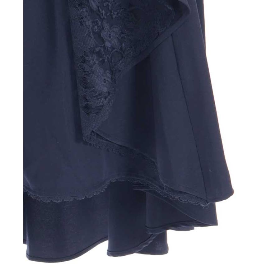 ハイウエストデザインで美しいフィットアンドフレアを作り出します。エレガントなレース使い、きらりとポイントになるジップ使いが魅力的な1枚。