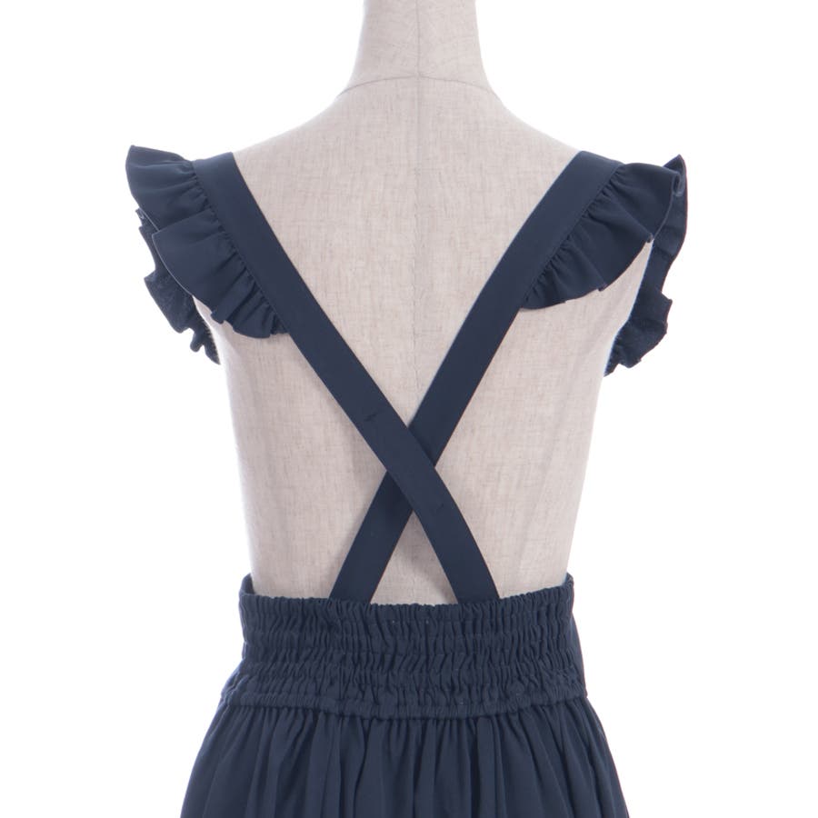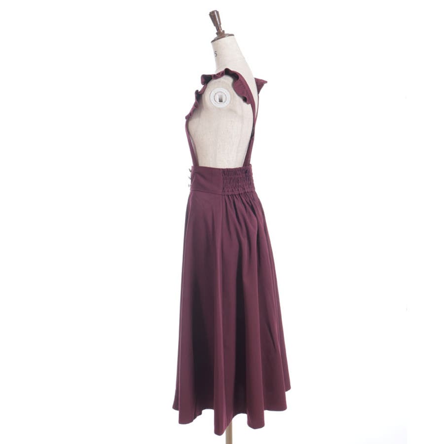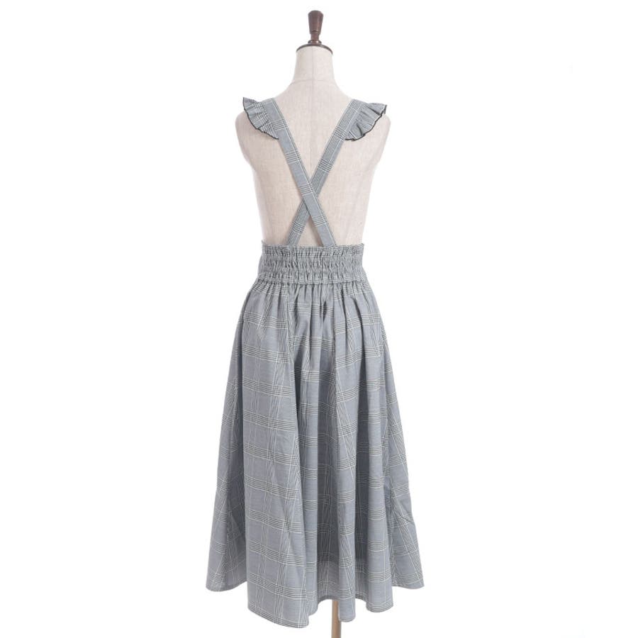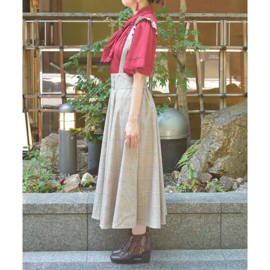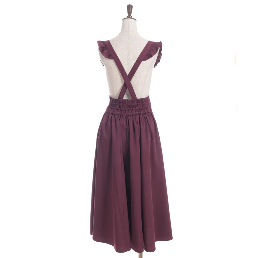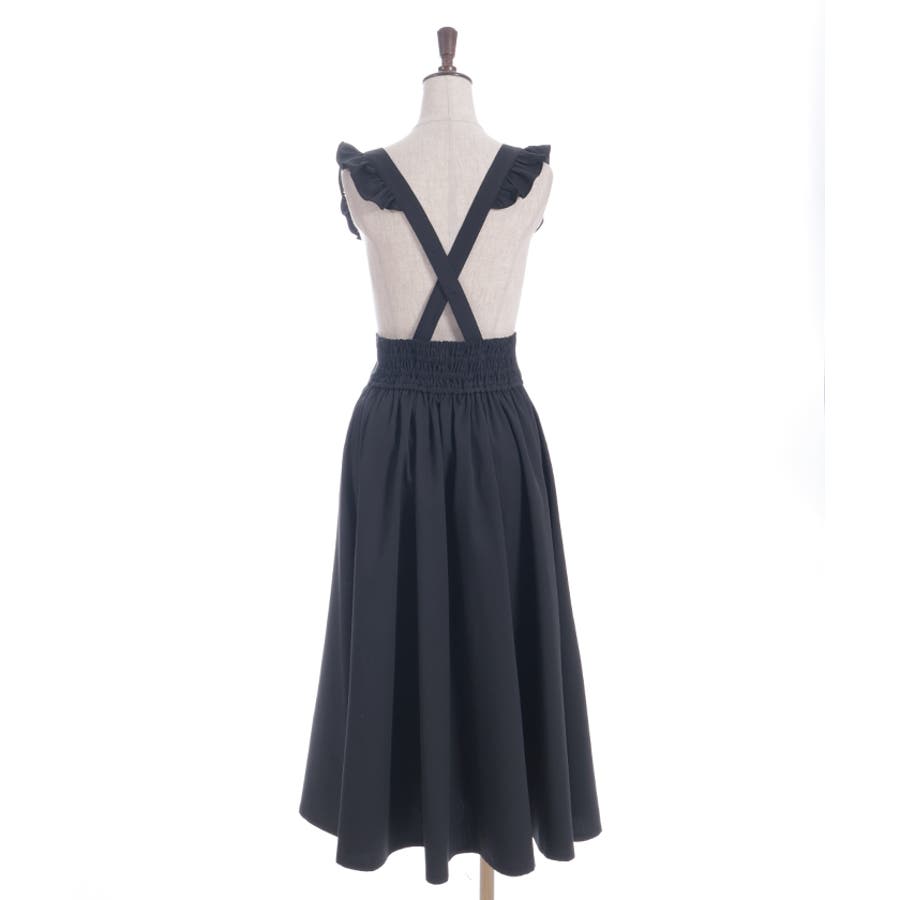 シンプルなハイウエストデザインのスカートにボタンやサスペンダーがアクセントになったアイテム。
