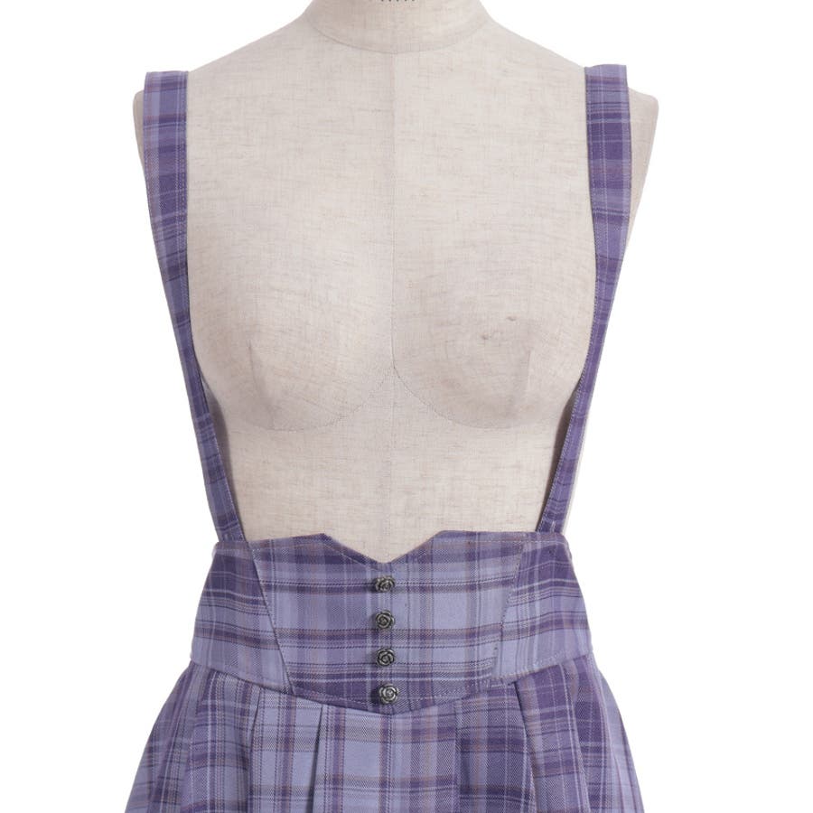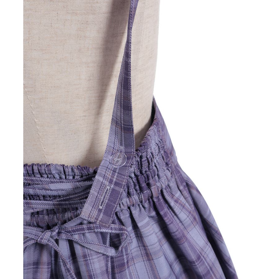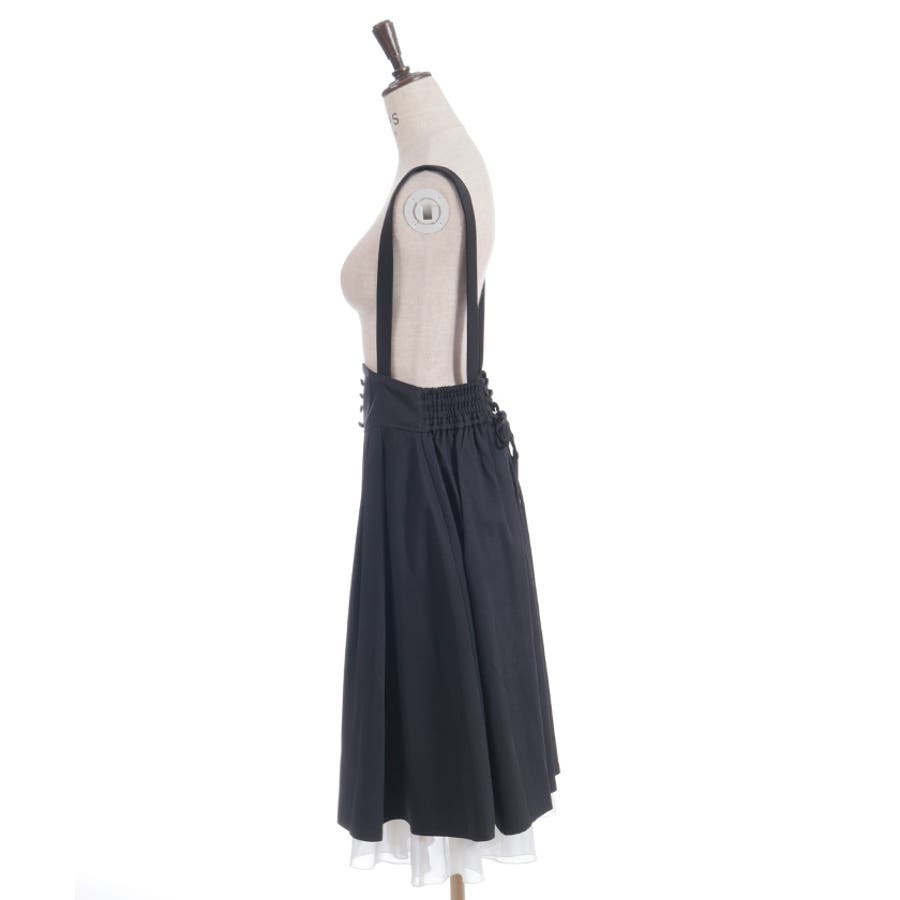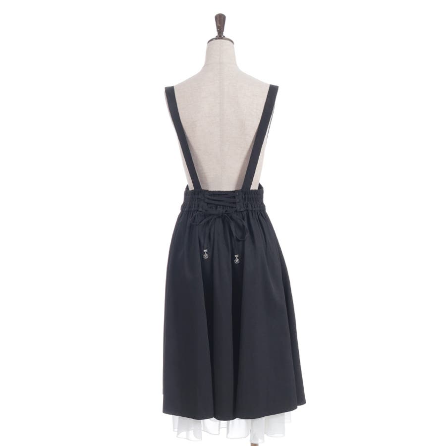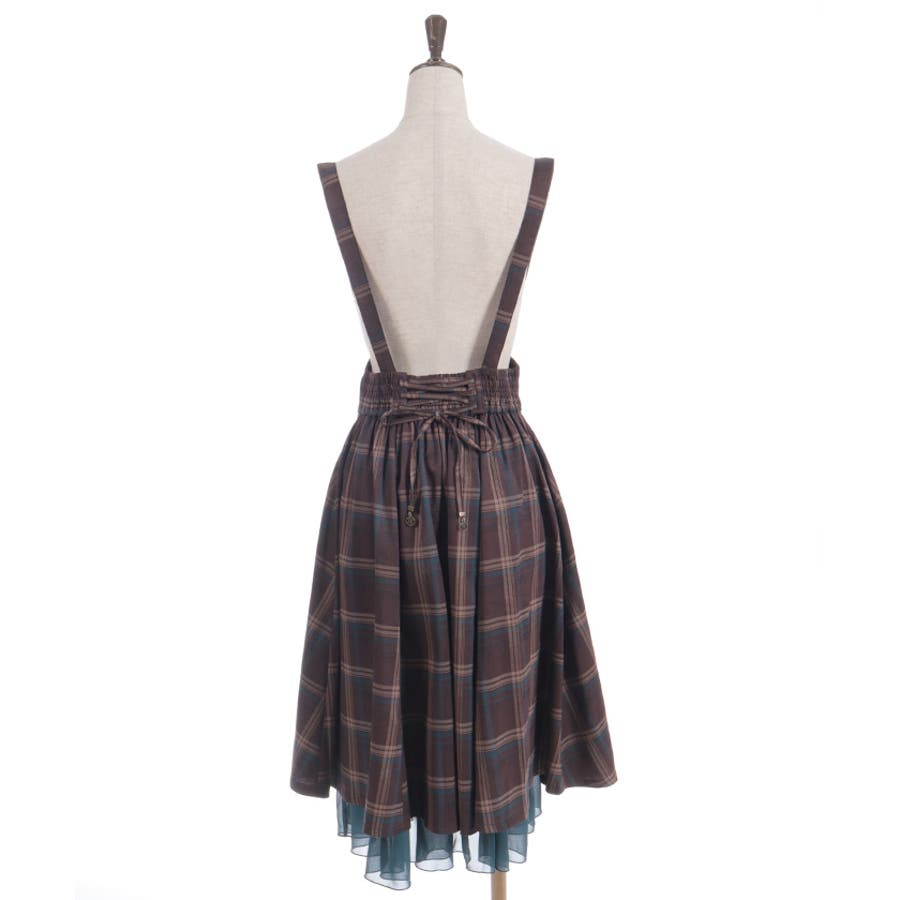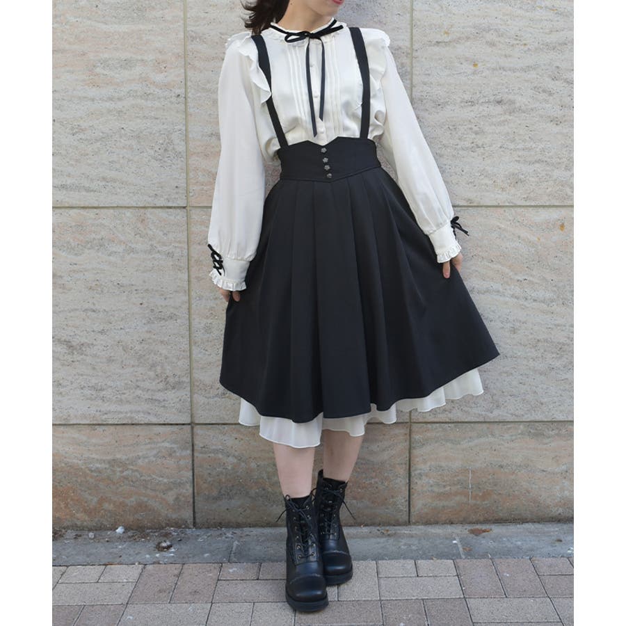 サスペンダー付きでコーデの主役になり、後ろウエストのレースアップで体形に合わせてシルエット調整できるのも魅力です。