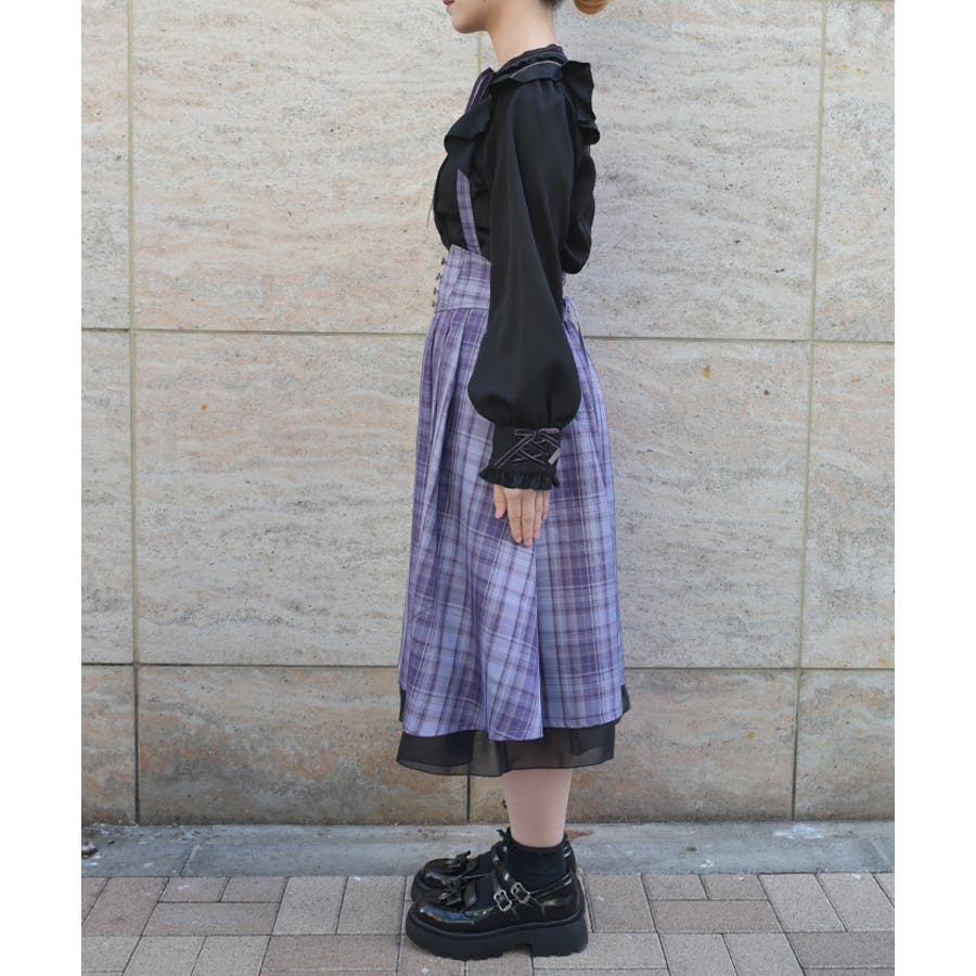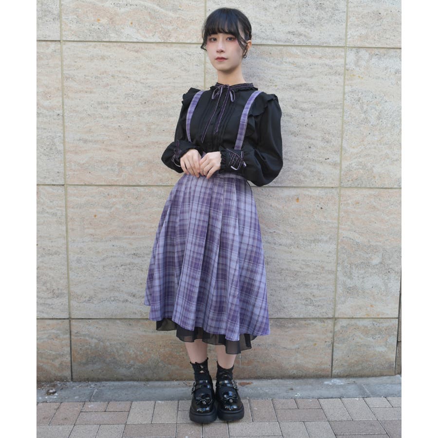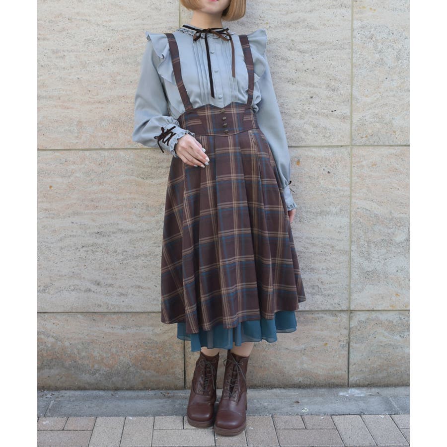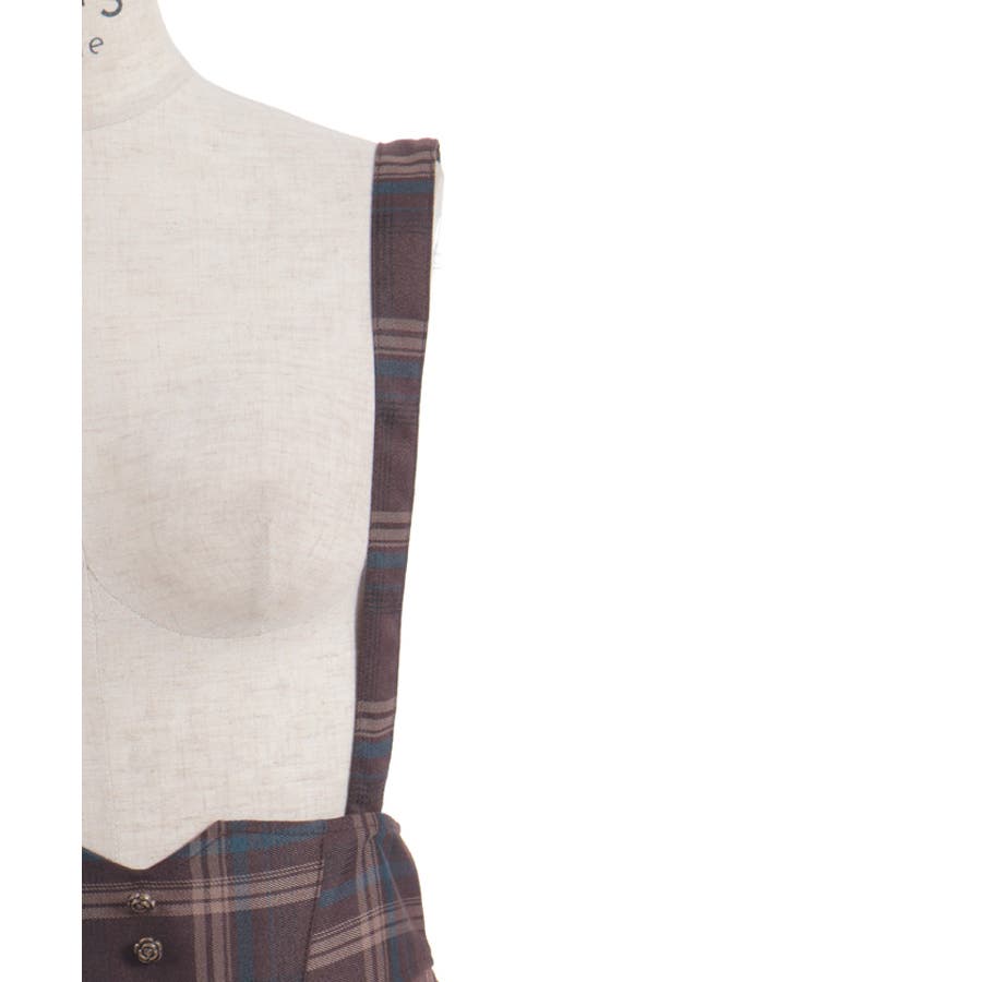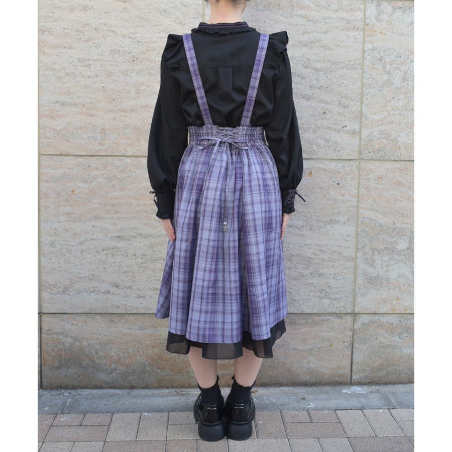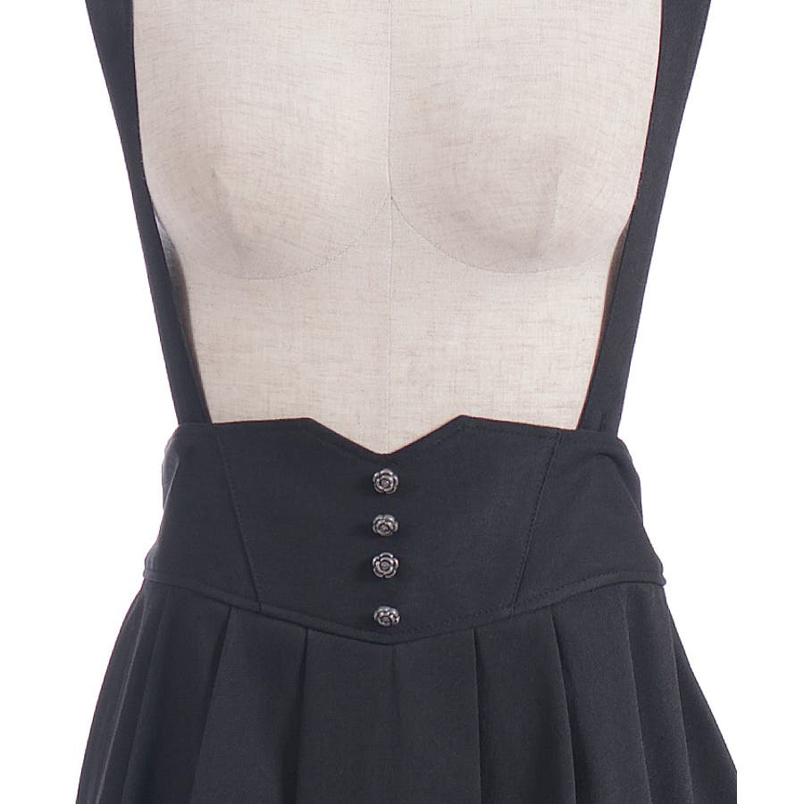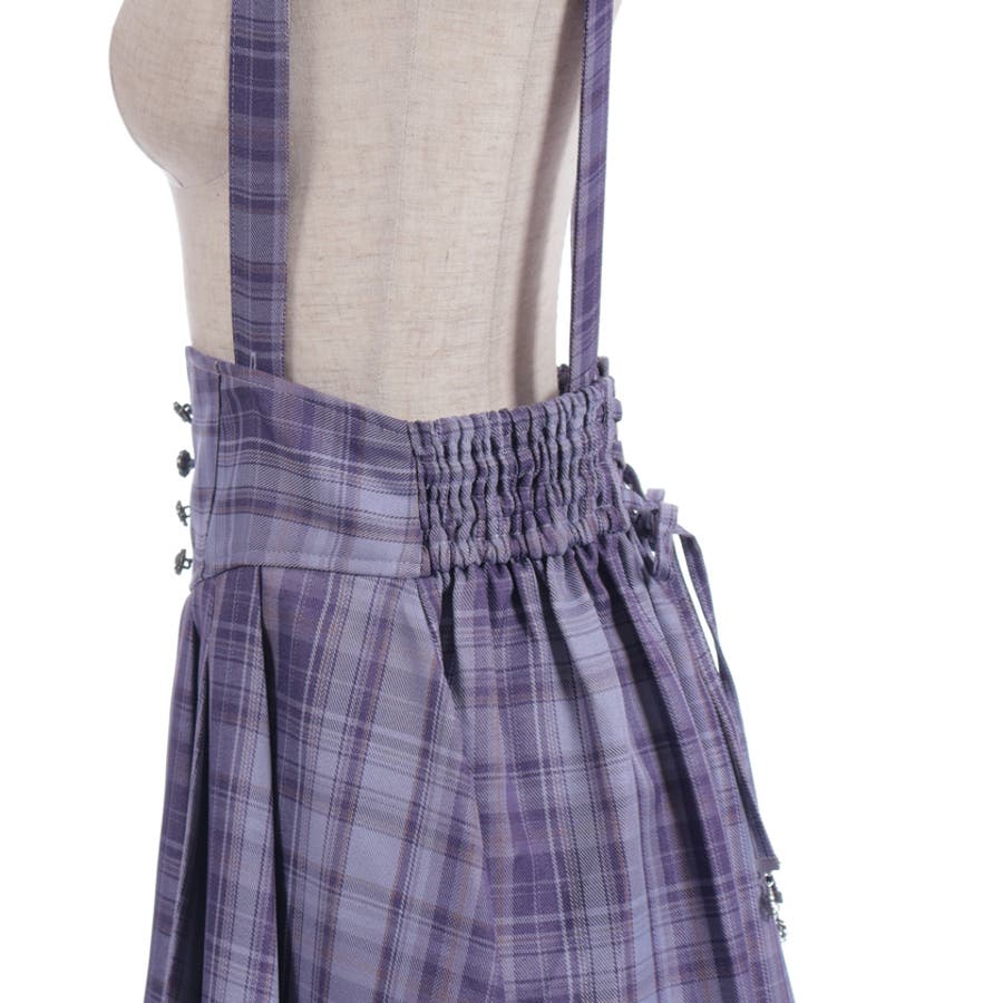 サスペンダー付きでコーデの主役になり、後ろウエストのレースアップで体形に合わせてシルエット調整できるのも魅力です。