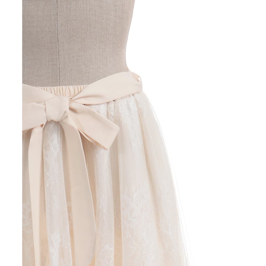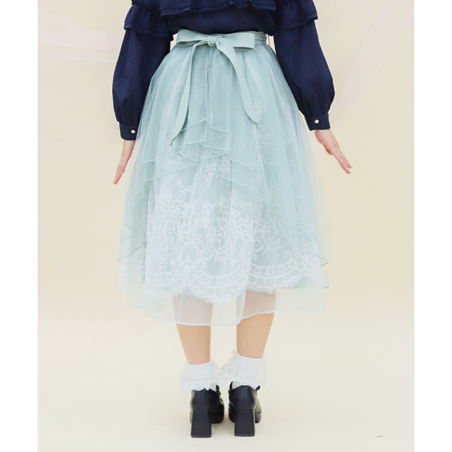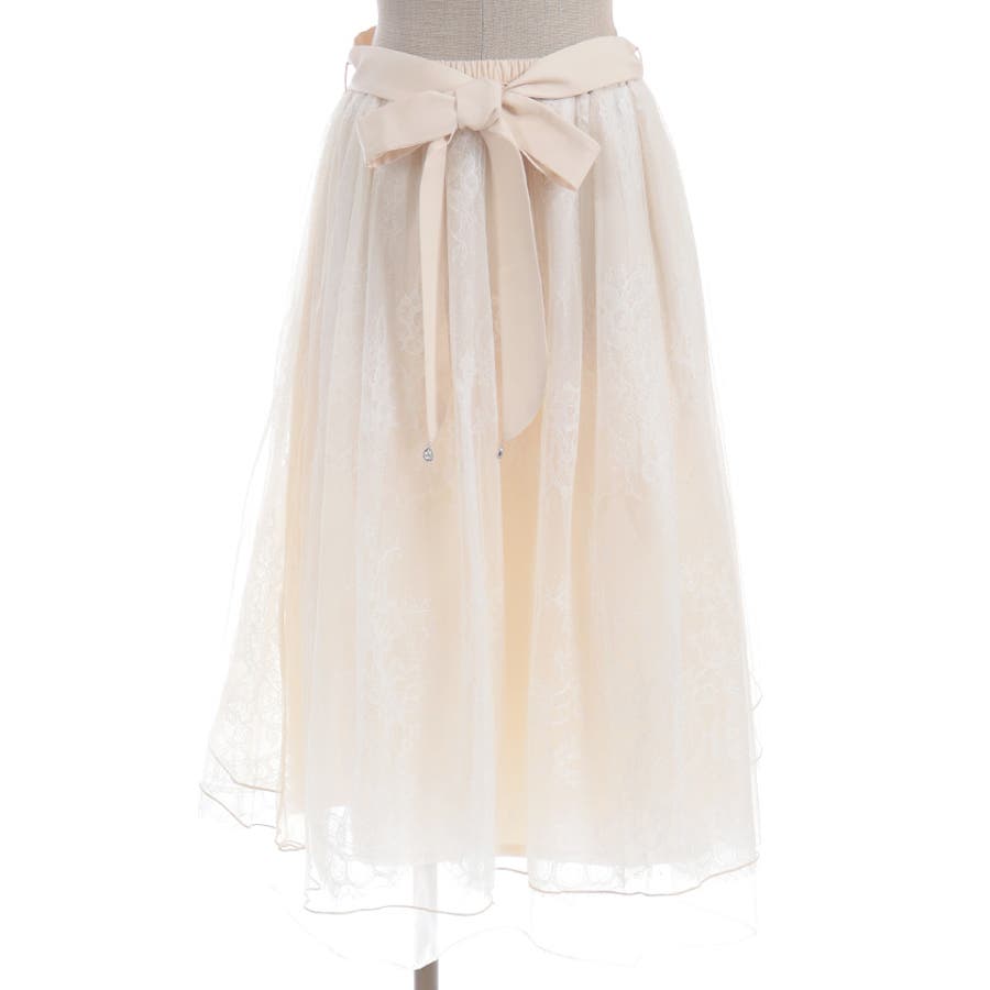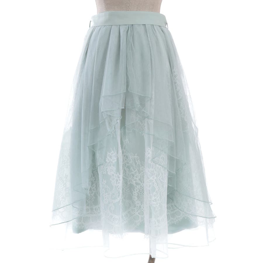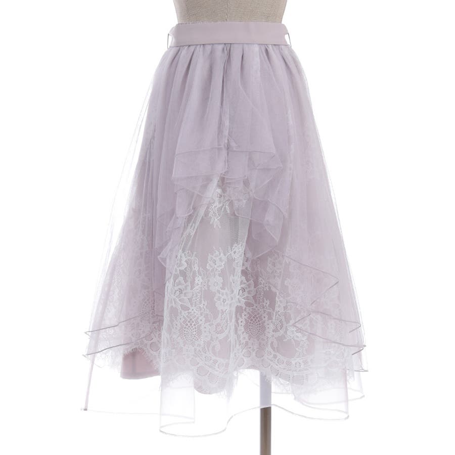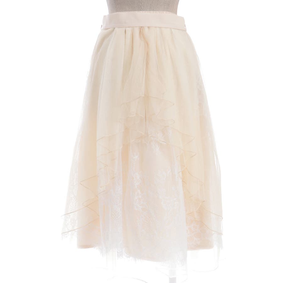 チュールやレースを重ねて奥行きのあるデザインに仕上げた華やかなスカートです。