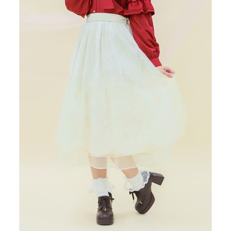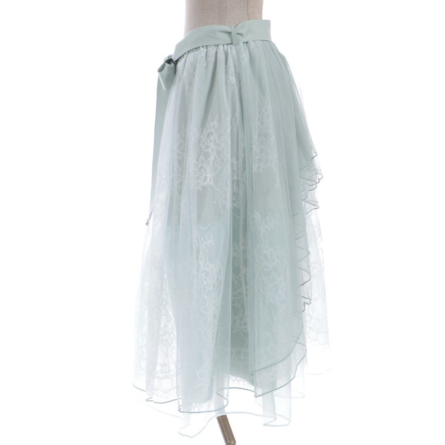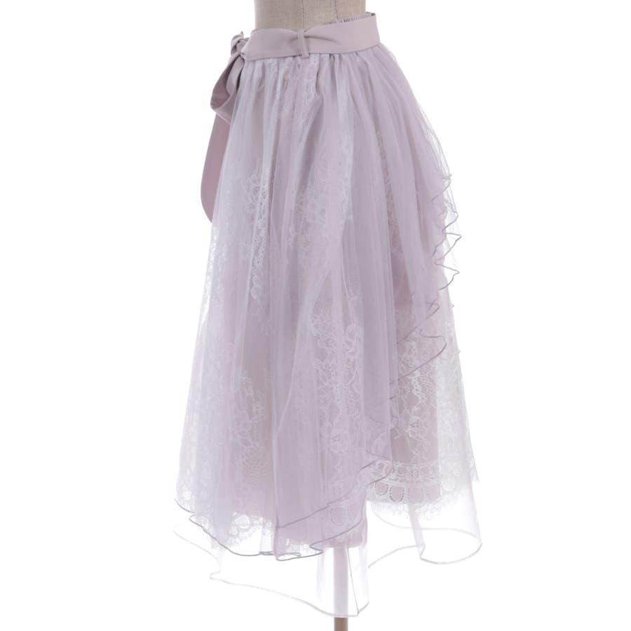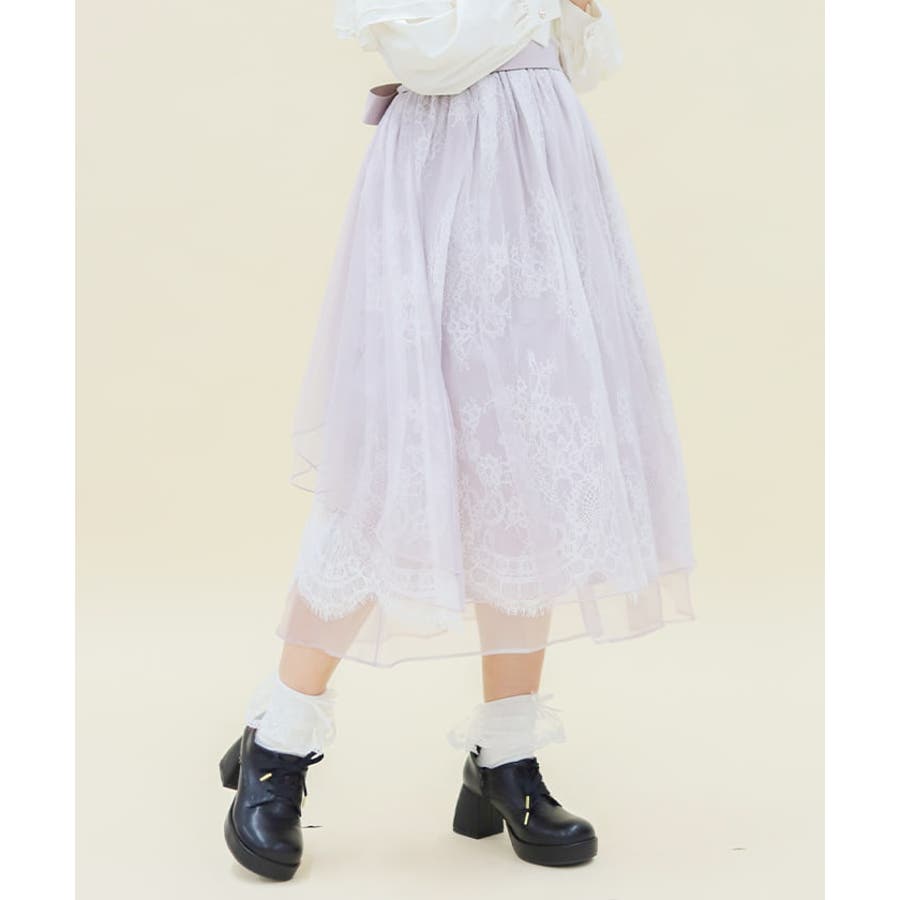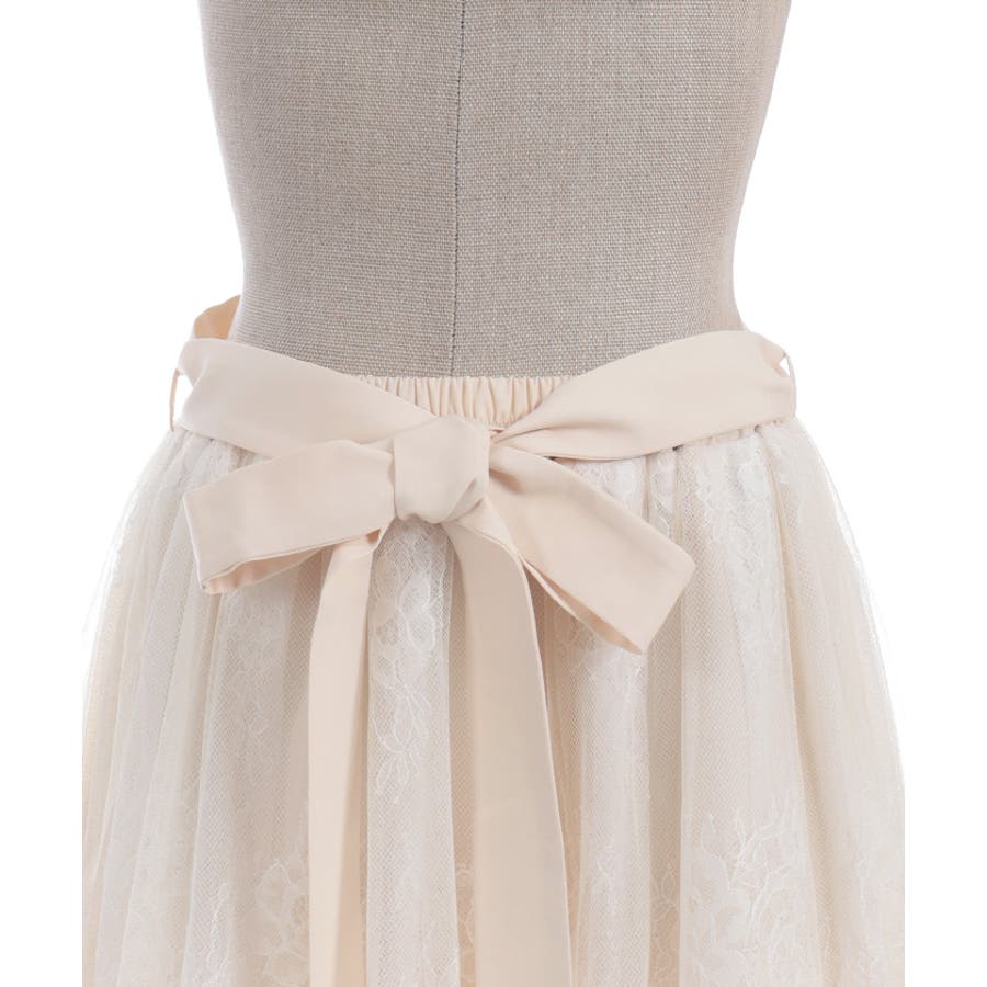 チュールやレースを重ねて奥行きのあるデザインに仕上げた華やかなスカートです。
