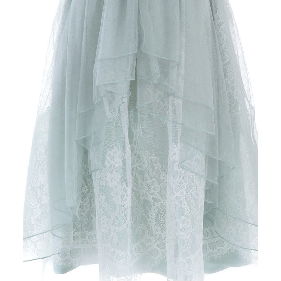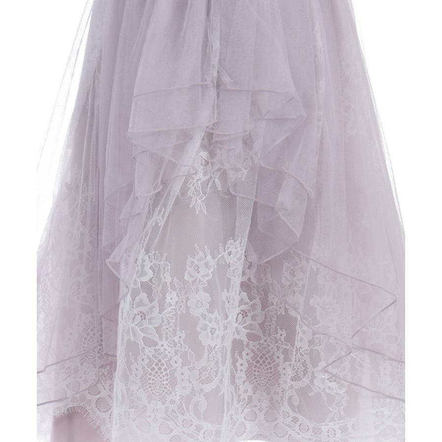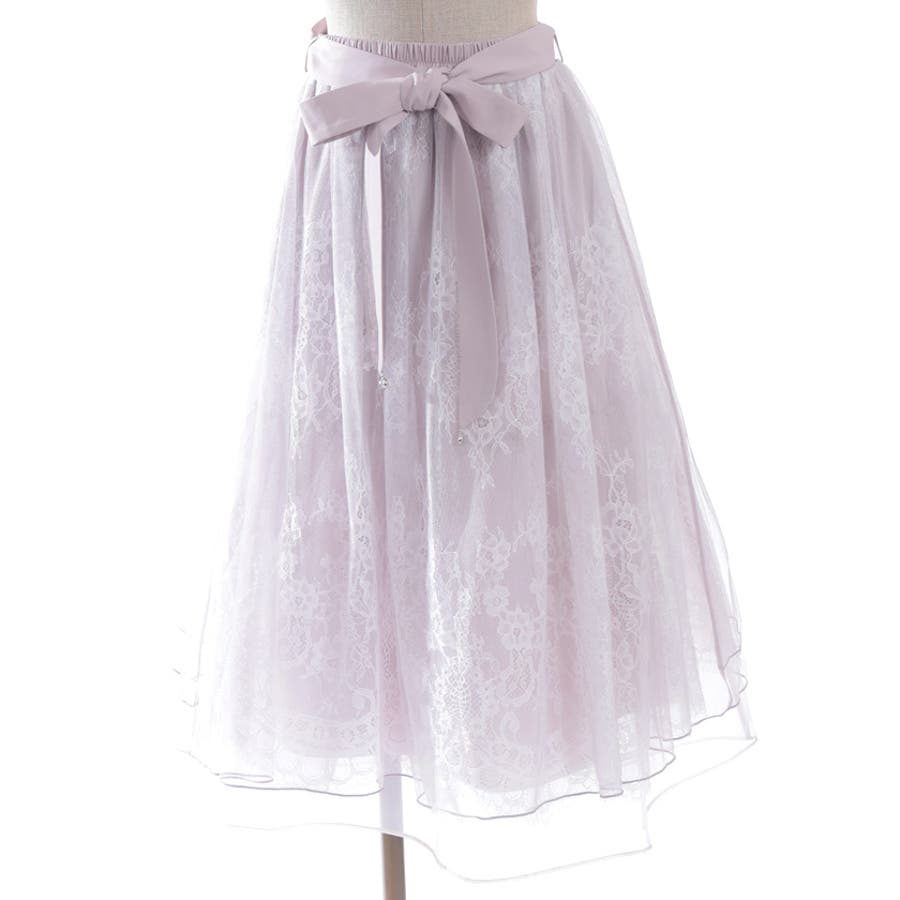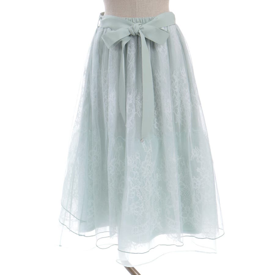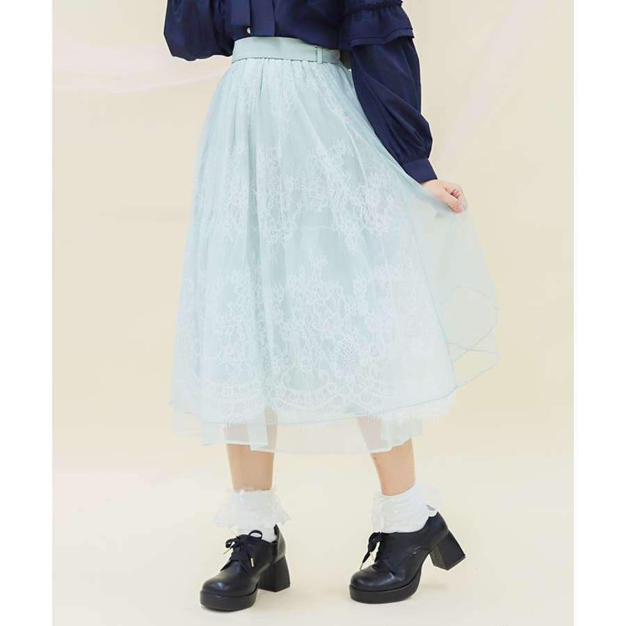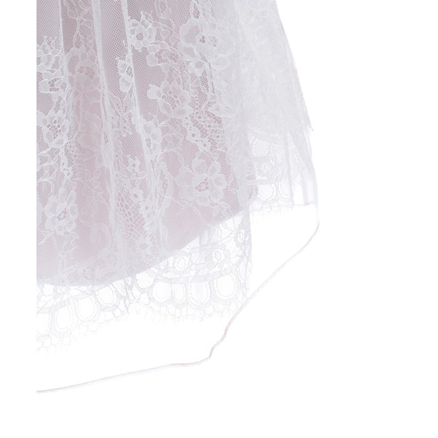 チュールやレースを重ねて奥行きのあるデザインに仕上げた華やかなスカートです。