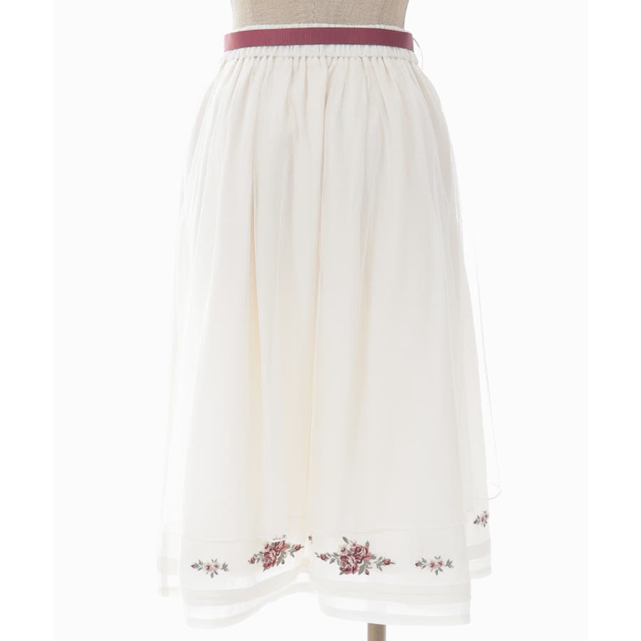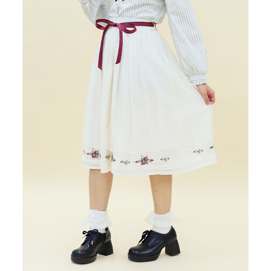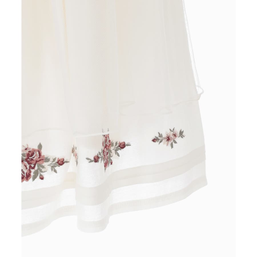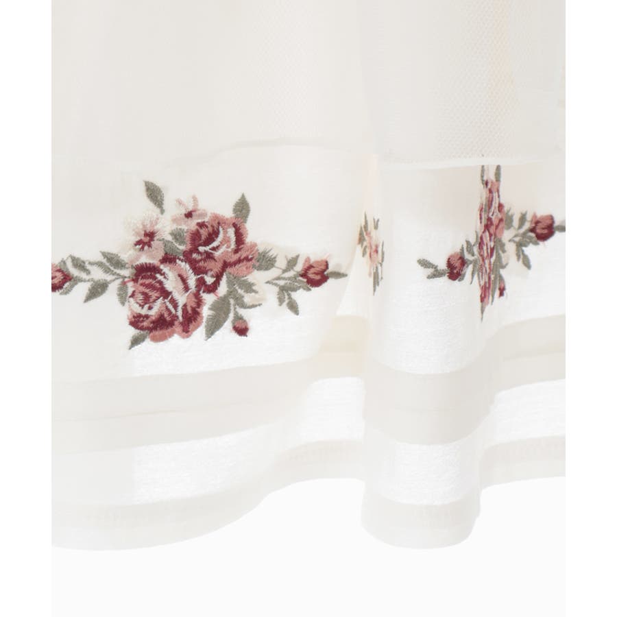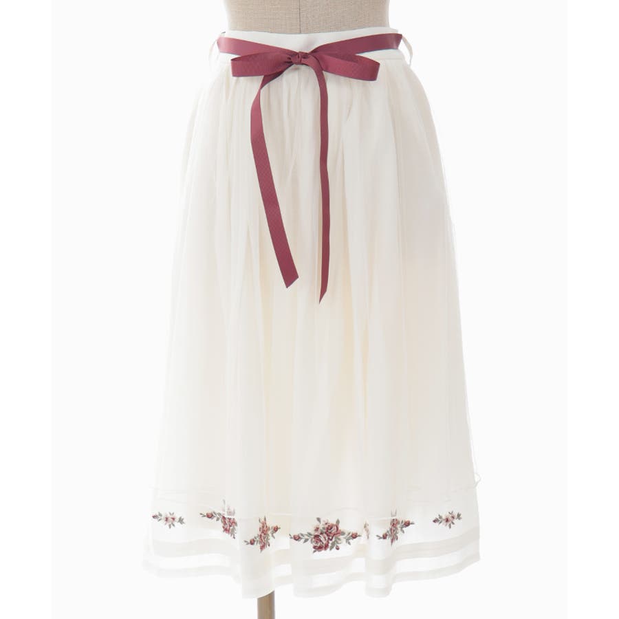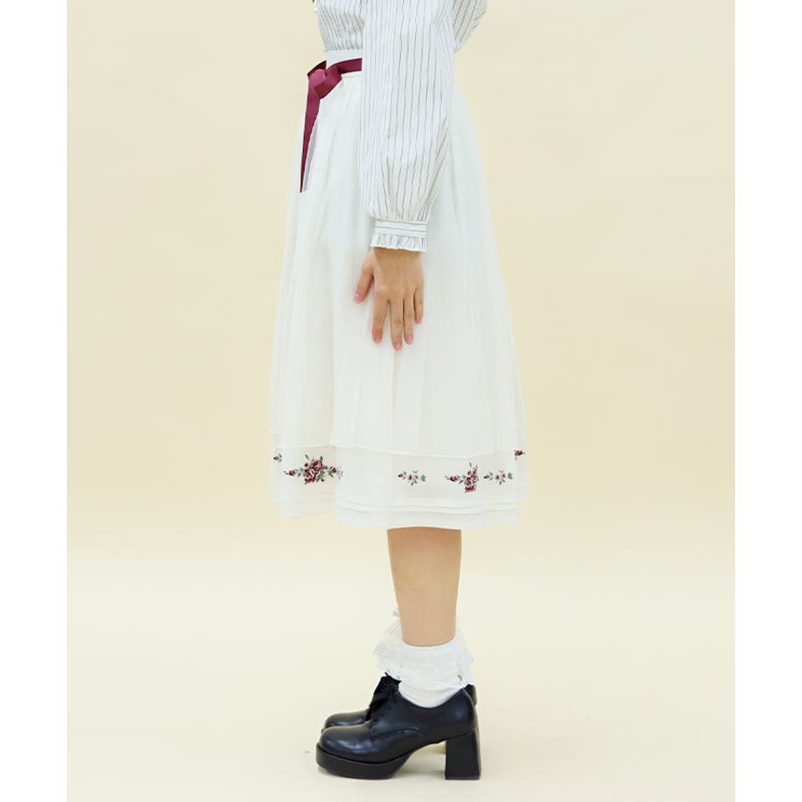 ブーケモチーフの刺繍をスカートの裾にあしらった春らしいアイテムです。