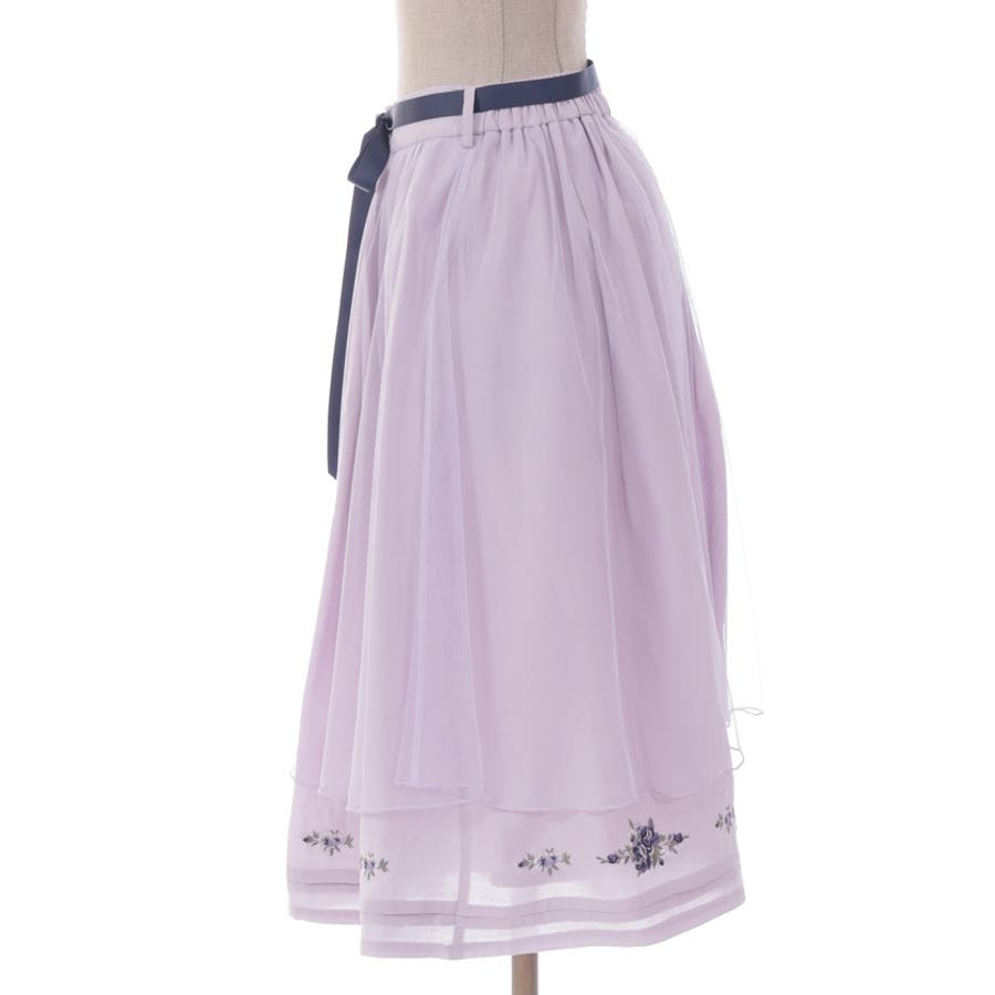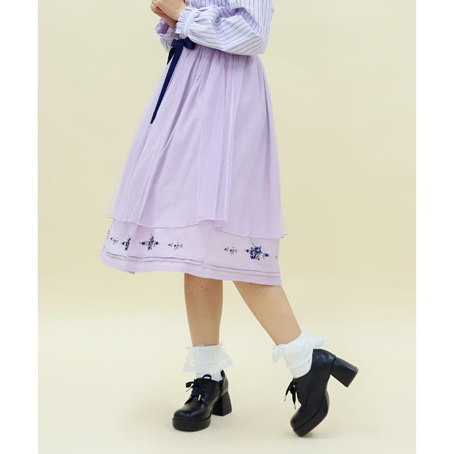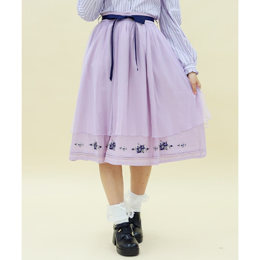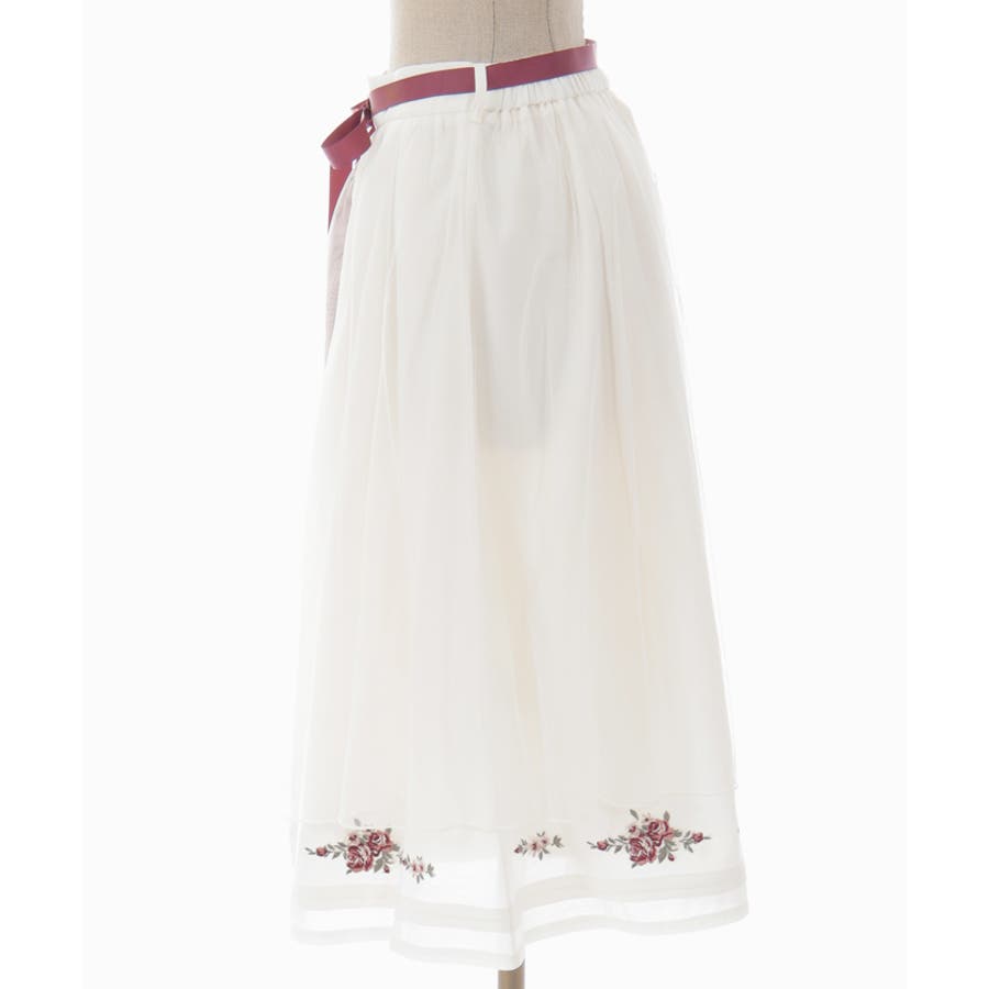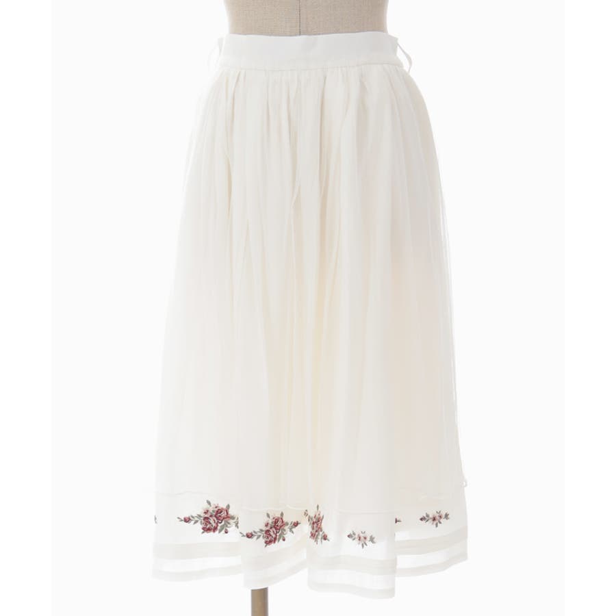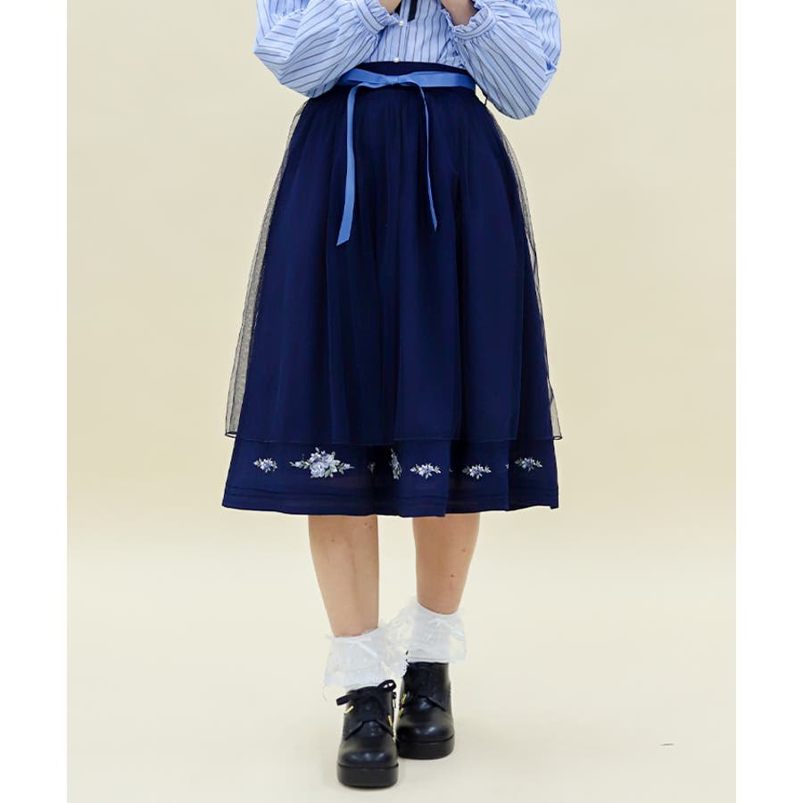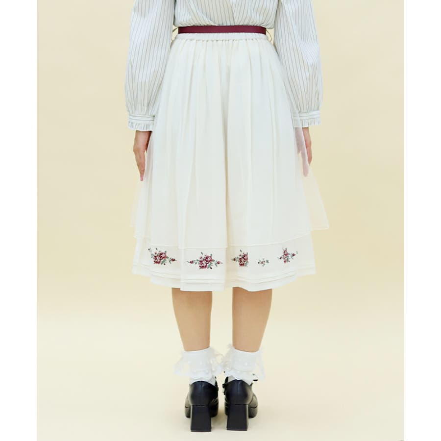 ブーケモチーフの刺繍をスカートの裾にあしらった春らしいアイテムです。