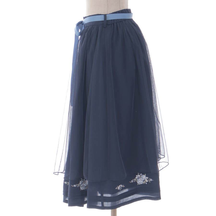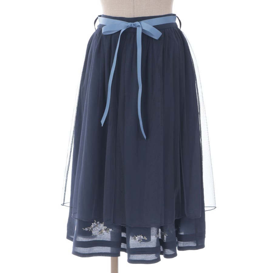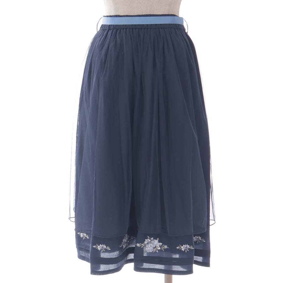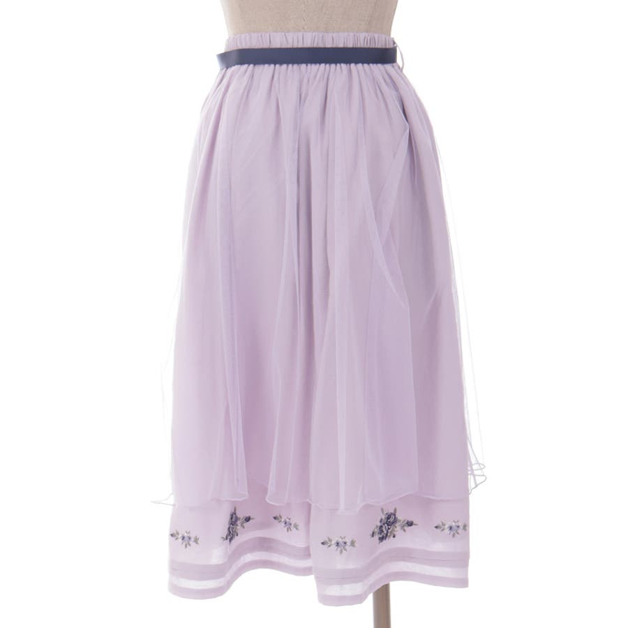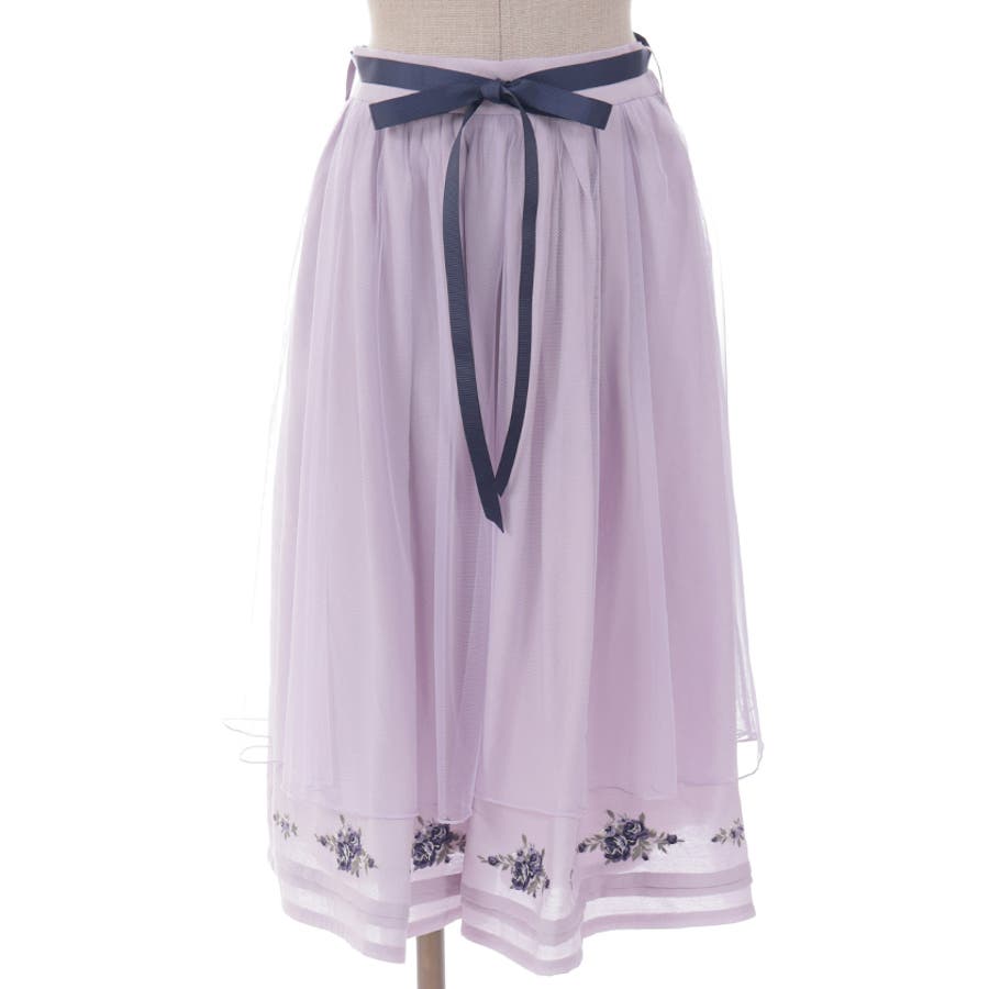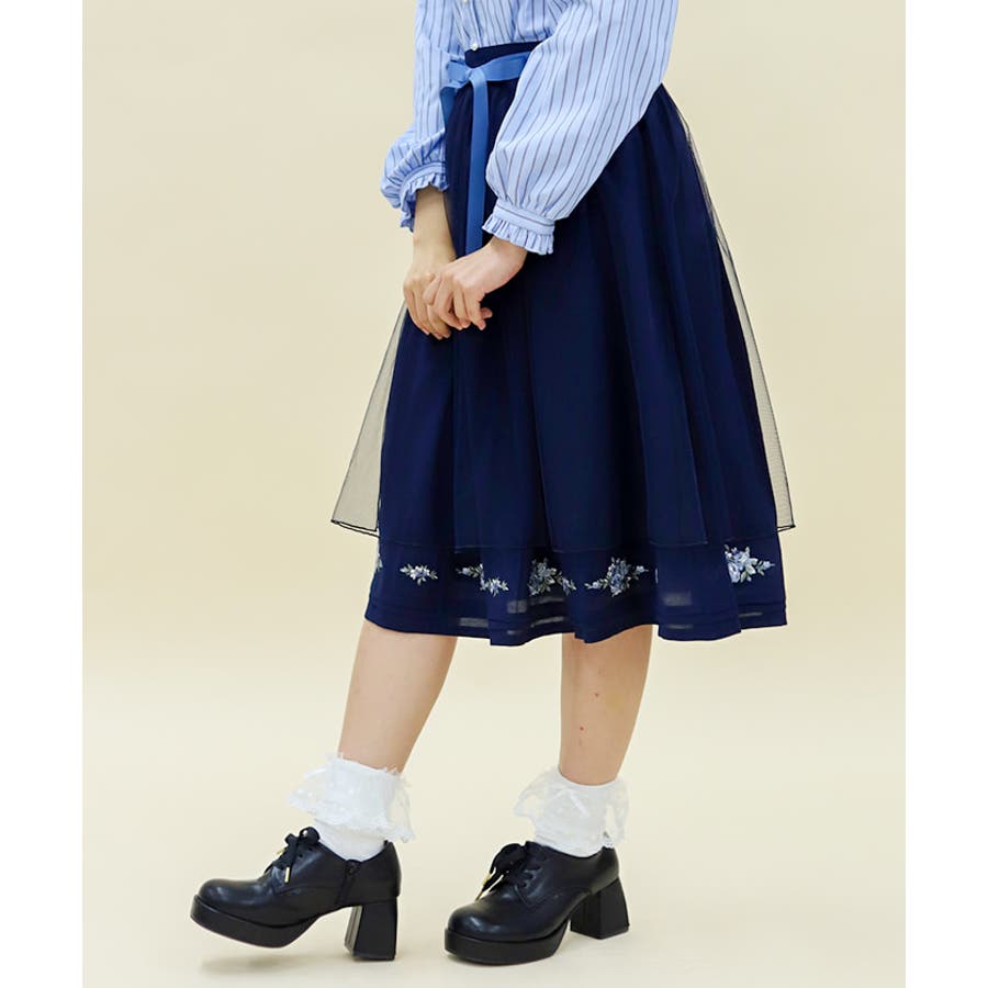 ブーケモチーフの刺繍をスカートの裾にあしらった春らしいアイテムです。