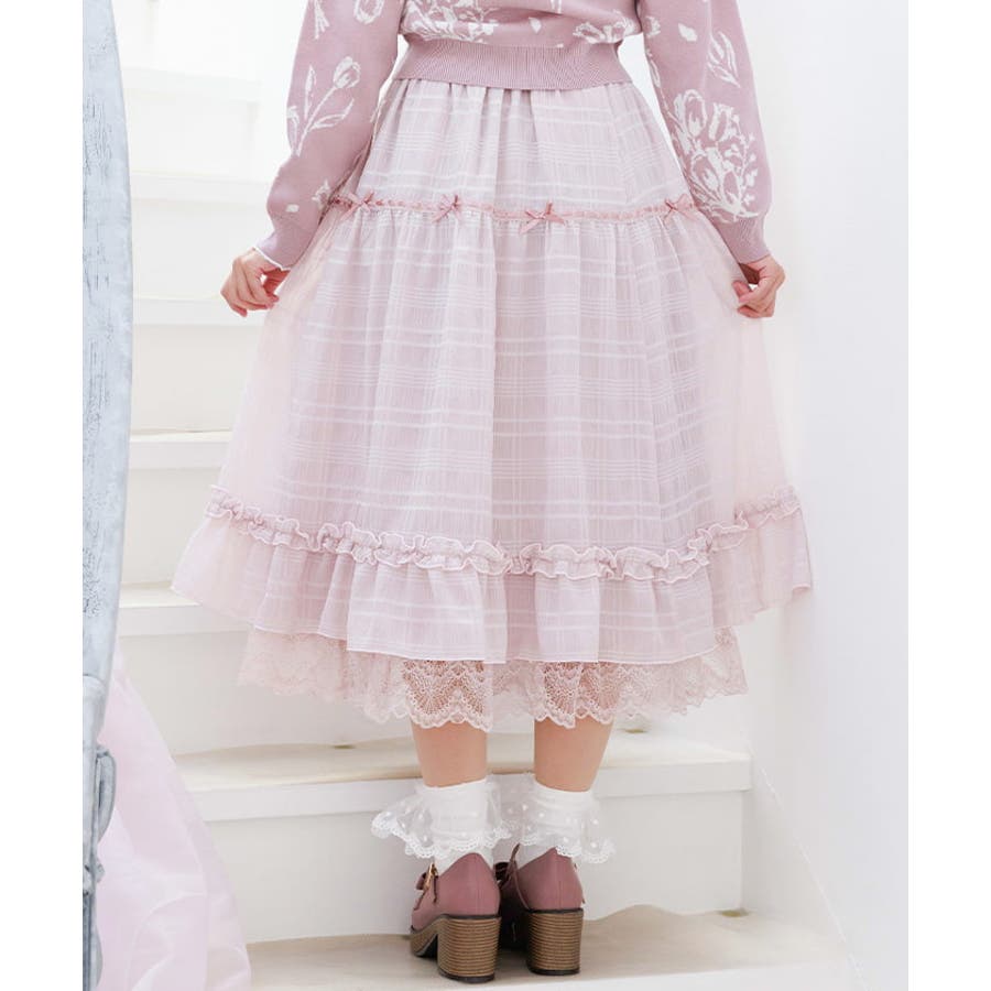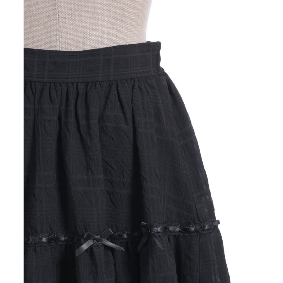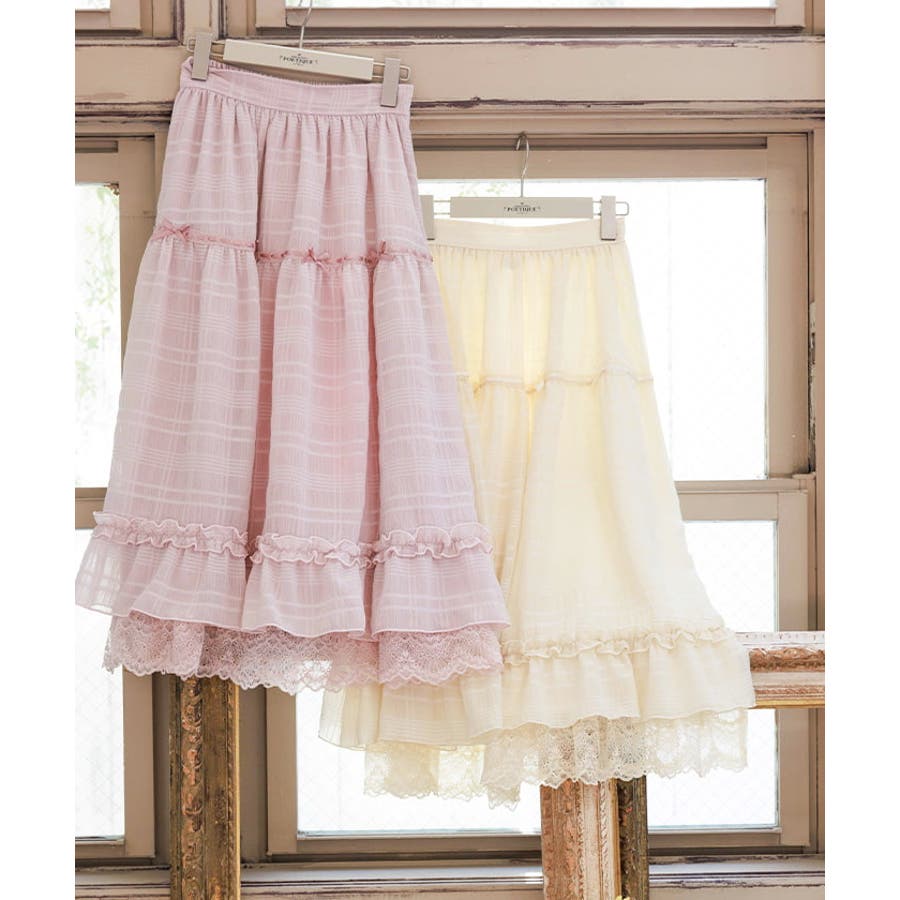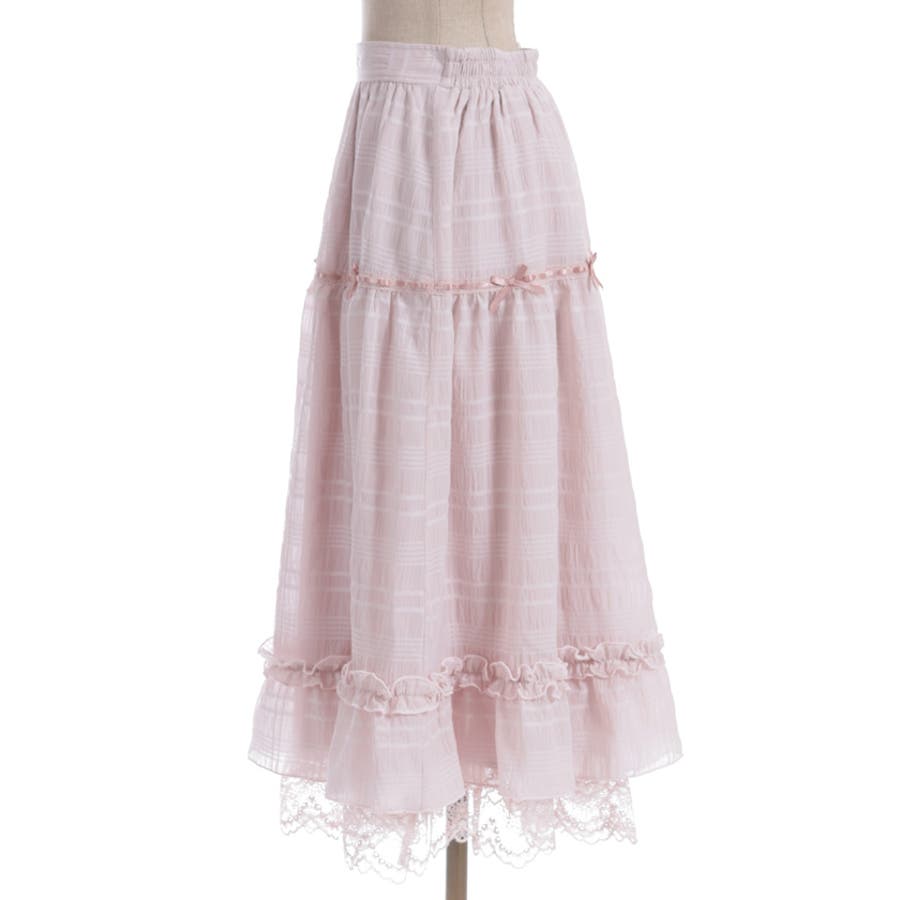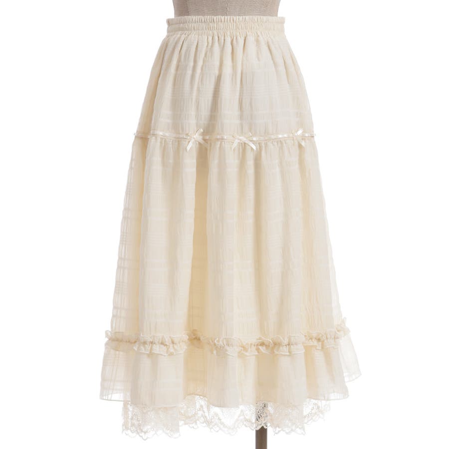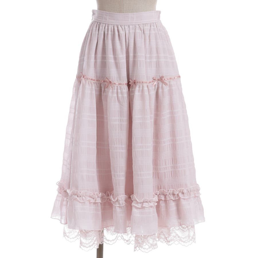シアーチェックの生地で軽やかに仕上げたガーリーなスカートです。