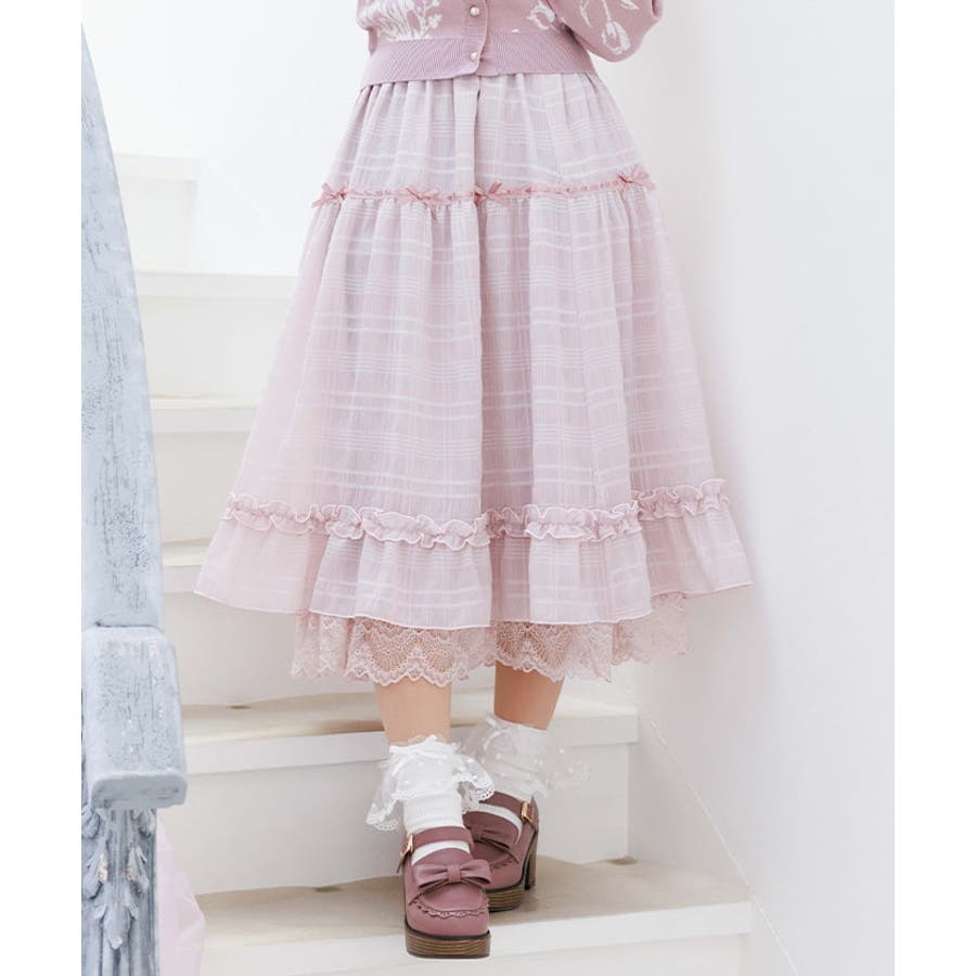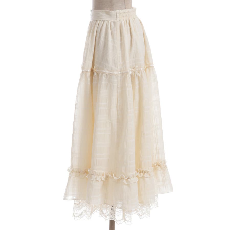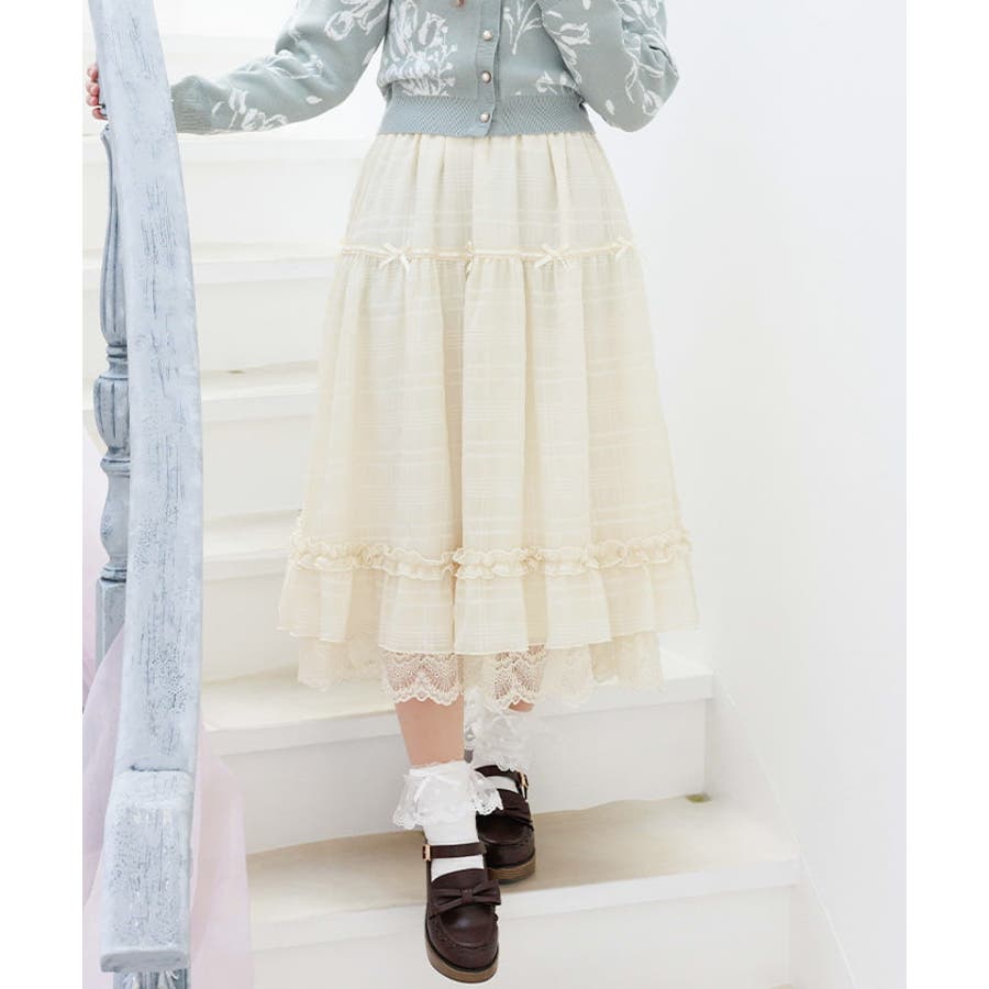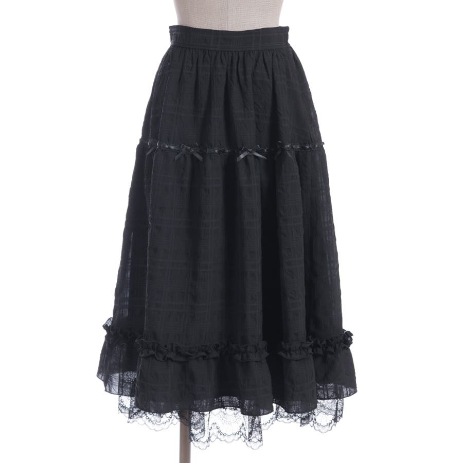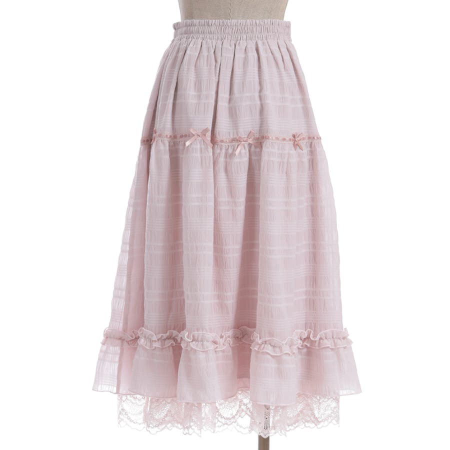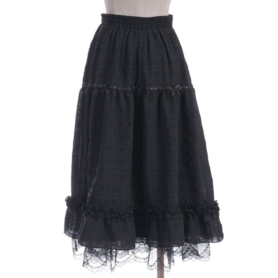 シアーチェックの生地で軽やかに仕上げたガーリーなスカートです。