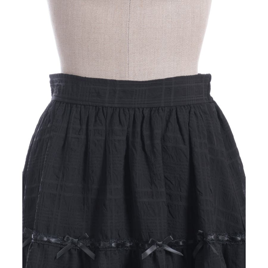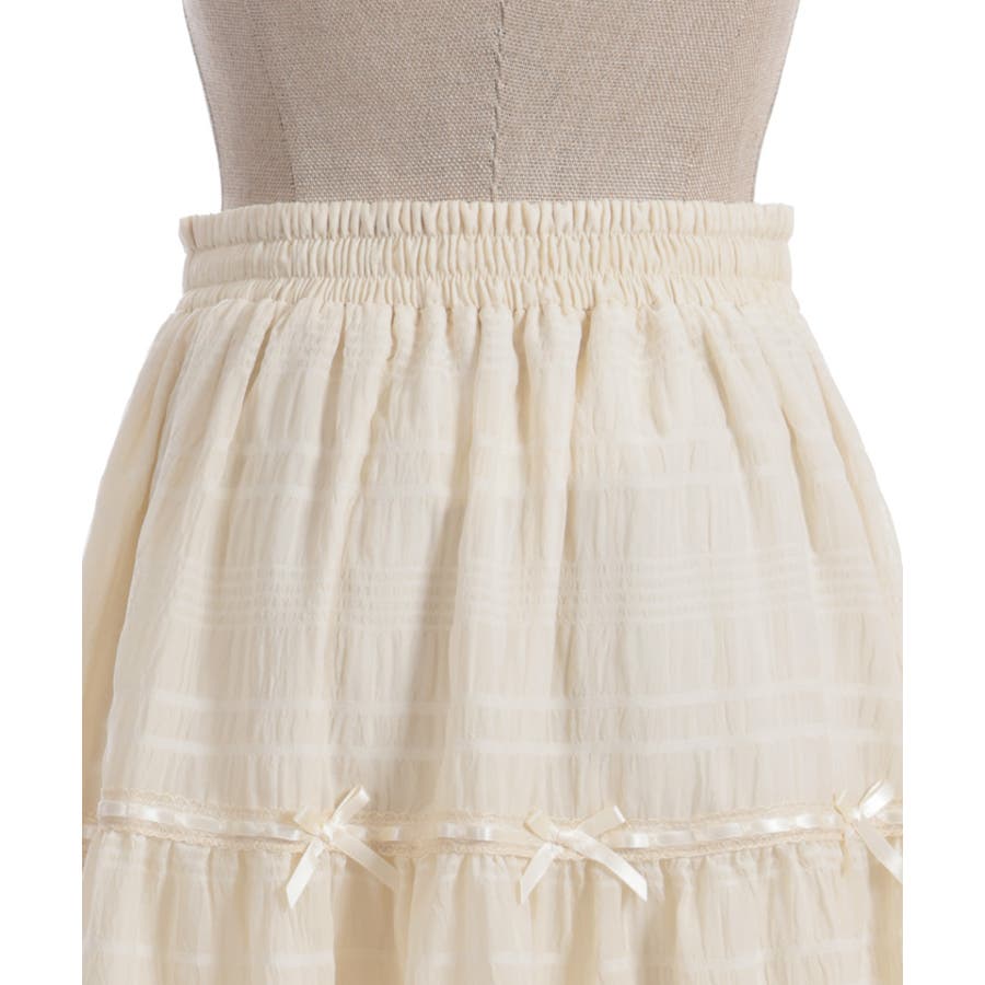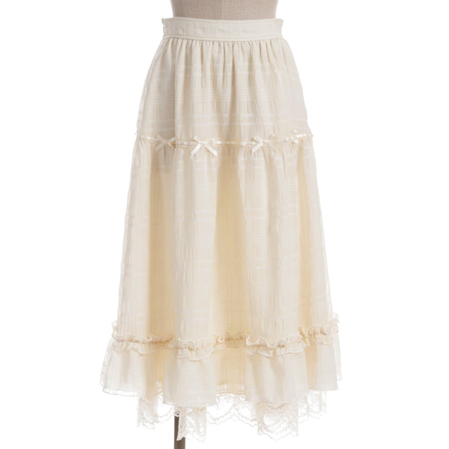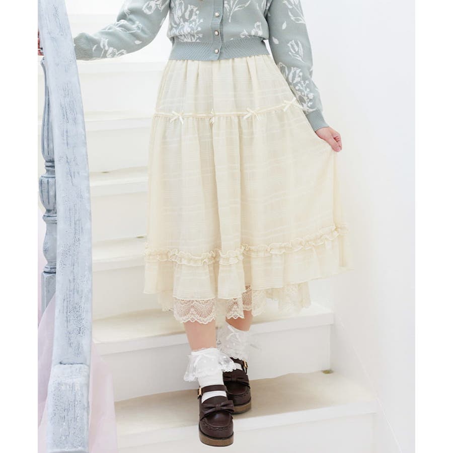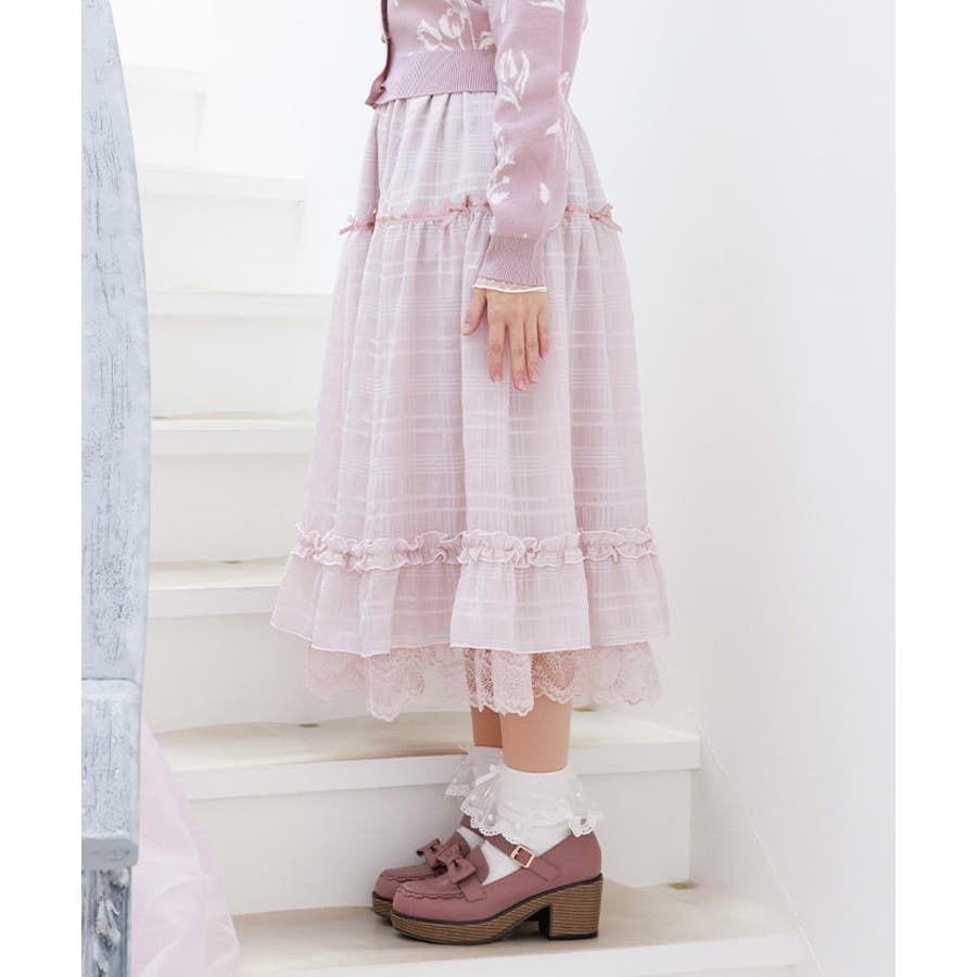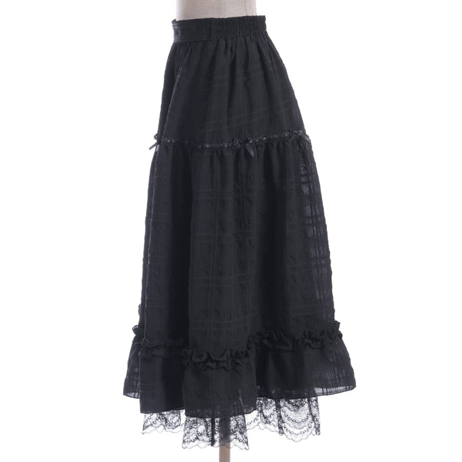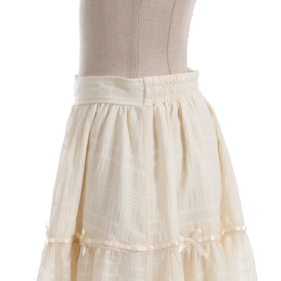 シアーチェックの生地で軽やかに仕上げたガーリーなスカートです。