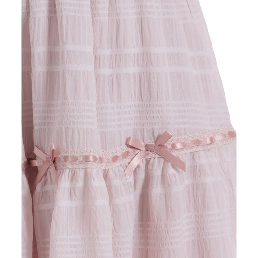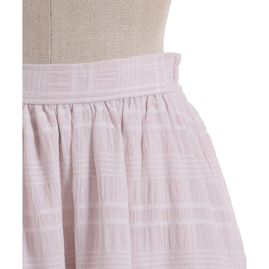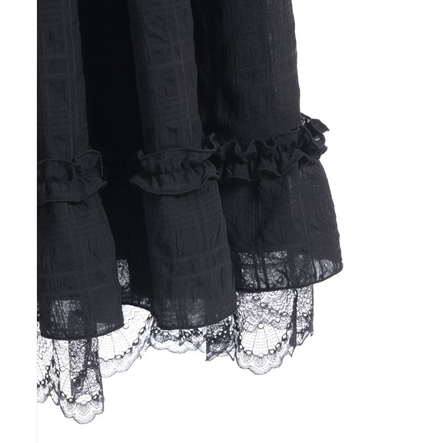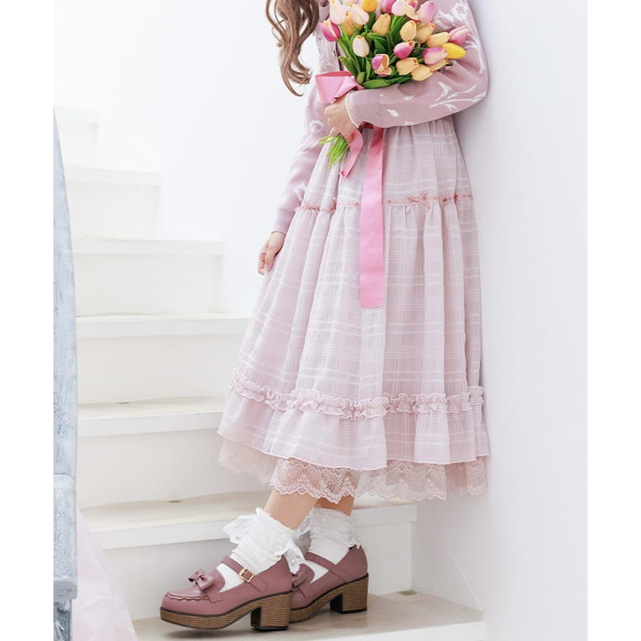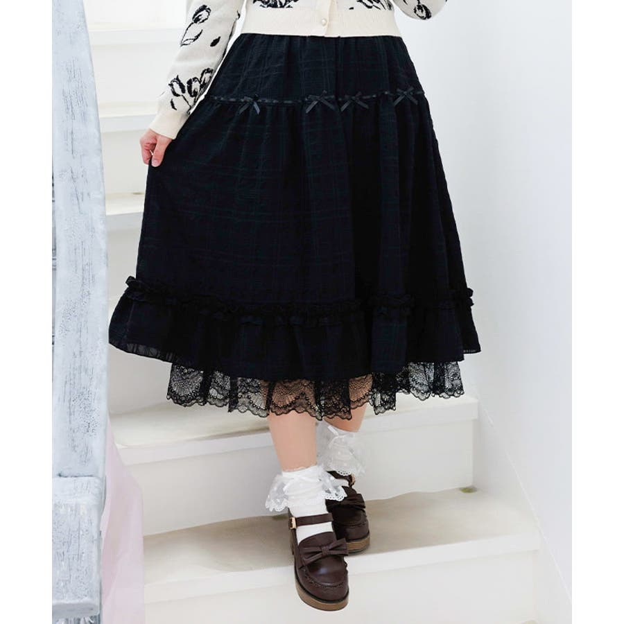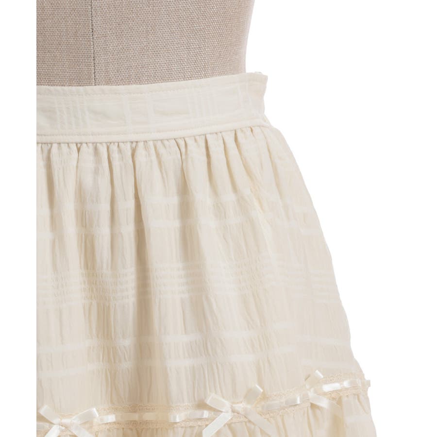 シアーチェックの生地で軽やかに仕上げたガーリーなスカートです。