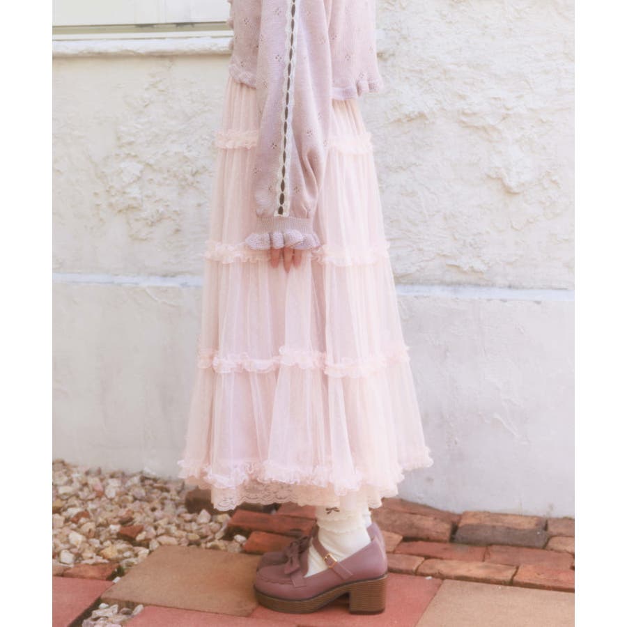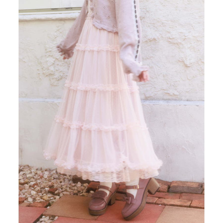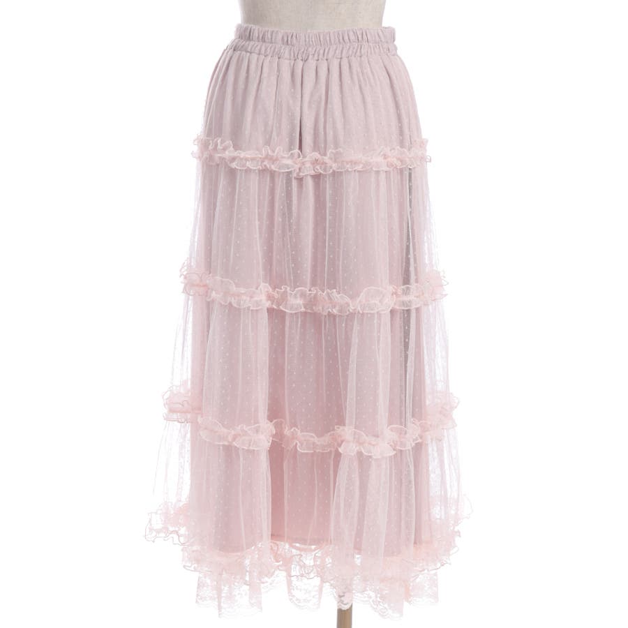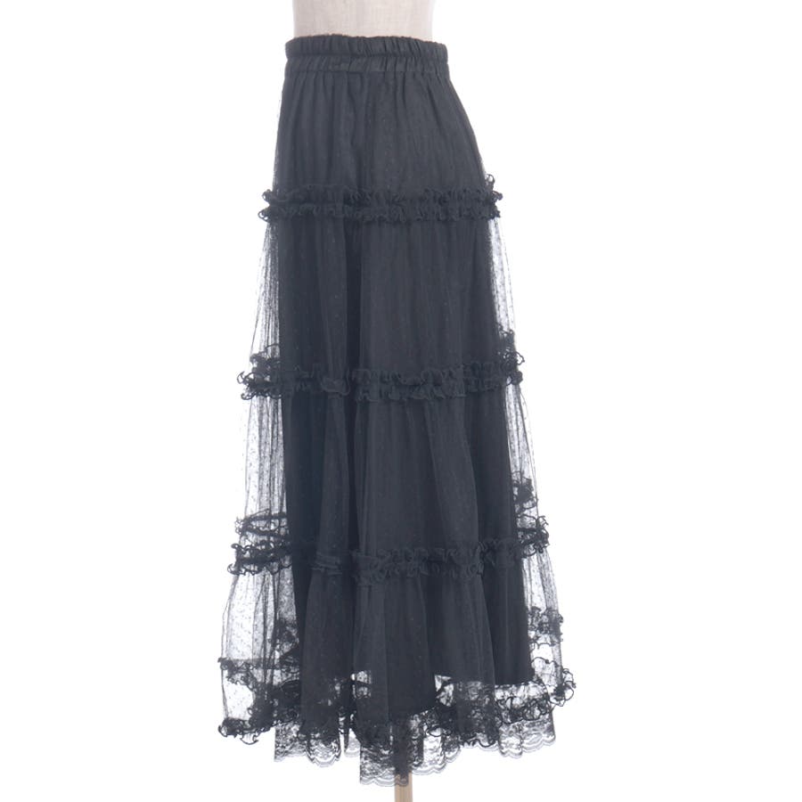 ドットチュールとレースを使用したフワフワのボリューム感が可愛いロングスカートです。