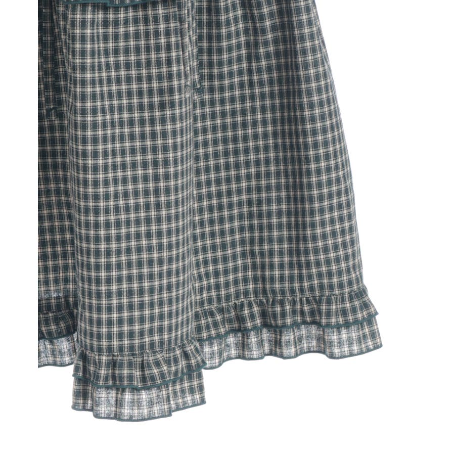 ナチュラルなチェック柄を分量たっぷりに取り、裾にかけてAラインのシルエットを演出します。