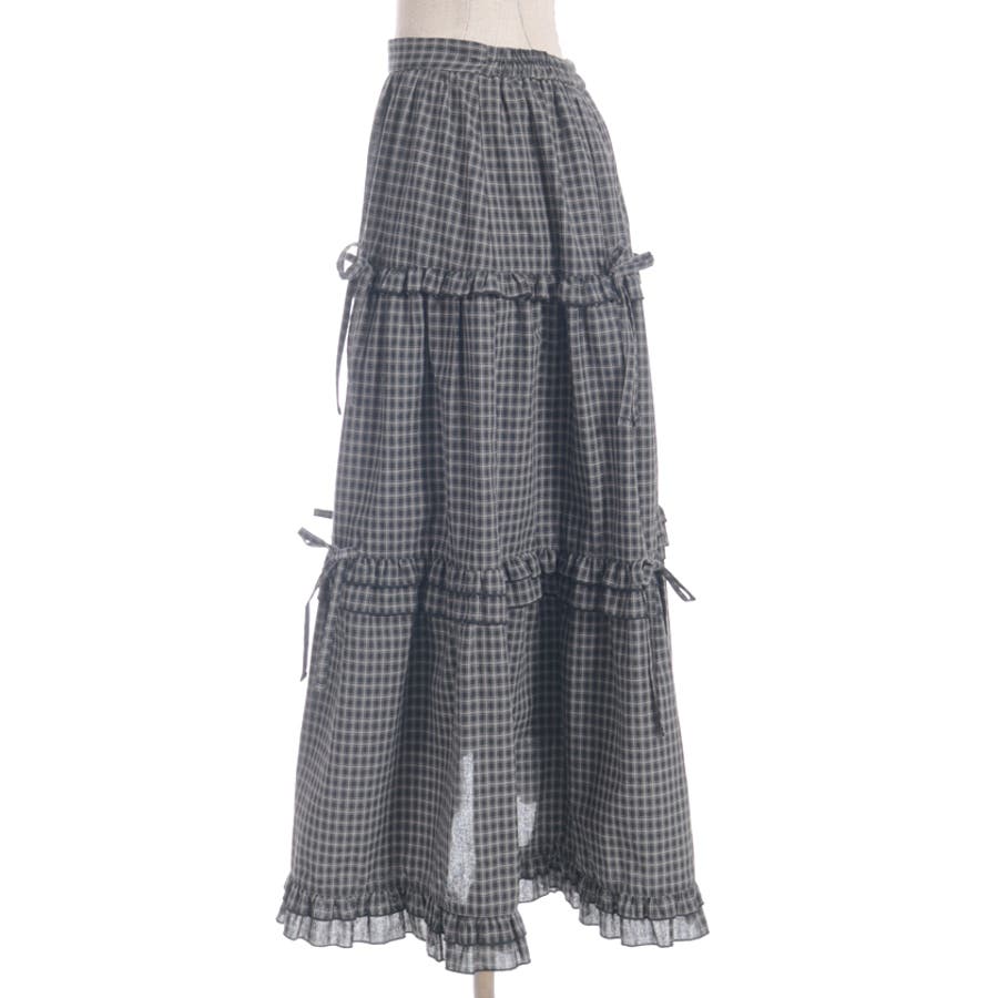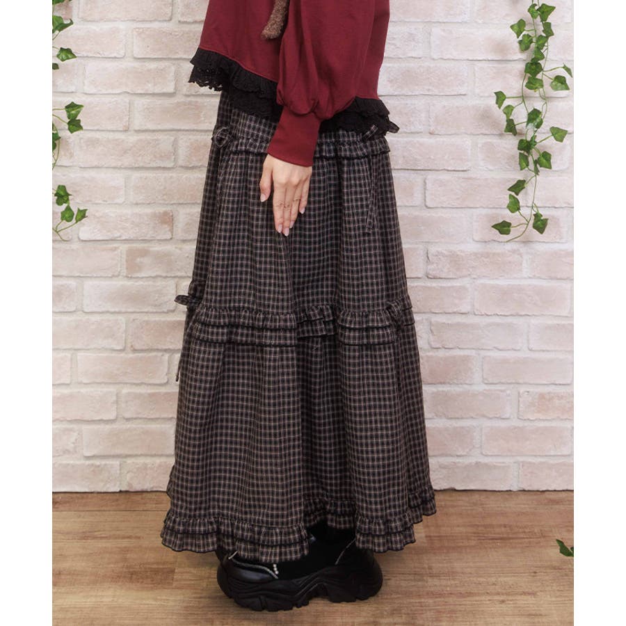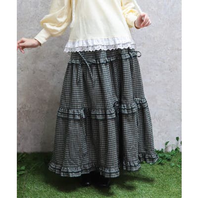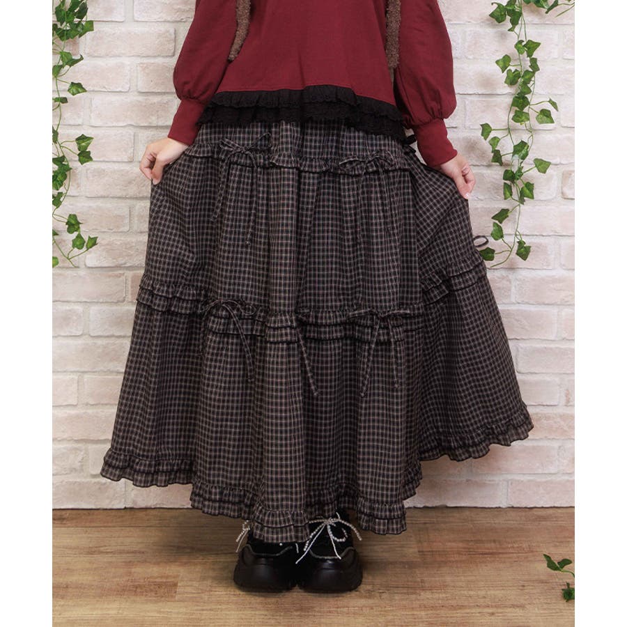 ティアードフリル×リボンがガーリーなロング丈のスカート。