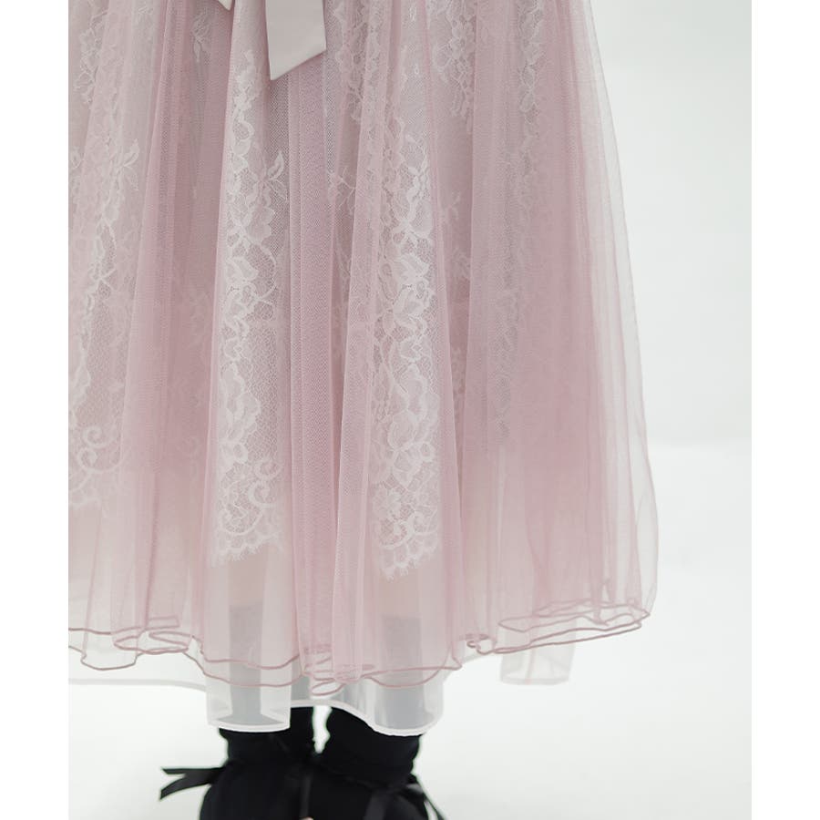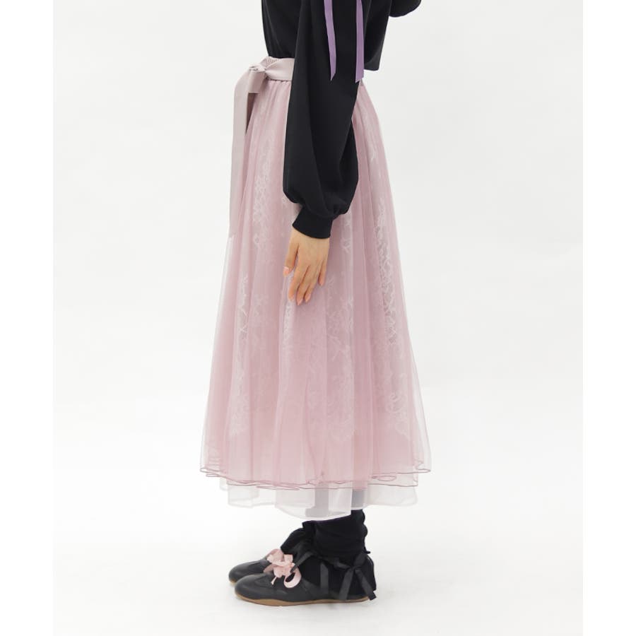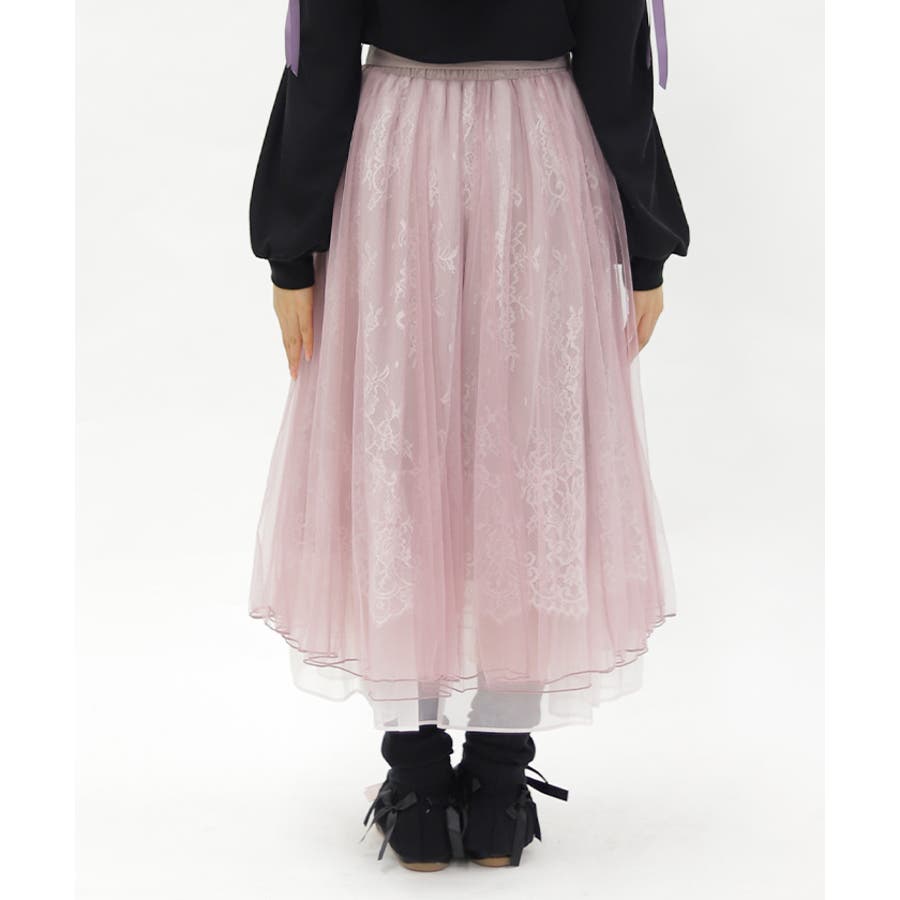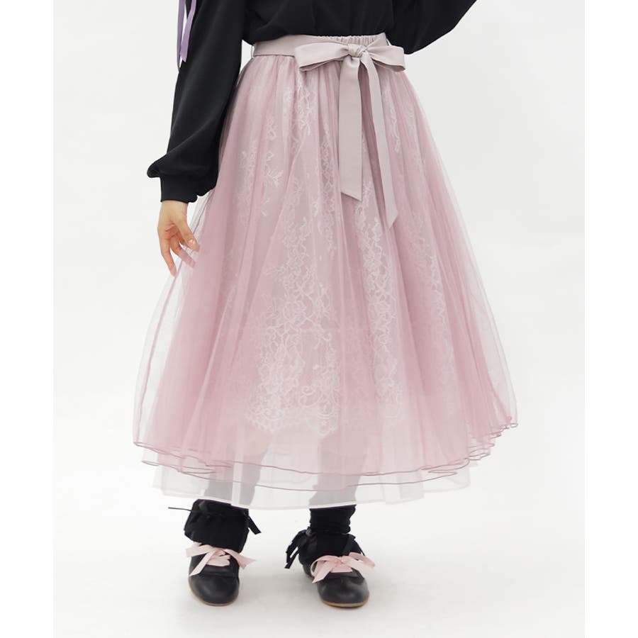 チュール×レースをたっぷり使用したロング丈のスカートです。