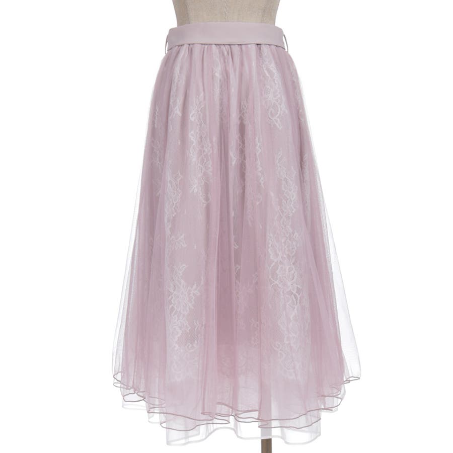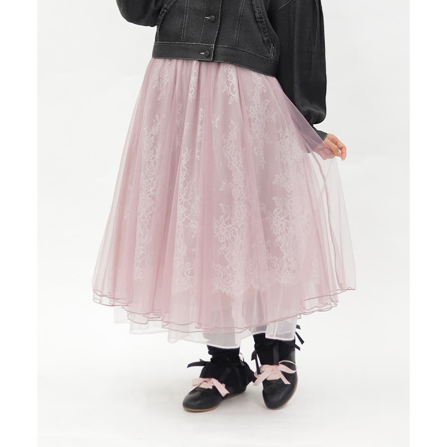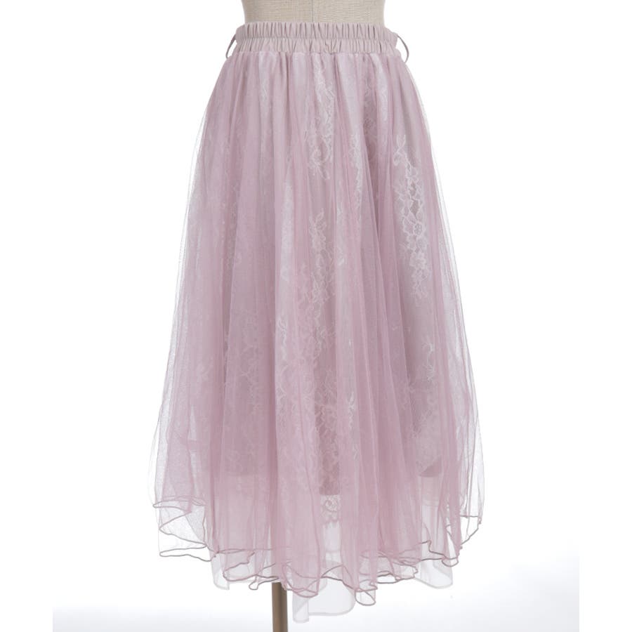 チュール×レースロングスカート