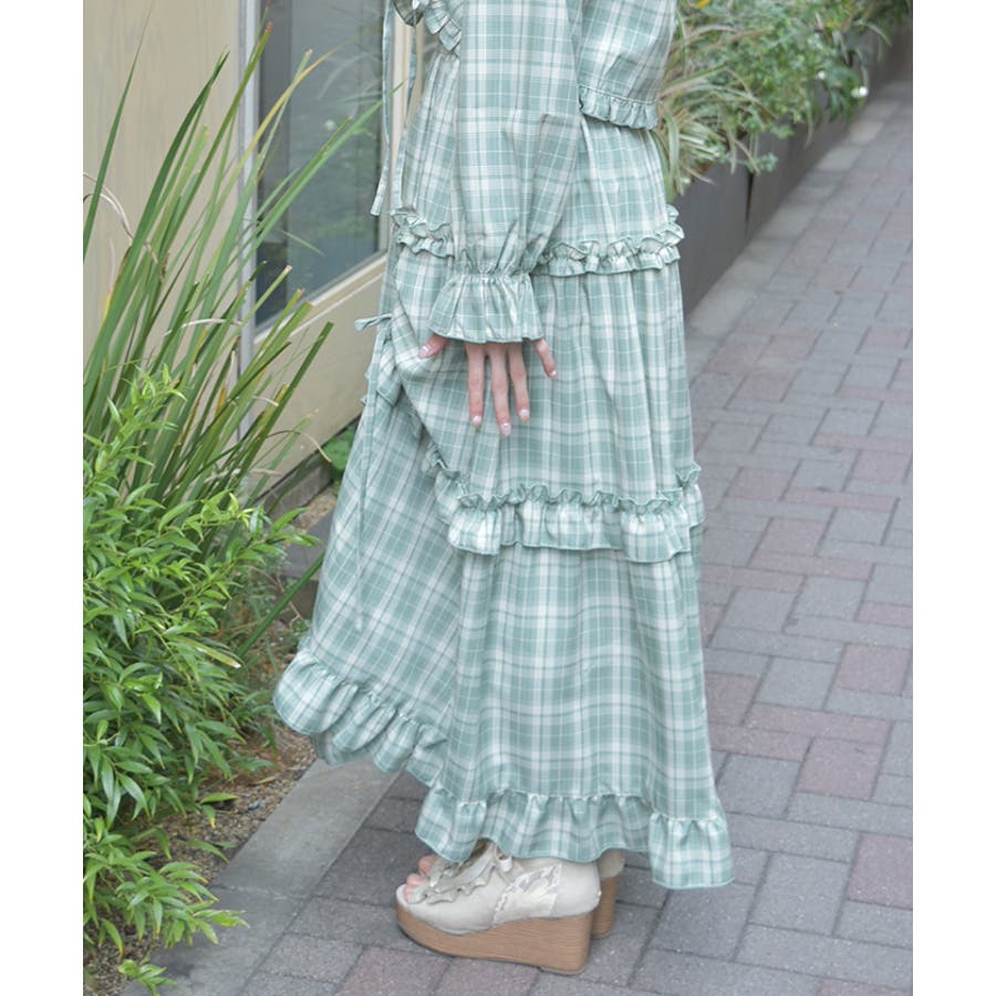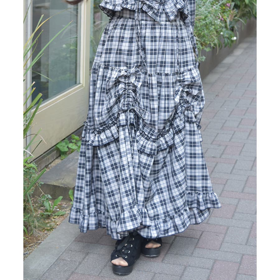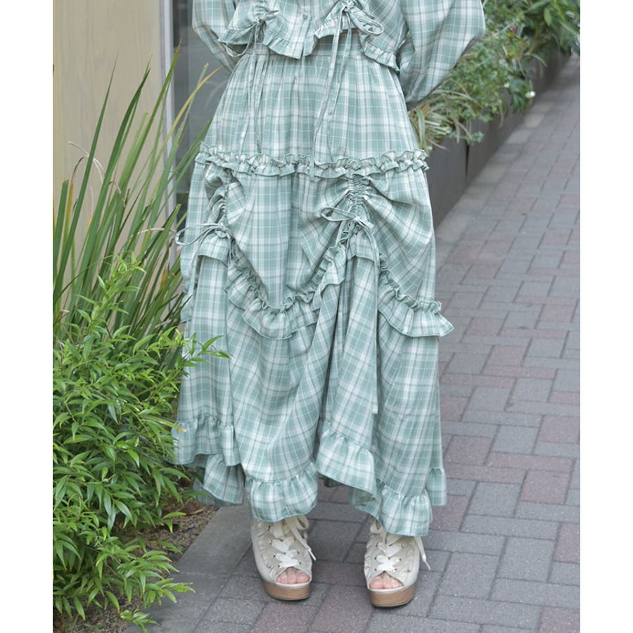 カジュアルにもフェミニンにも見せるチェック柄の配色感がポイントになっています。