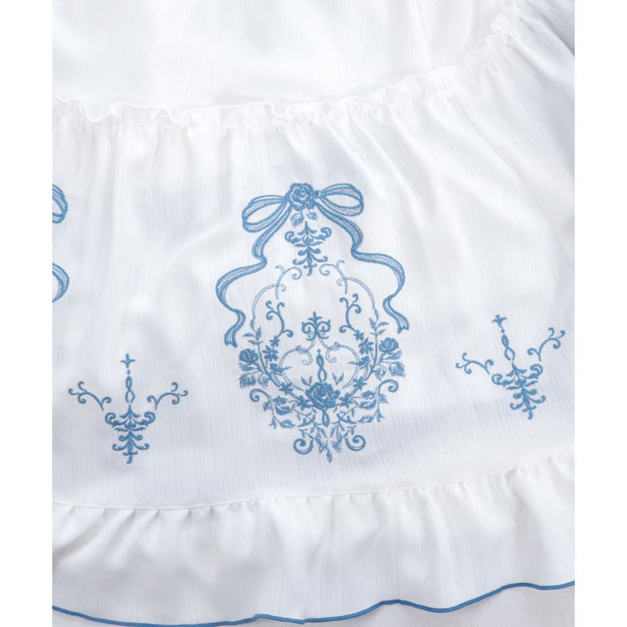 アンティークモチーフの刺繍が裾に一周ぐるっと施されたデザイン。