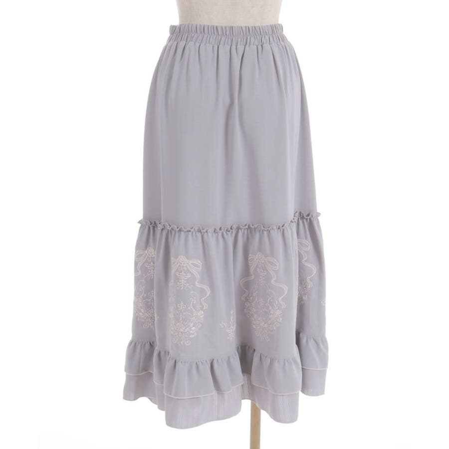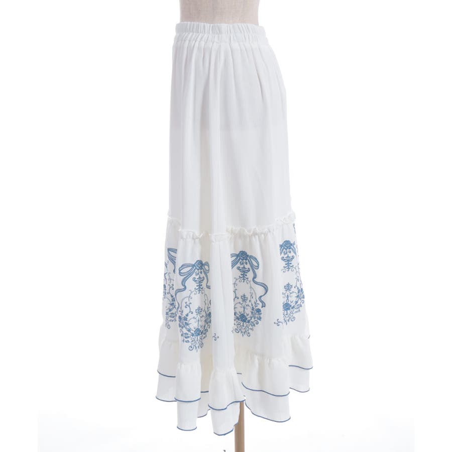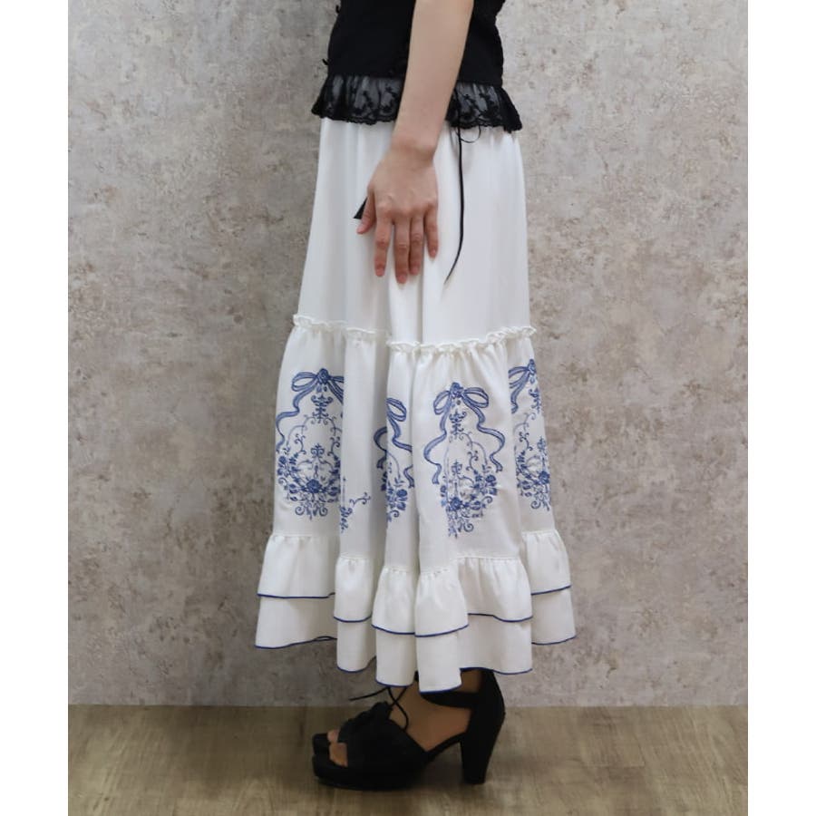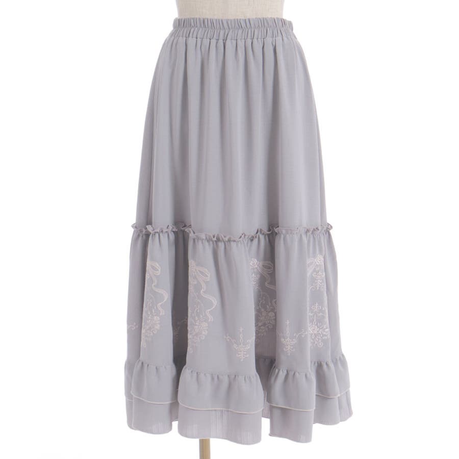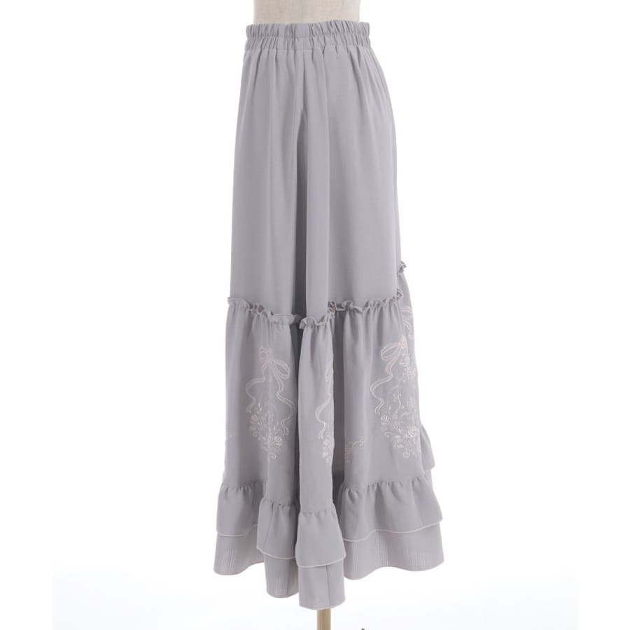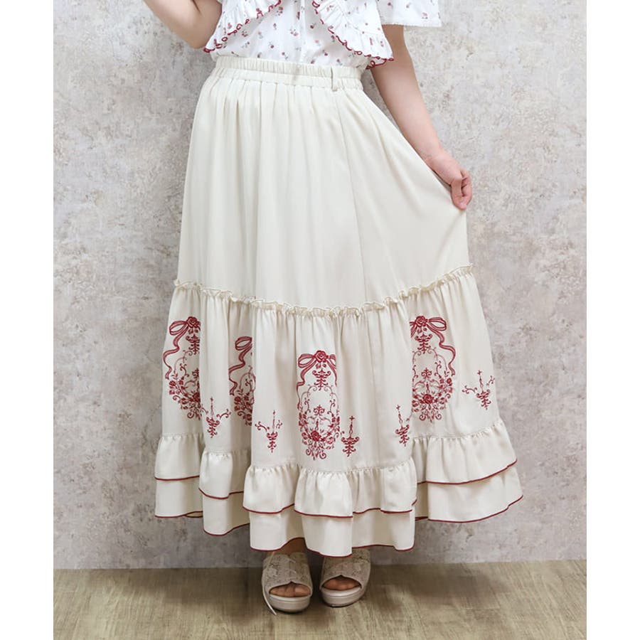 アンティーク調なフラワーモチーフ×リボンの刺繍が華やかで目を惹くロングスカートです。