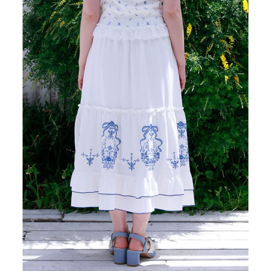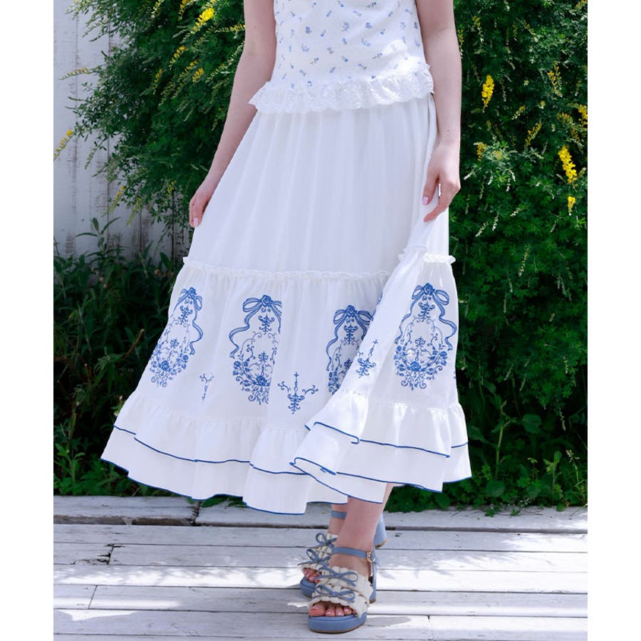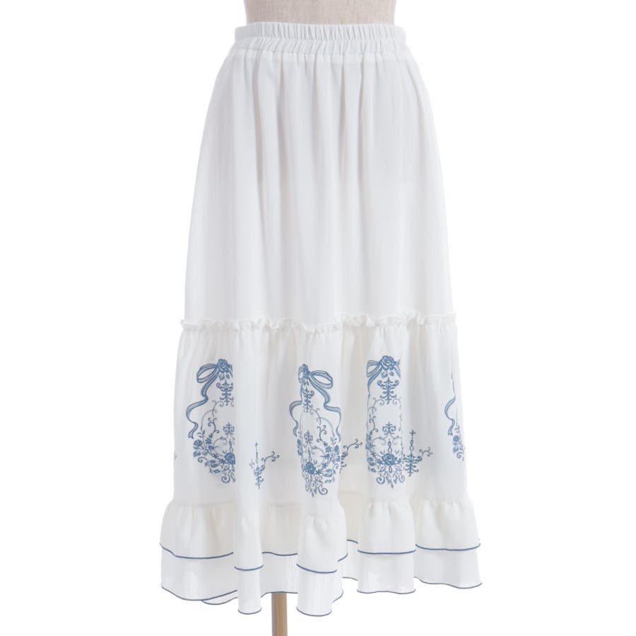リボン×ブーケ刺繍スカート