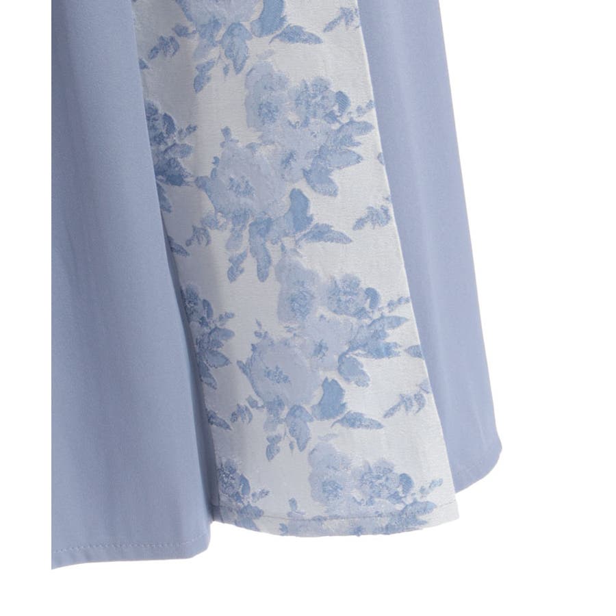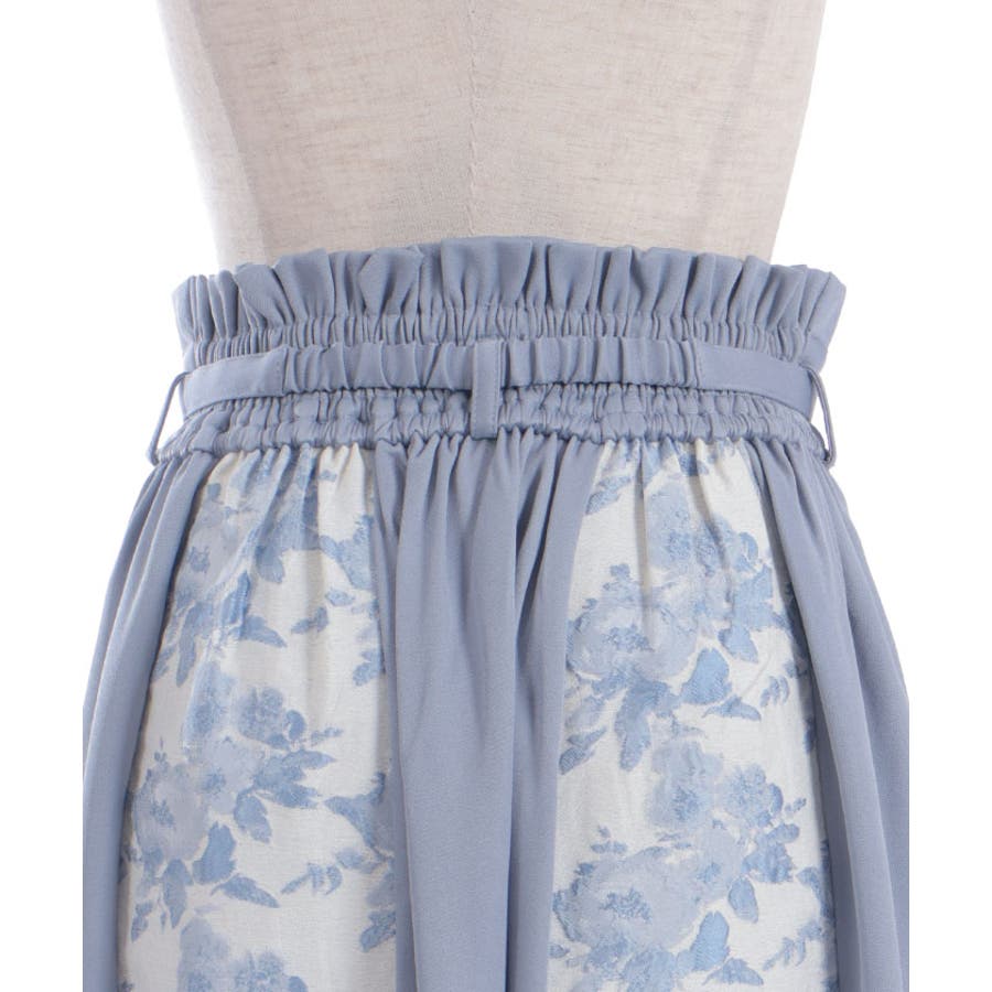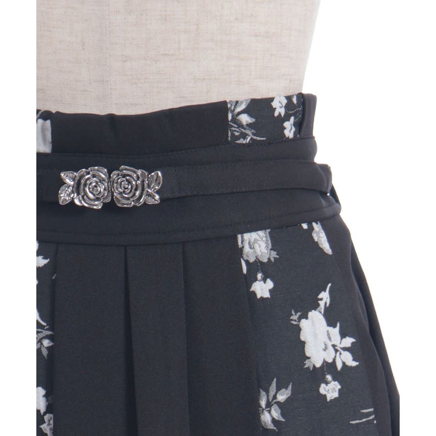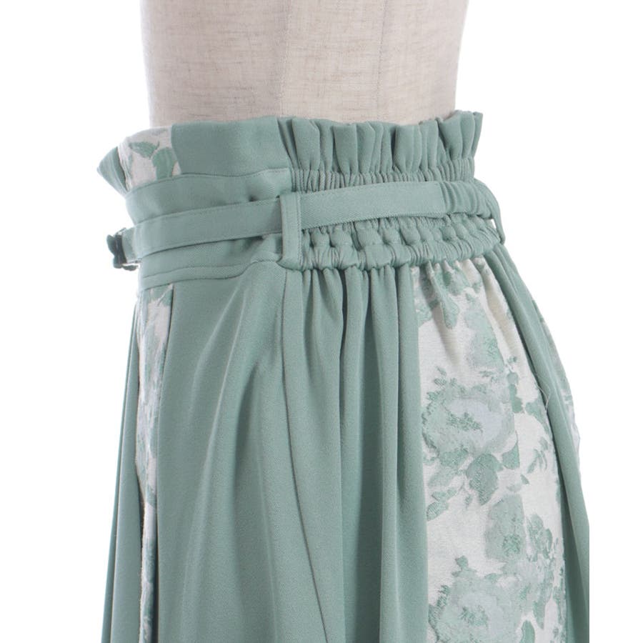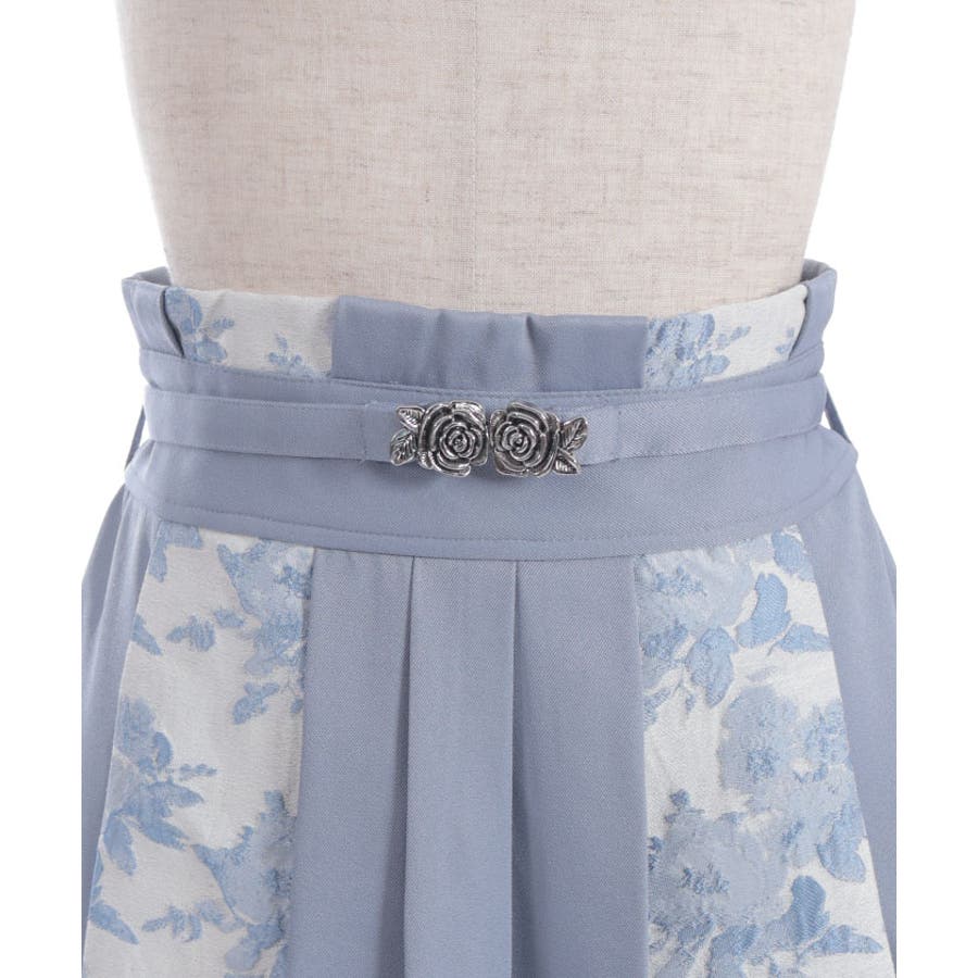 ジャカード素材に施されたやわらかいフラワー模様と、ローズベルトが目を惹くメリハリのあるシルエットに仕上がっています。ベルトは取り外しが可能です。