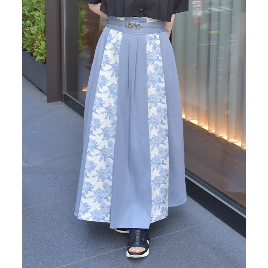 クラシカルなローズ柄が印象的なロング丈スカートは、上品さと存在感を兼ね備えた大人モードを叶えるアイテム