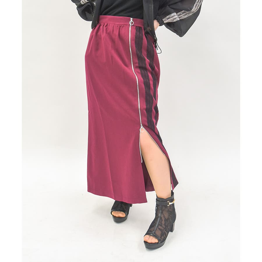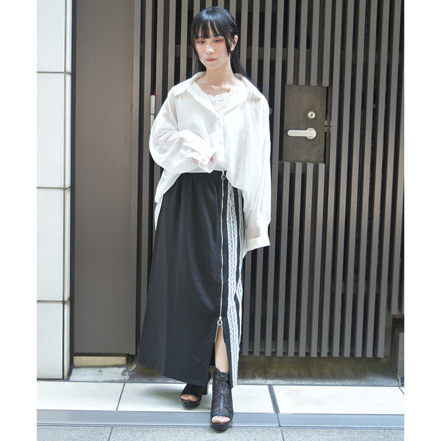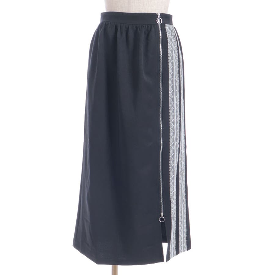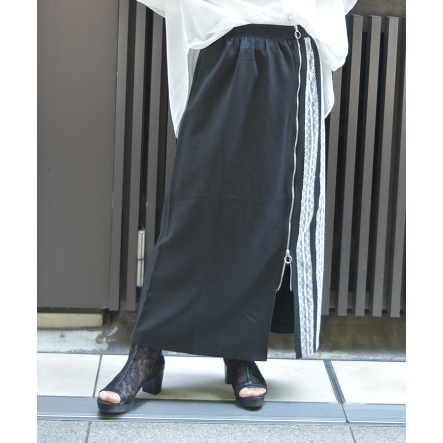 サイドに配した繊細なレースとジップ使いがクールな印象。すっきりとしたIラインシルエットをつくりだします◎