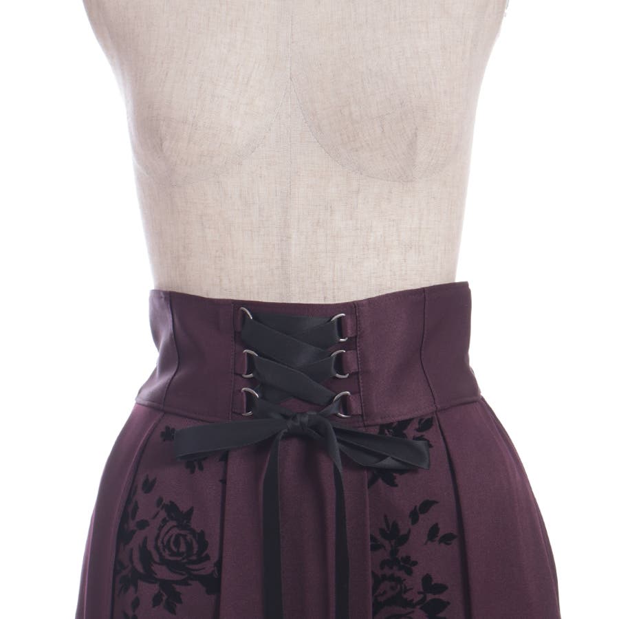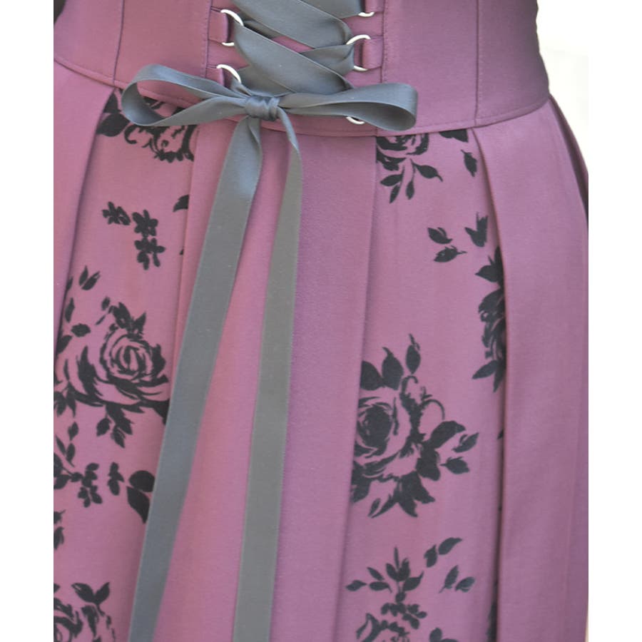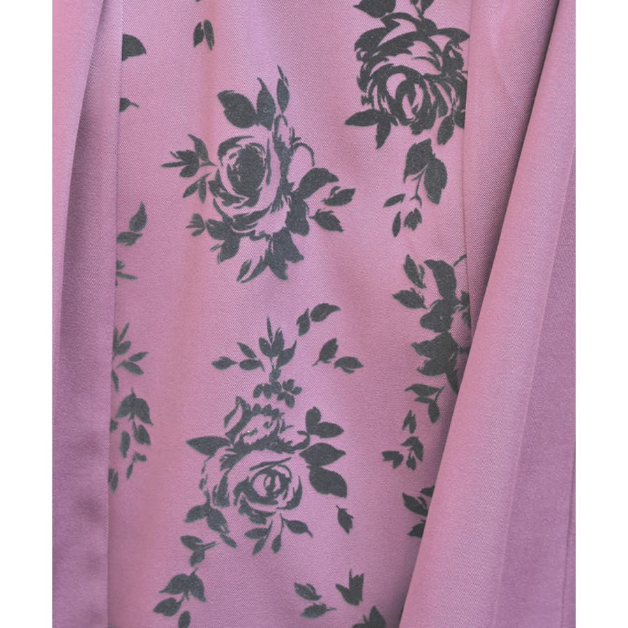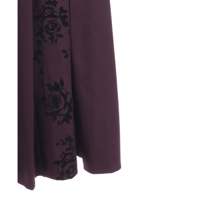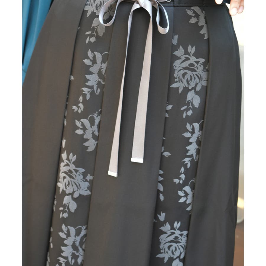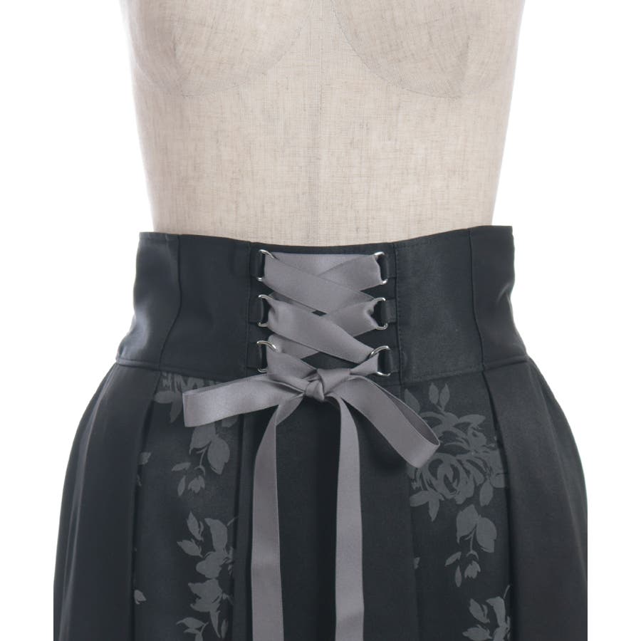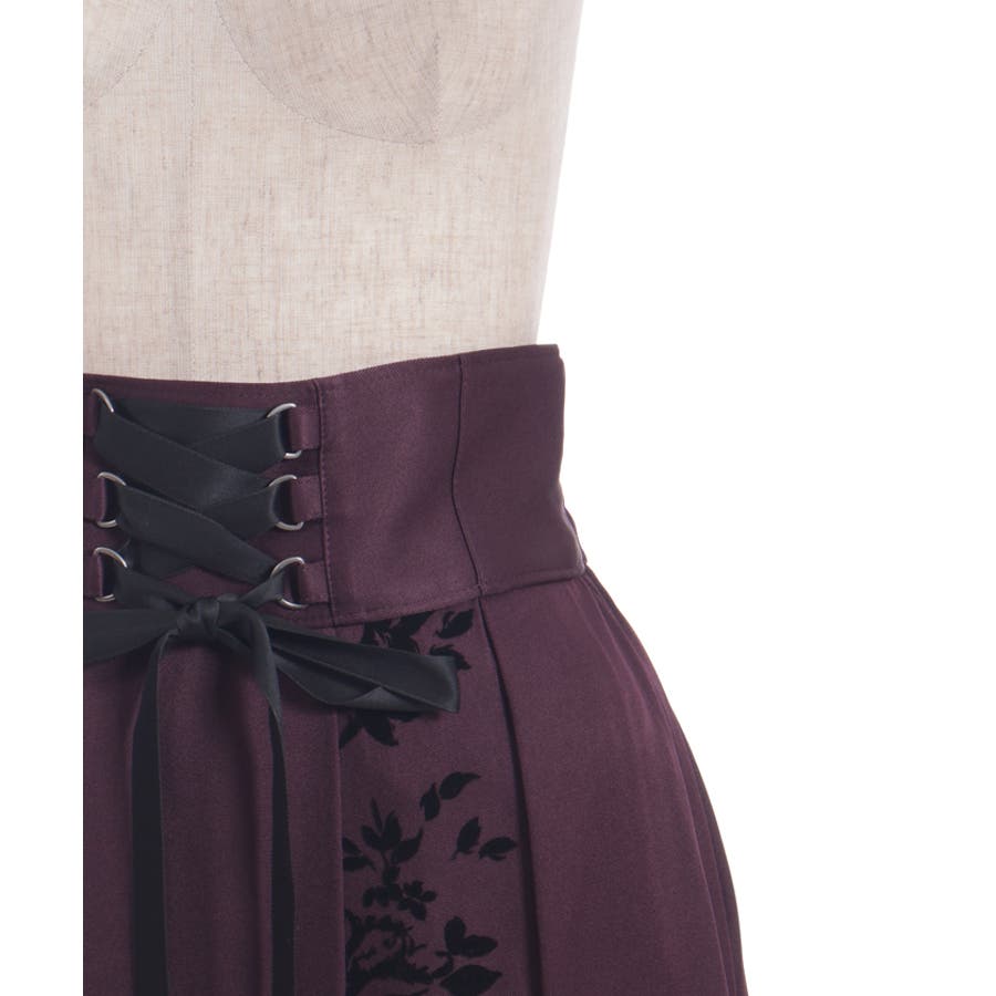 モード感とエレガンスを兼ね備えたロングスカート。上品なローズ柄をフロッキープリントで表現し、華やかさと奥行きをプラスしています。