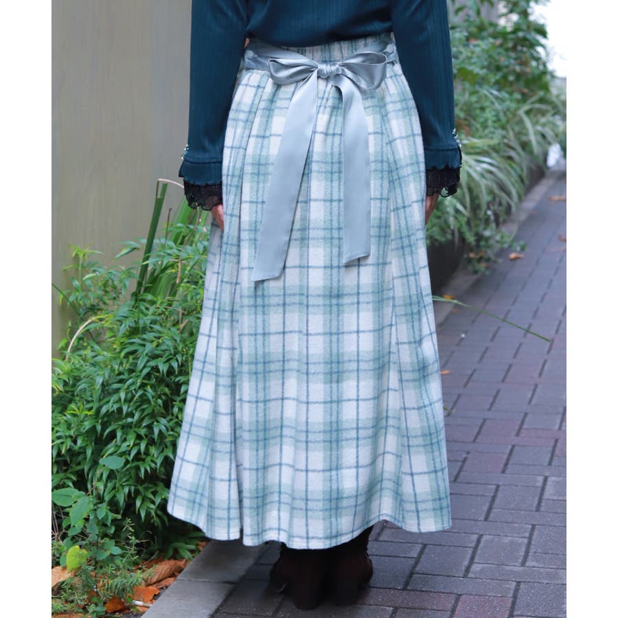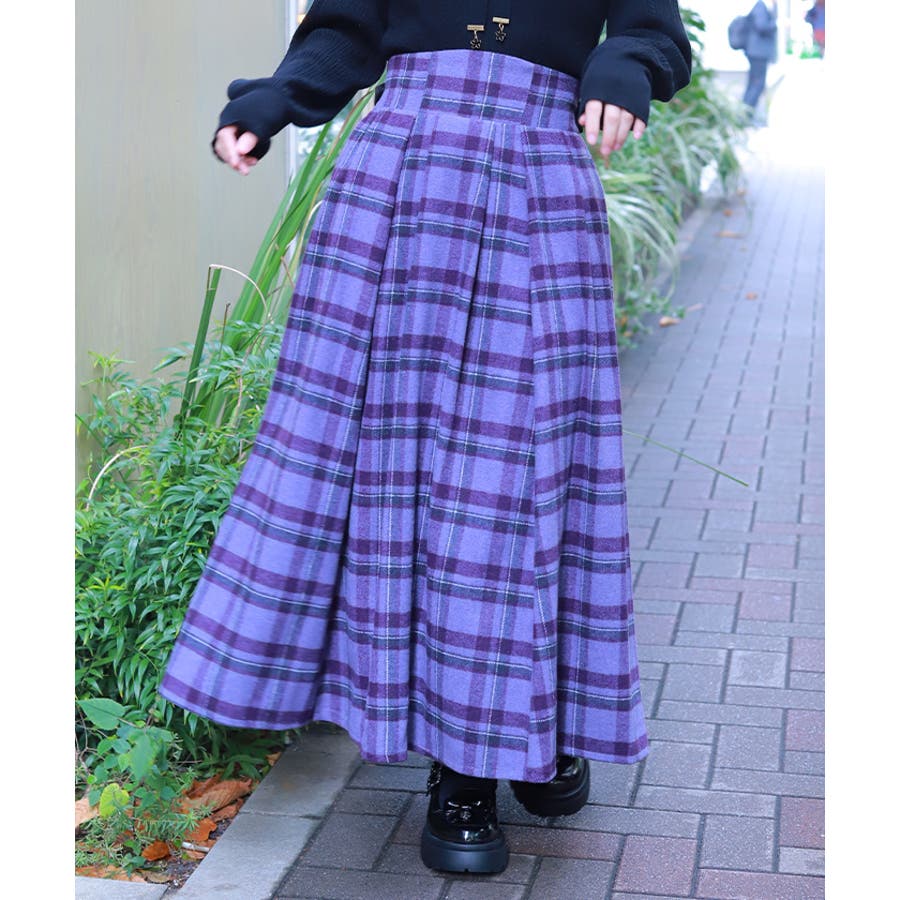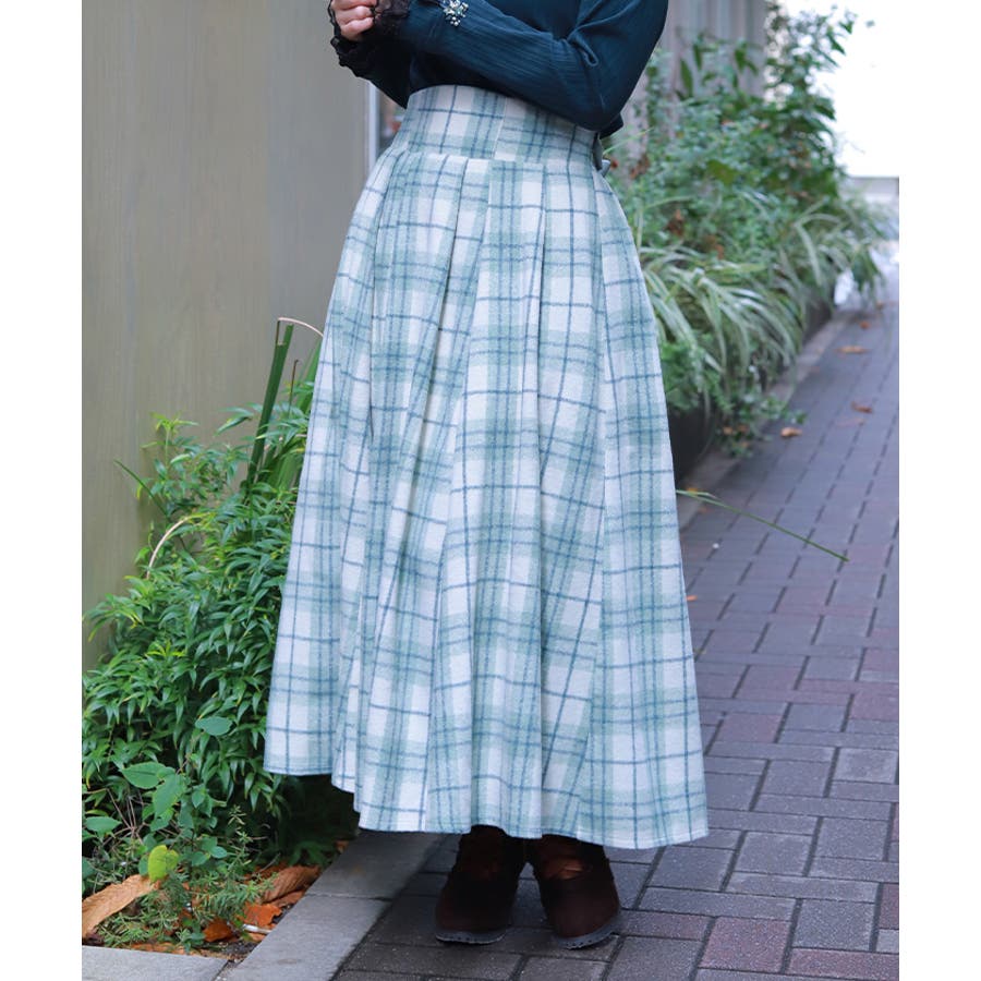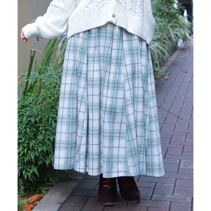 起毛チェック柄ロングスカート