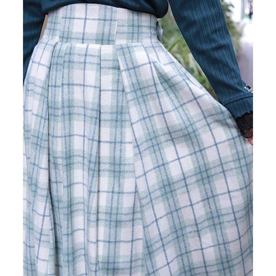 ふんわりとした起毛チェック素材があたたかみを感じさせる、季節感たっぷりのスカート。