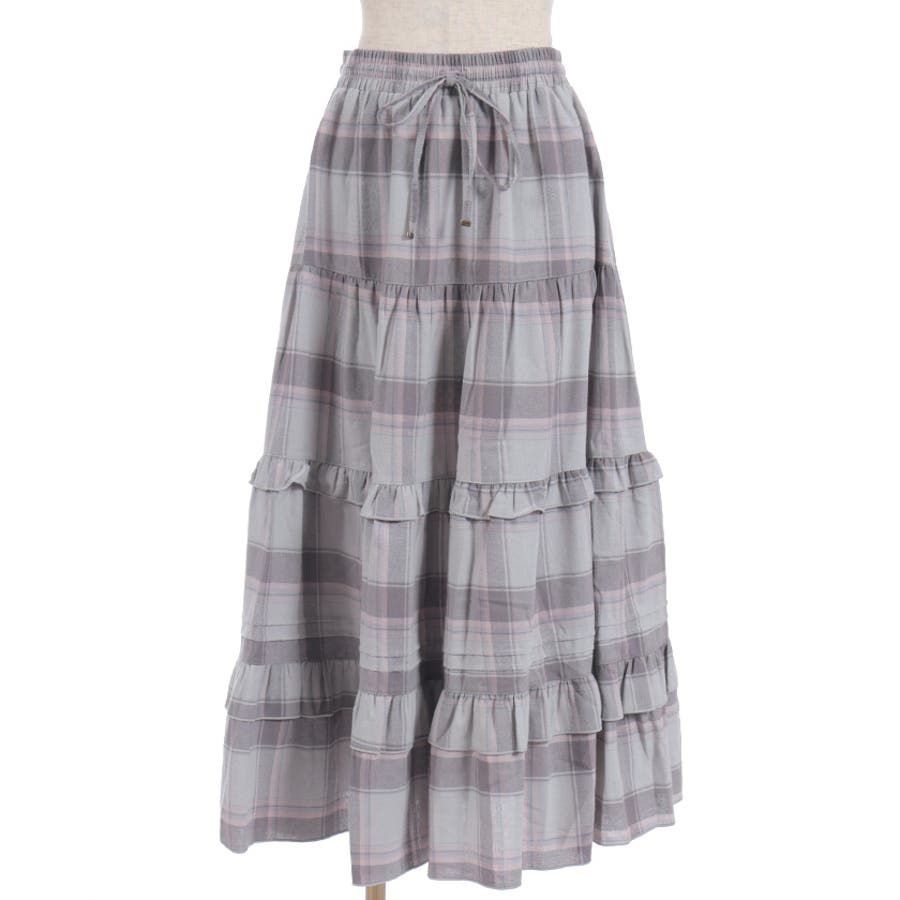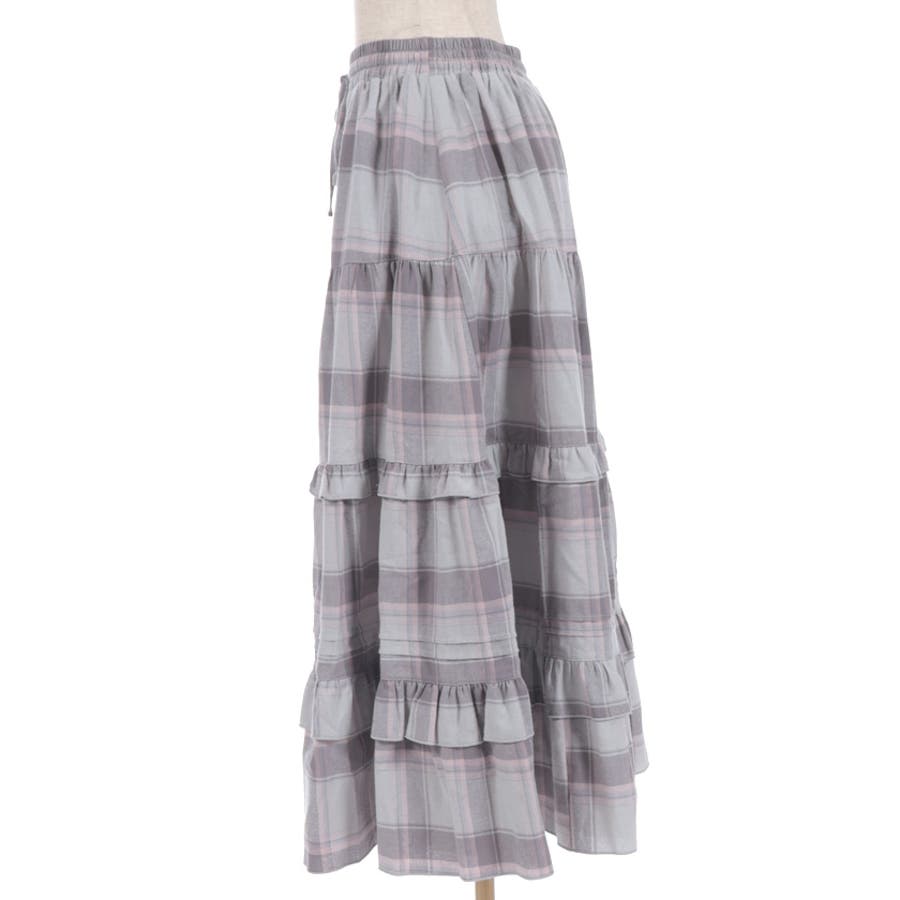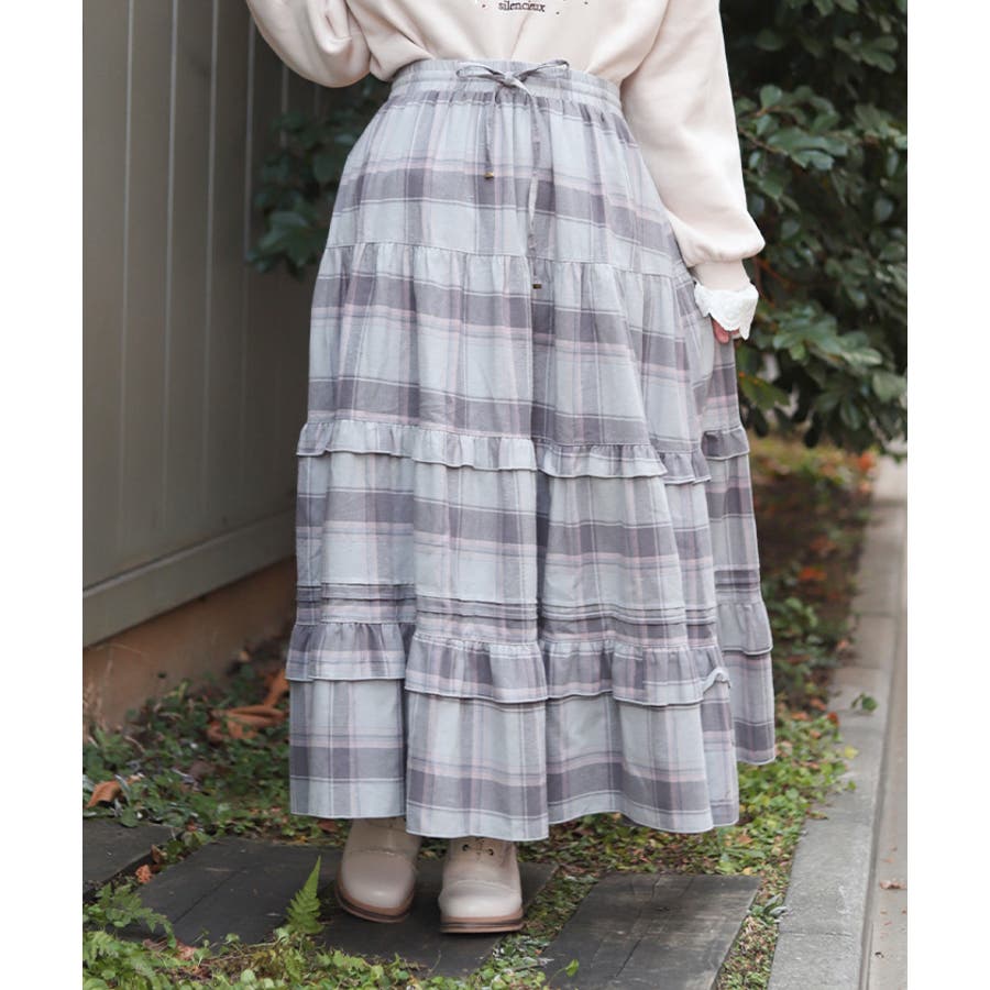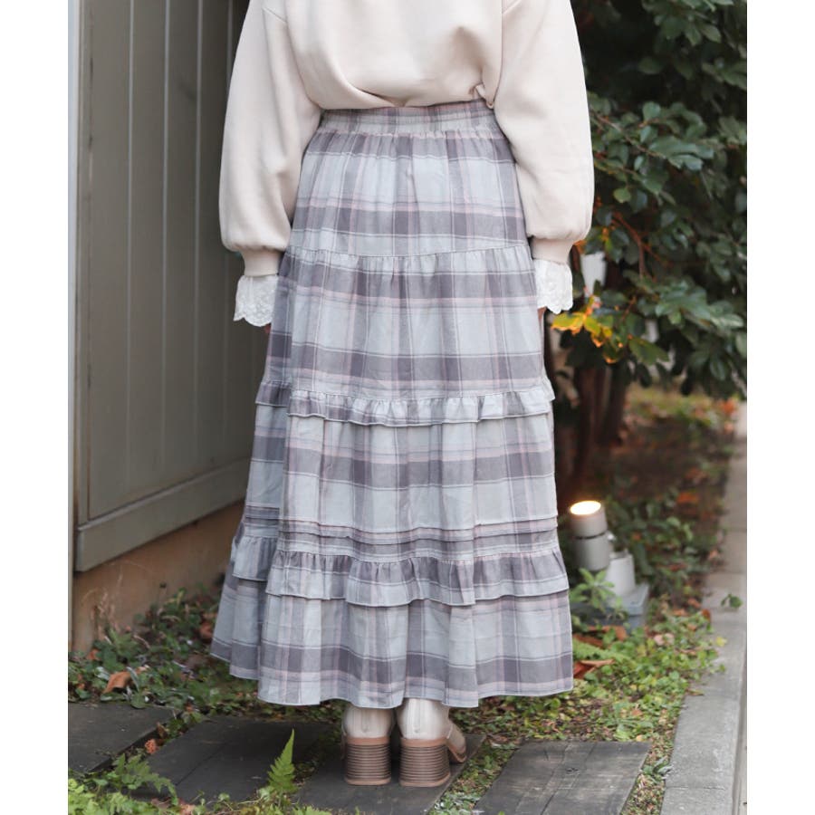 使い勝手の良いティアードデザインで、程よいボリューム感が魅力のチェック柄スカート。