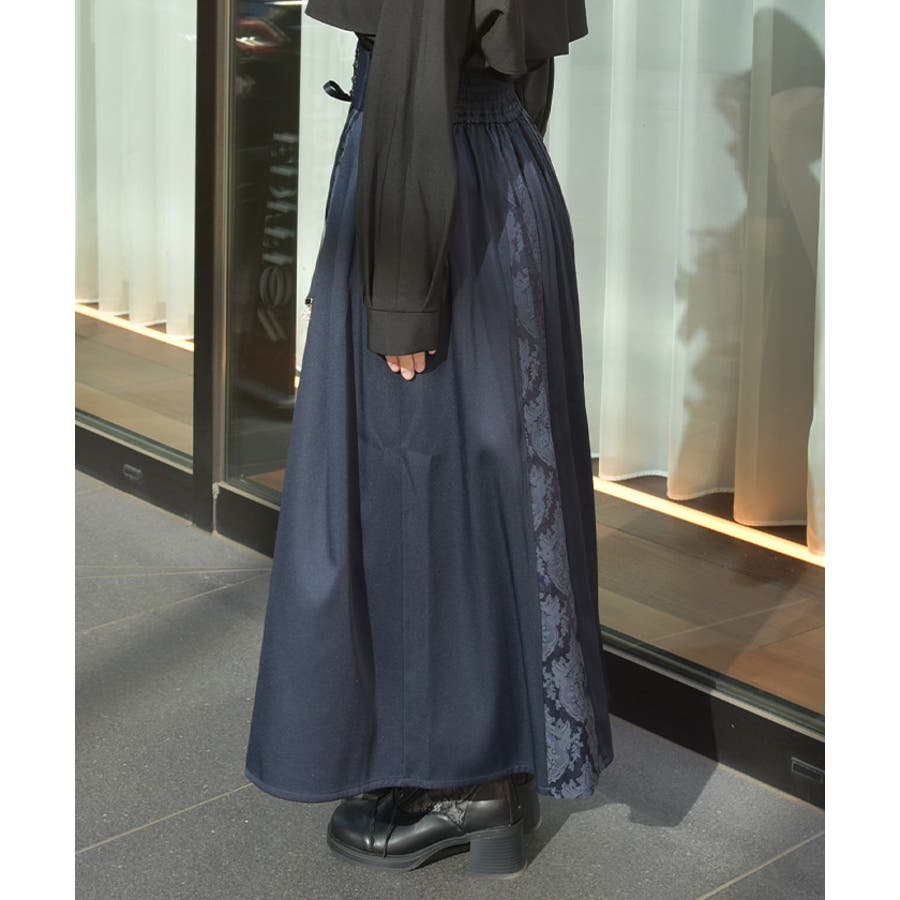 レースアップ×ジャガードスカート