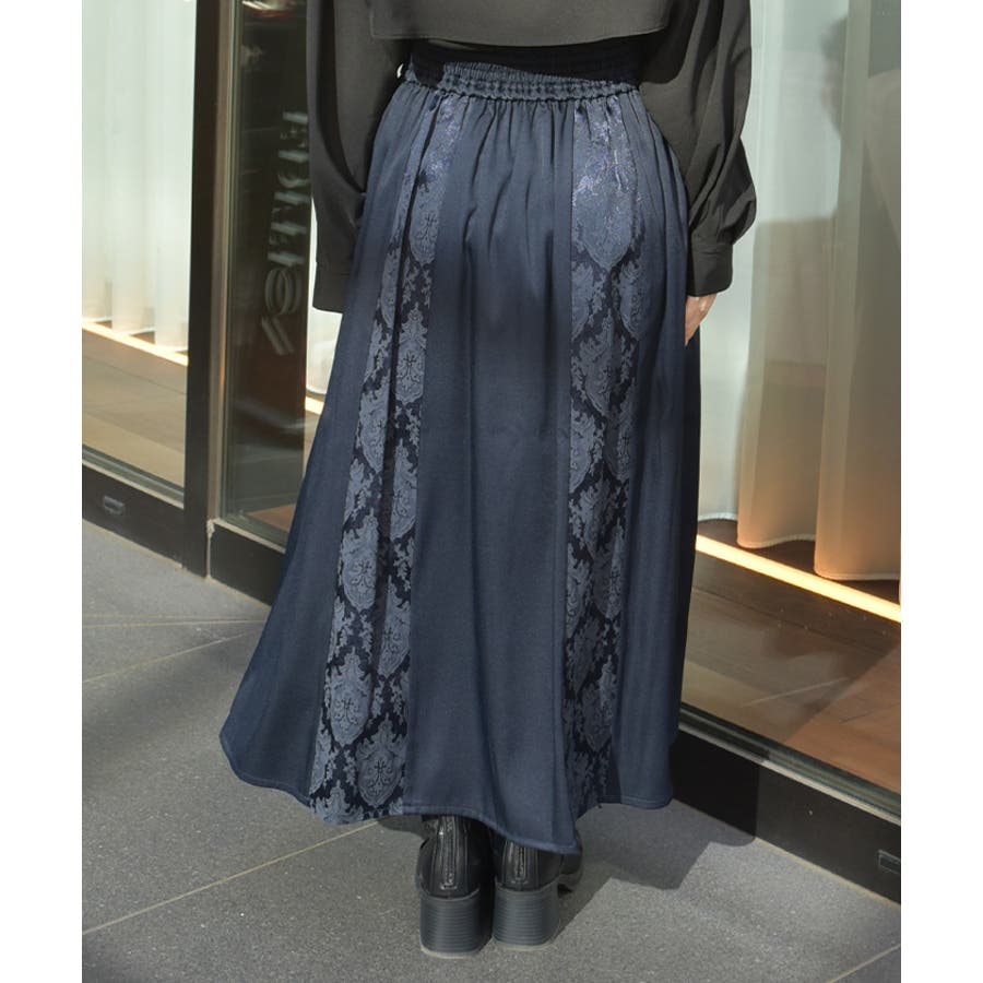 ジャカード切替がさりげない華やぎを添え、落ち着いた印象の中に奥行きを生み出します。ウエストラインはレースアップでポイントを作りつつ、シルエットをきれいに見せてくれる仕上がりです。