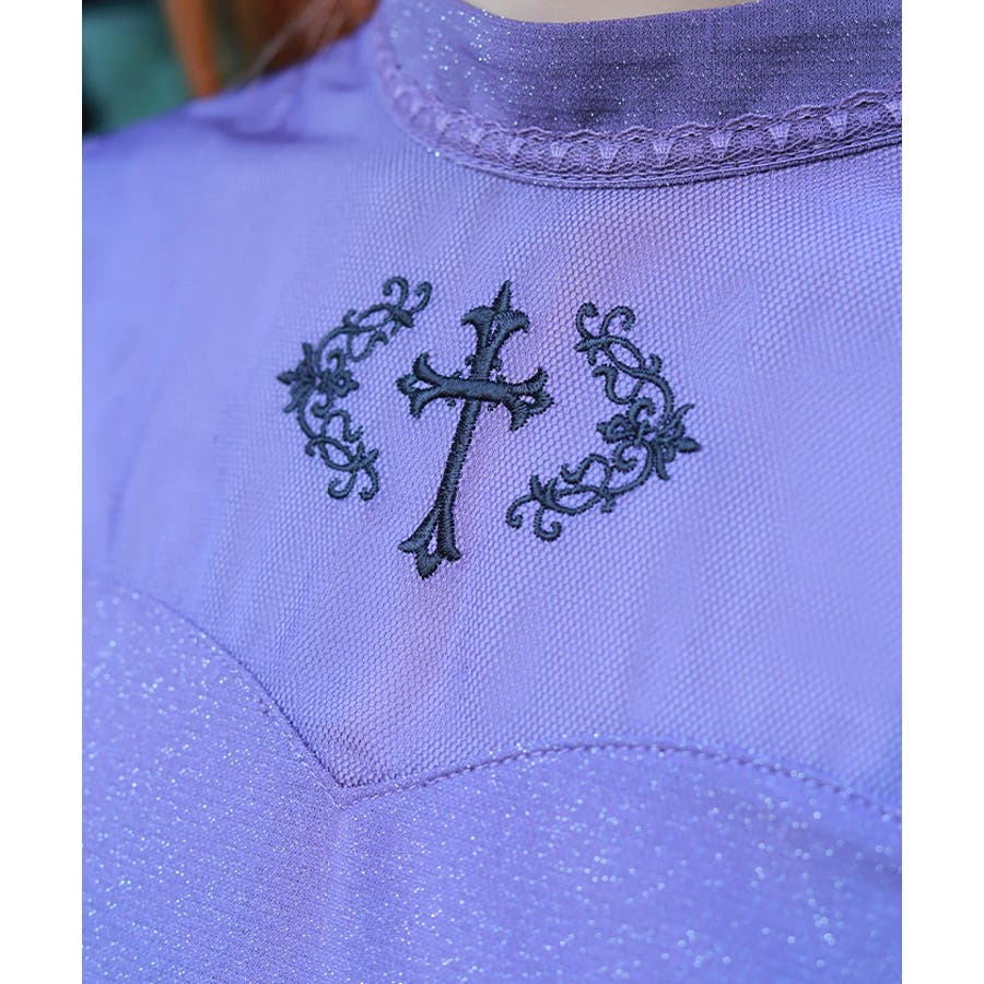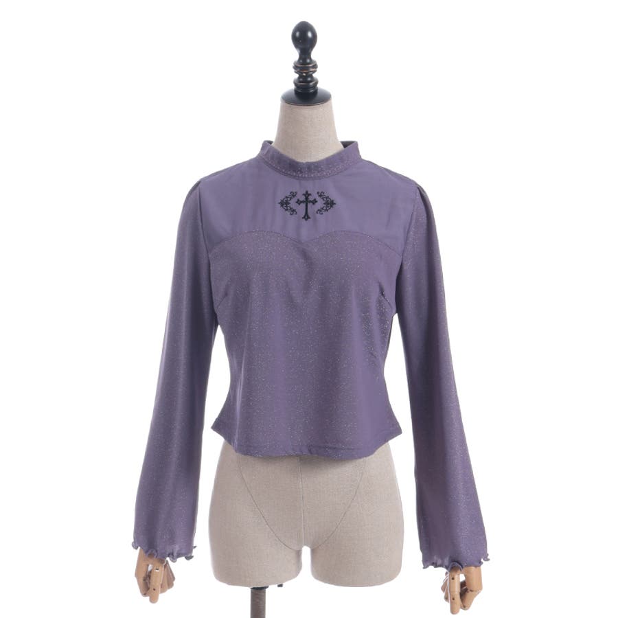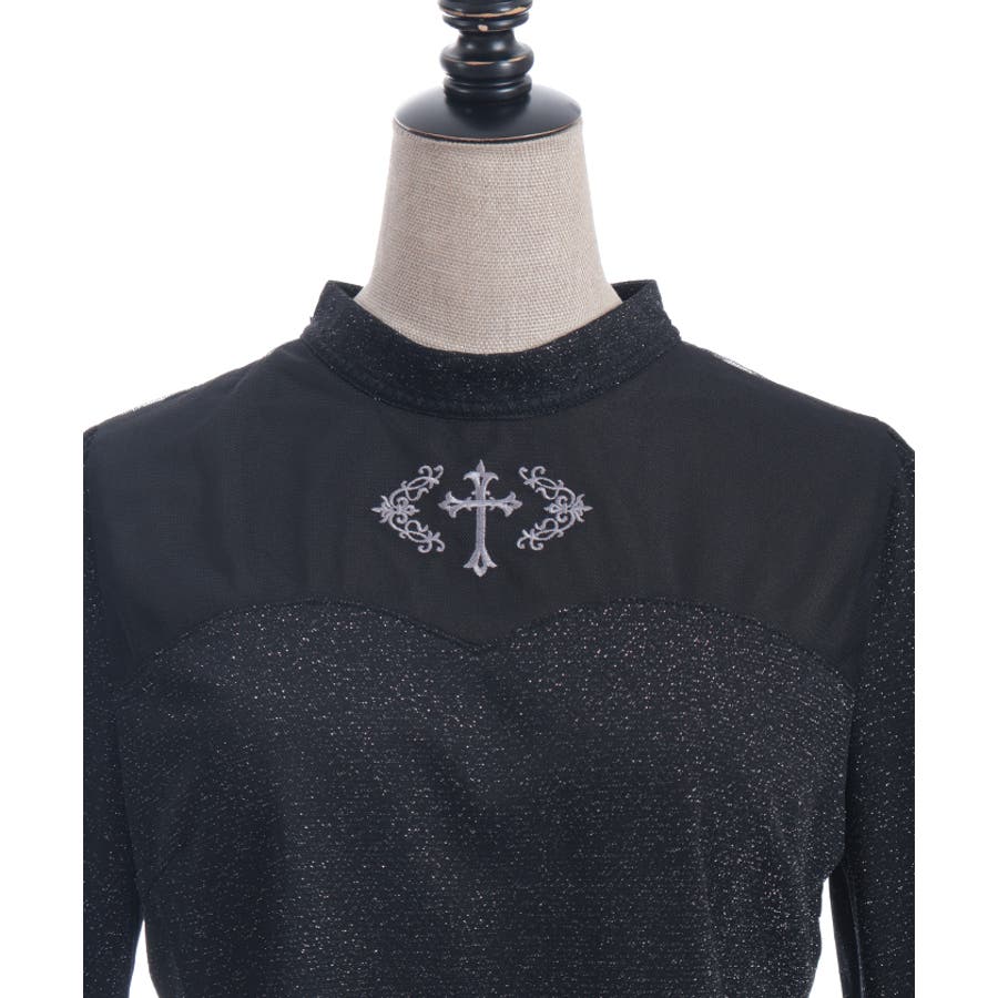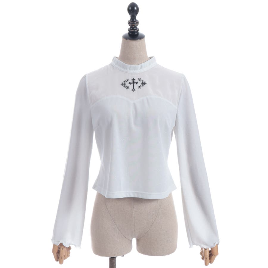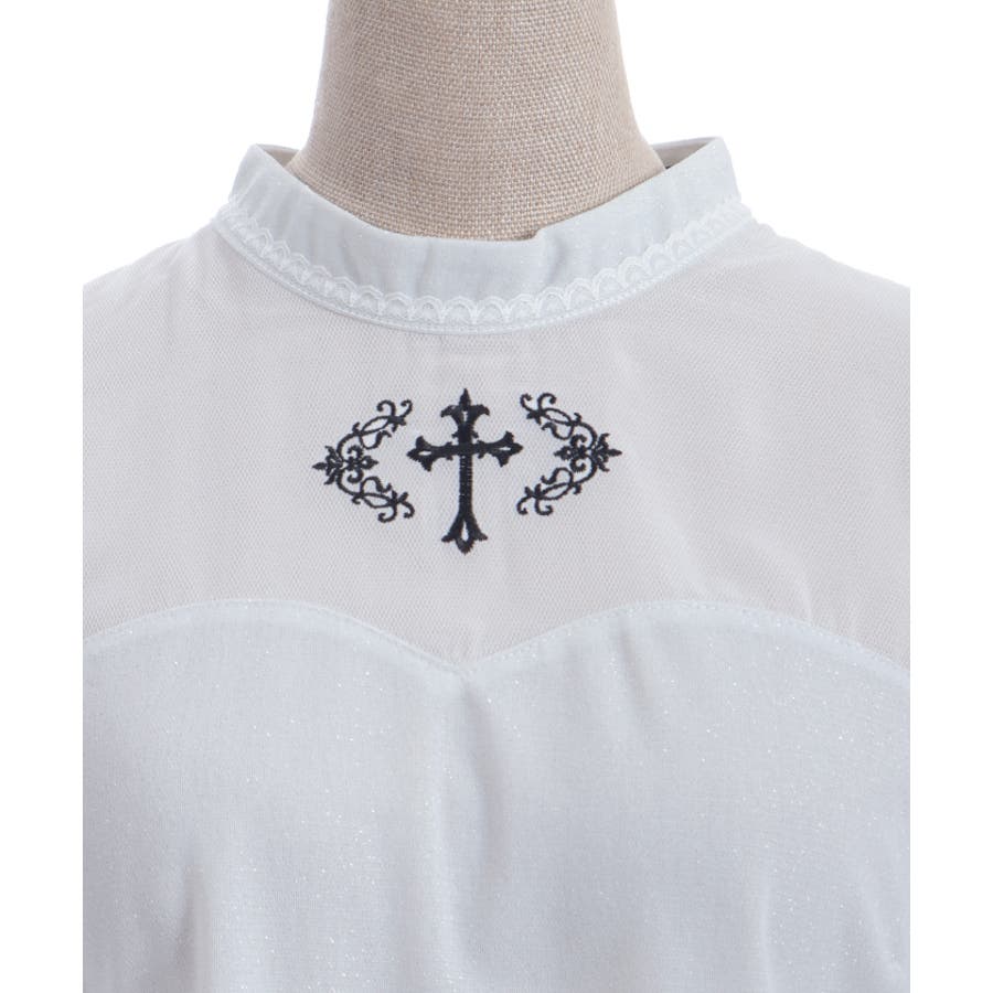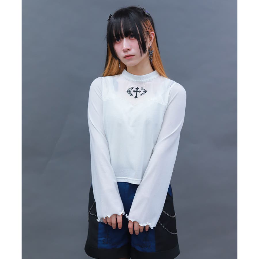 胸元にあしらったクロス刺繍がコーデのアクセントに。