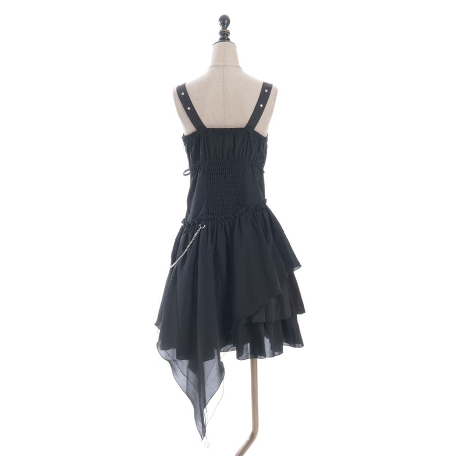 アシンメトリーでイレヘムなデザイン性の高いワンピース。