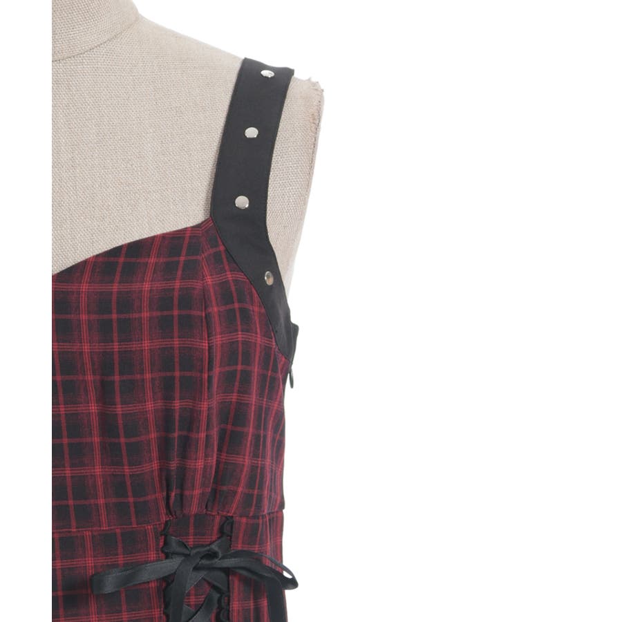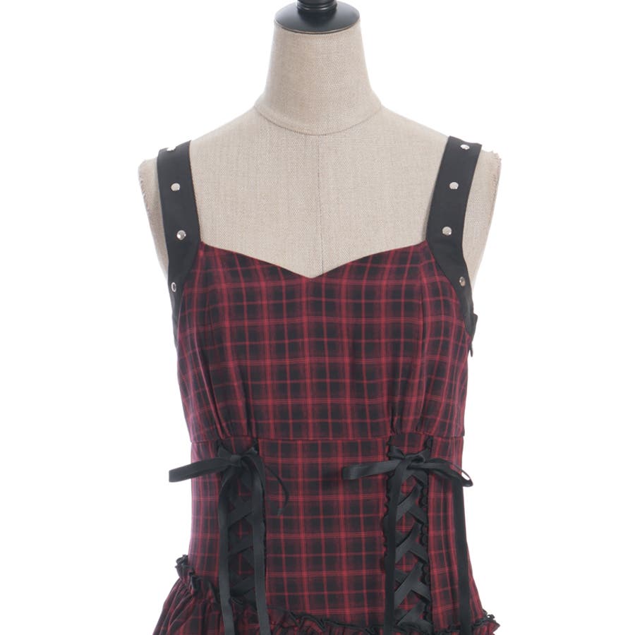肩ヒモのスタッズ使いやレースアップで可愛いだけじゃないアイテムになっています。