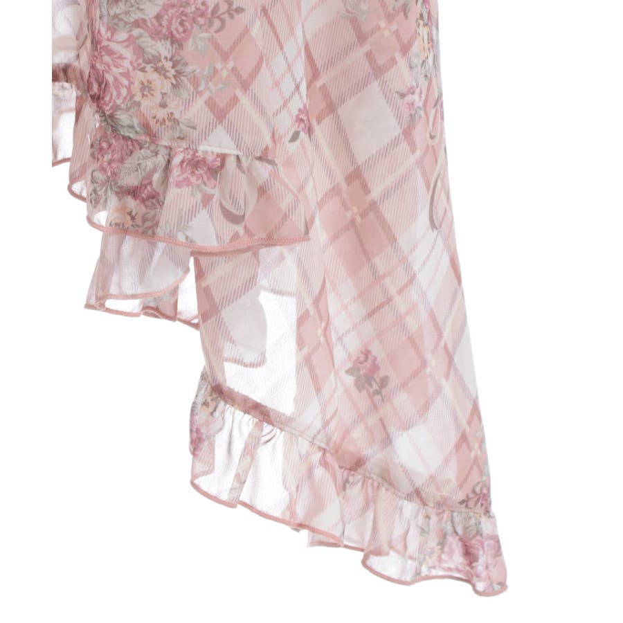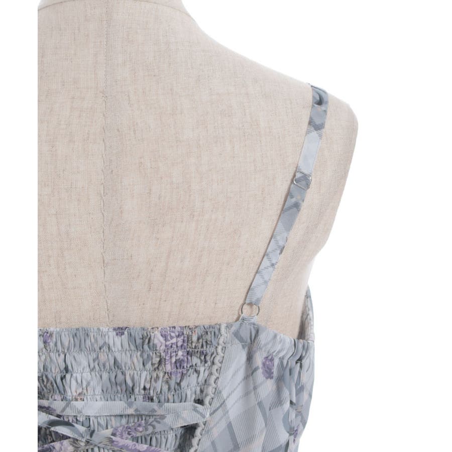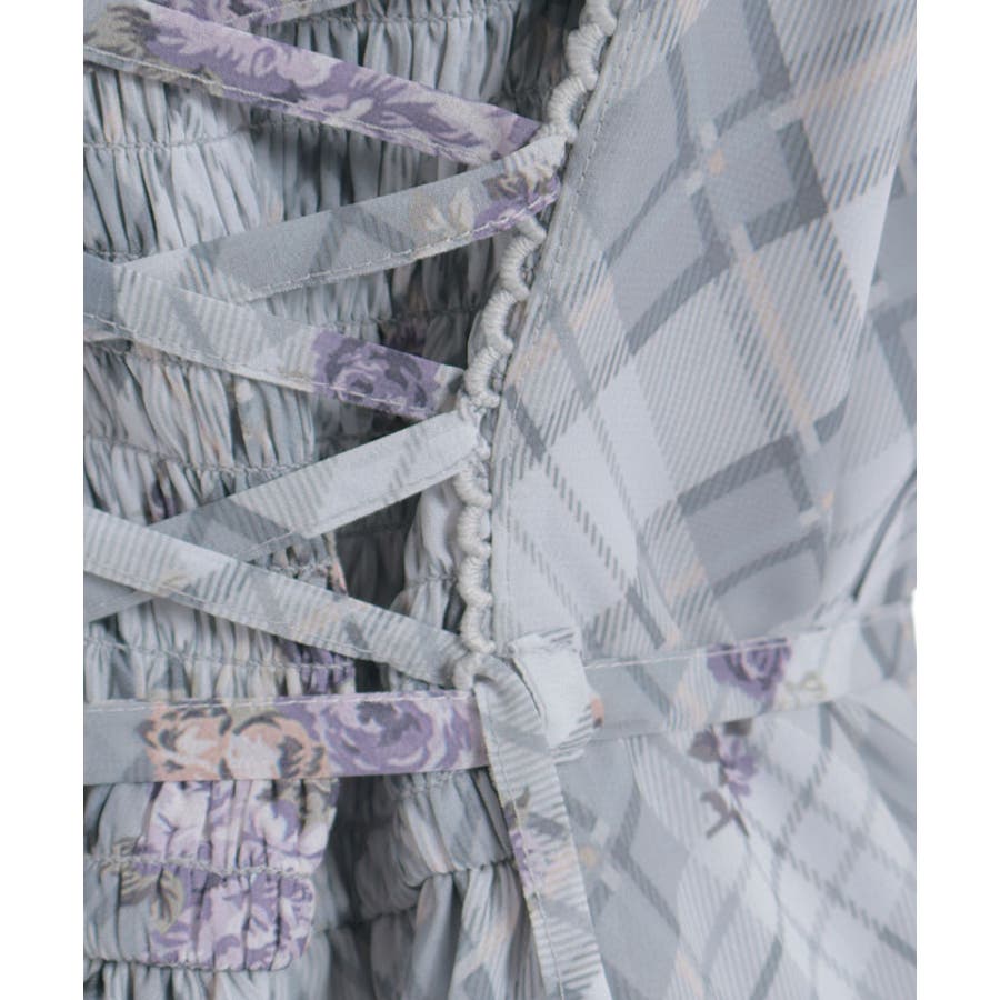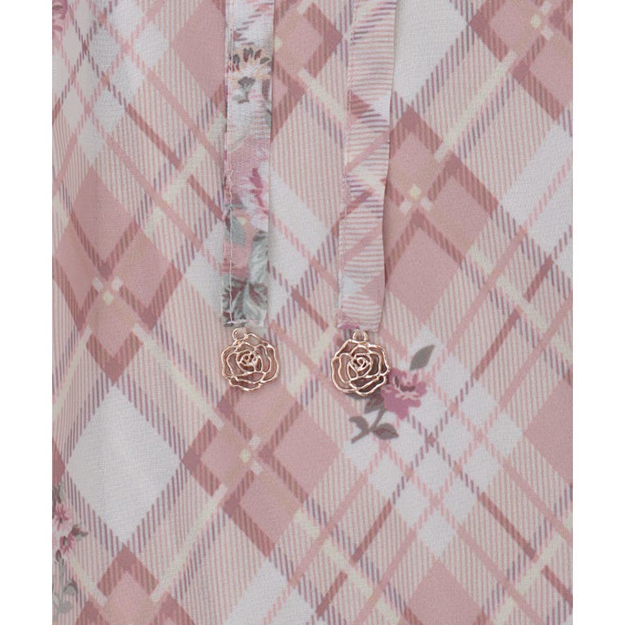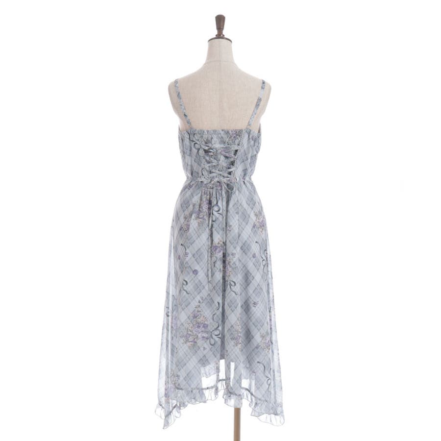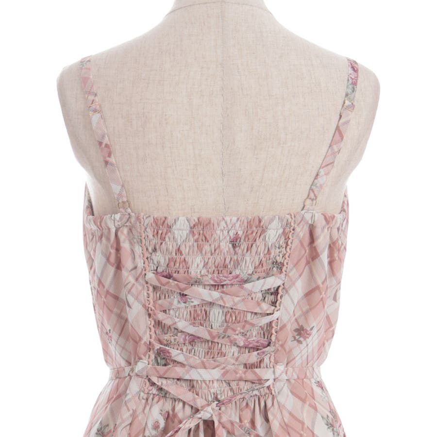 さらさらとしたシフォン素材を使用したキャミワンピースは、バイヤスチェックにローズブーケを重ねたオリジナル柄が目を引く、フェミニンな1着です。