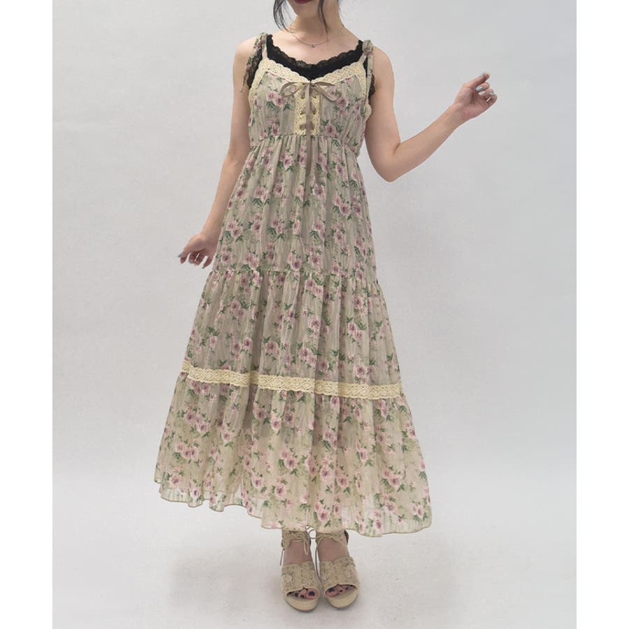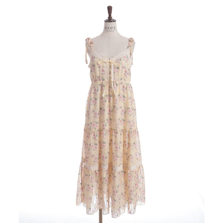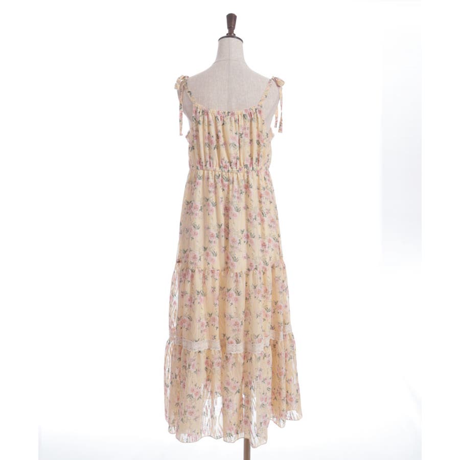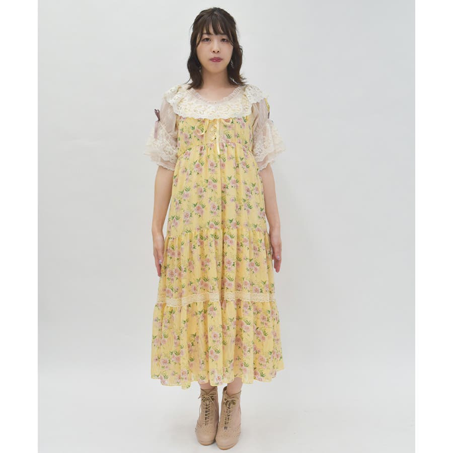 軽やかな印象を与える、フェミニンなティアードワンピース。明るい花柄、繊細なレースやリボンディテールが散りばめられたシーズンムードたっぷりの一枚です。