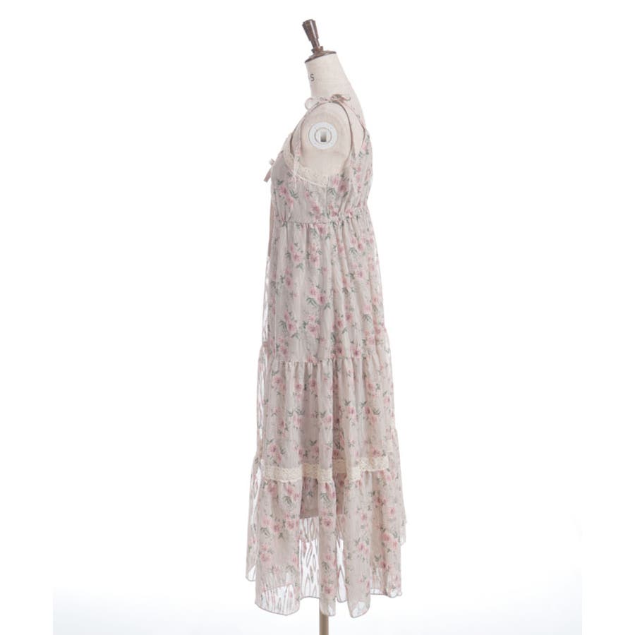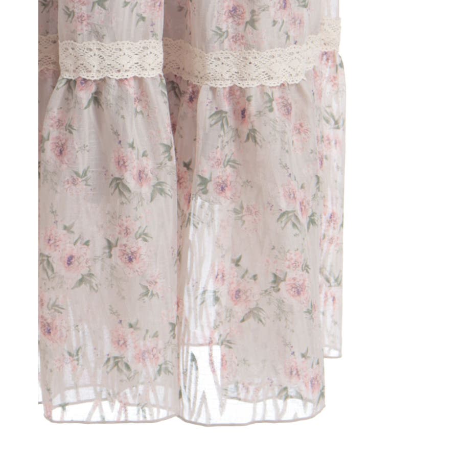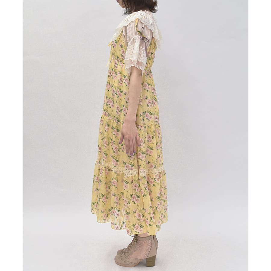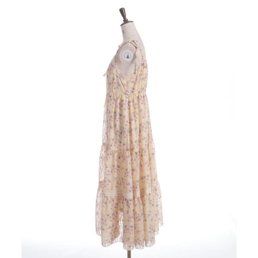 軽やかな印象を与える、フェミニンなティアードワンピース。明るい花柄、繊細なレースやリボンディテールが散りばめられたシーズンムードたっぷりの一枚です。