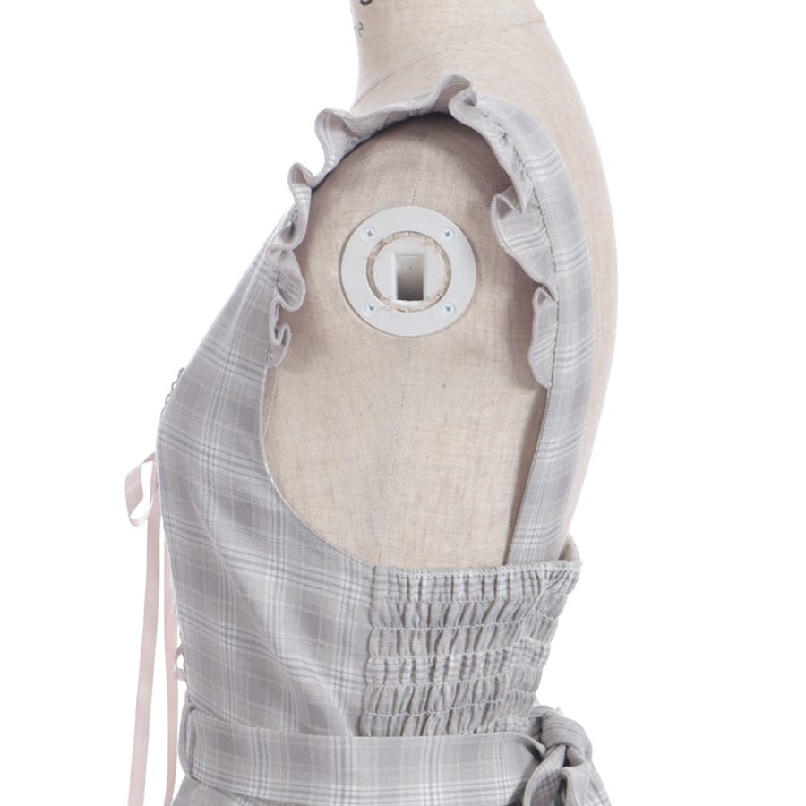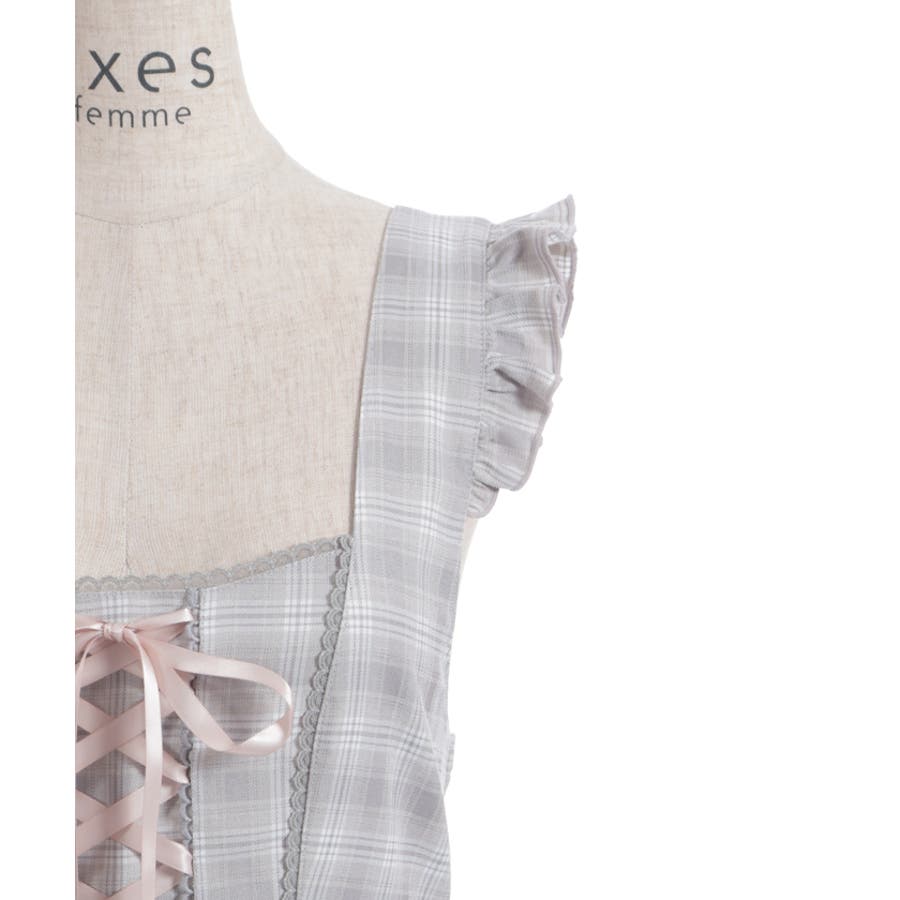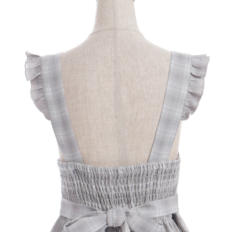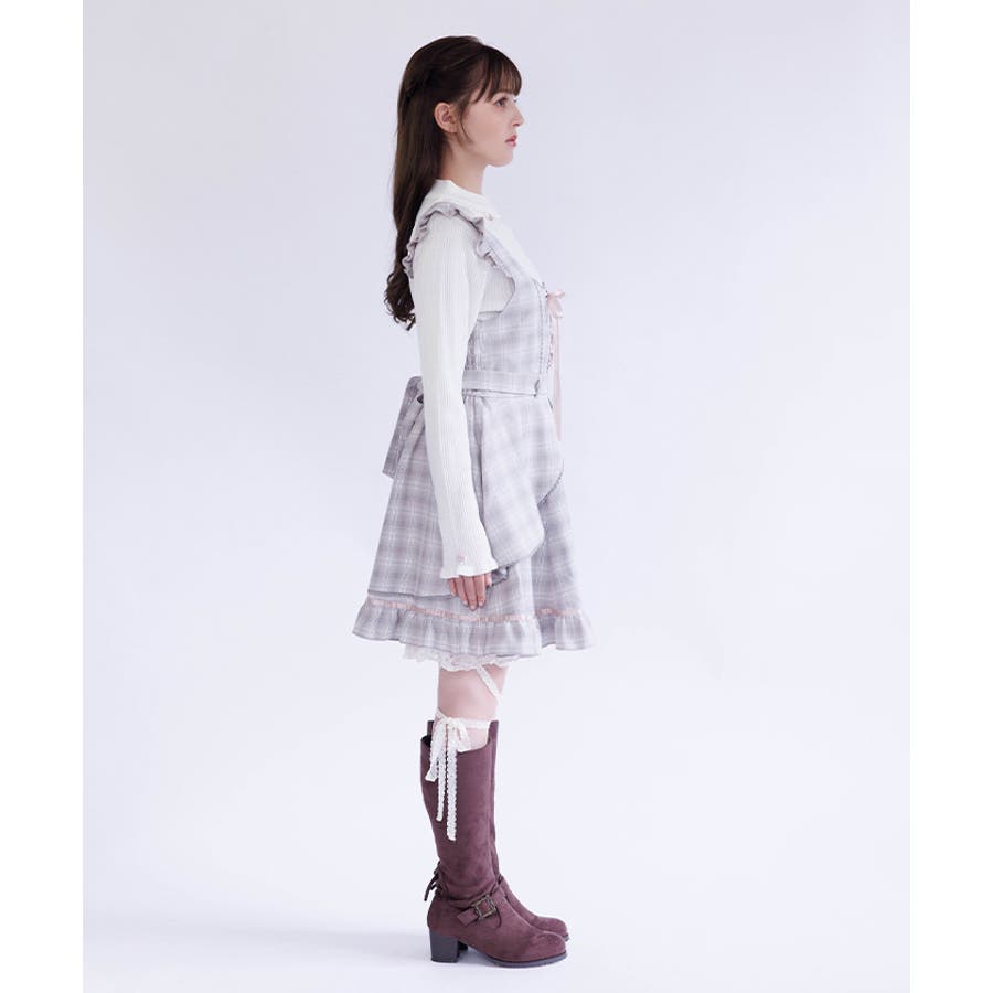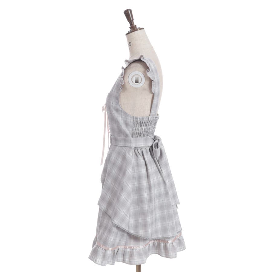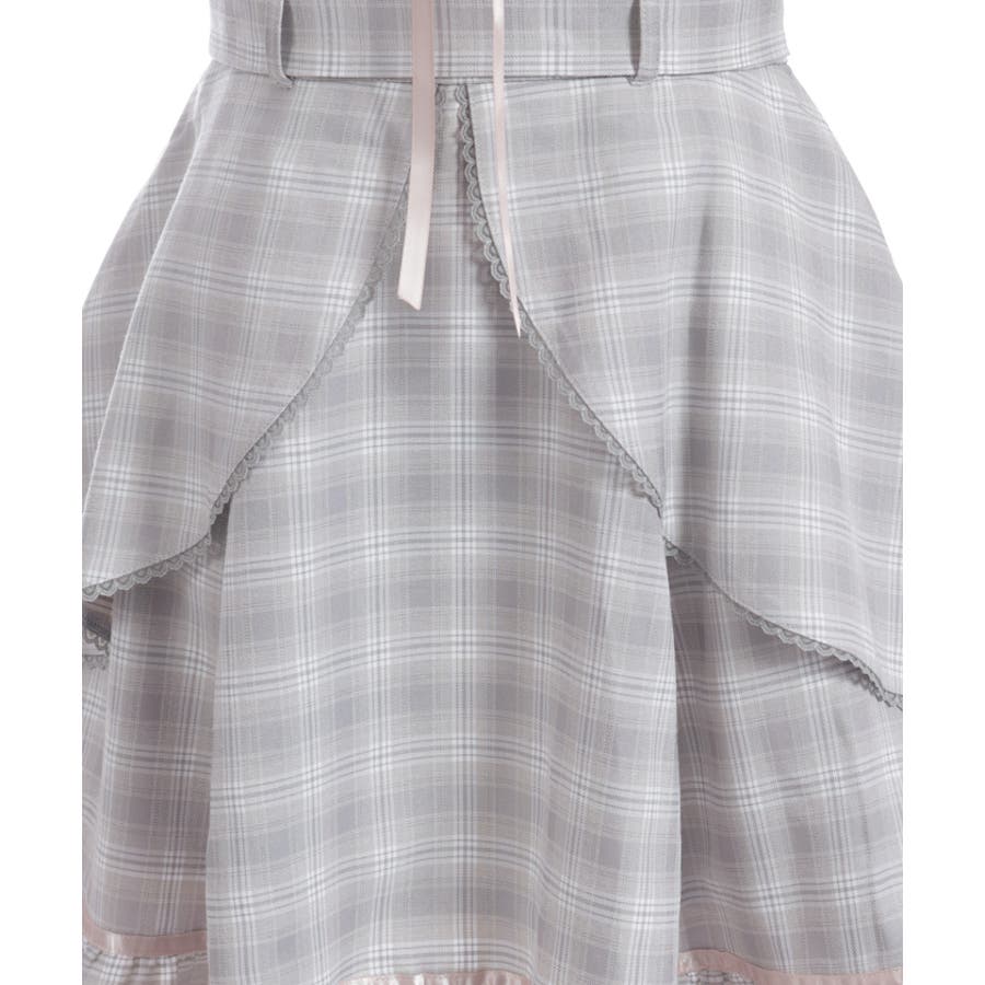 裾のフリルやチェック柄の切り替えが立体感を演出し、レトロガーリーな印象に仕上げています。